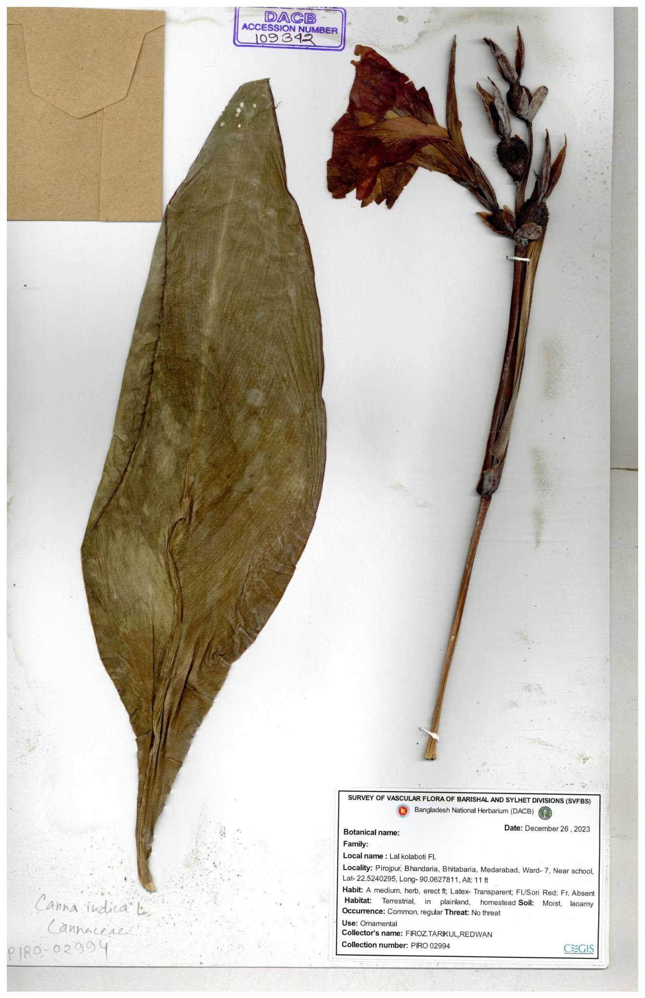 | 109342 | Cannaceae | Canna indica | 30-11--0001 |