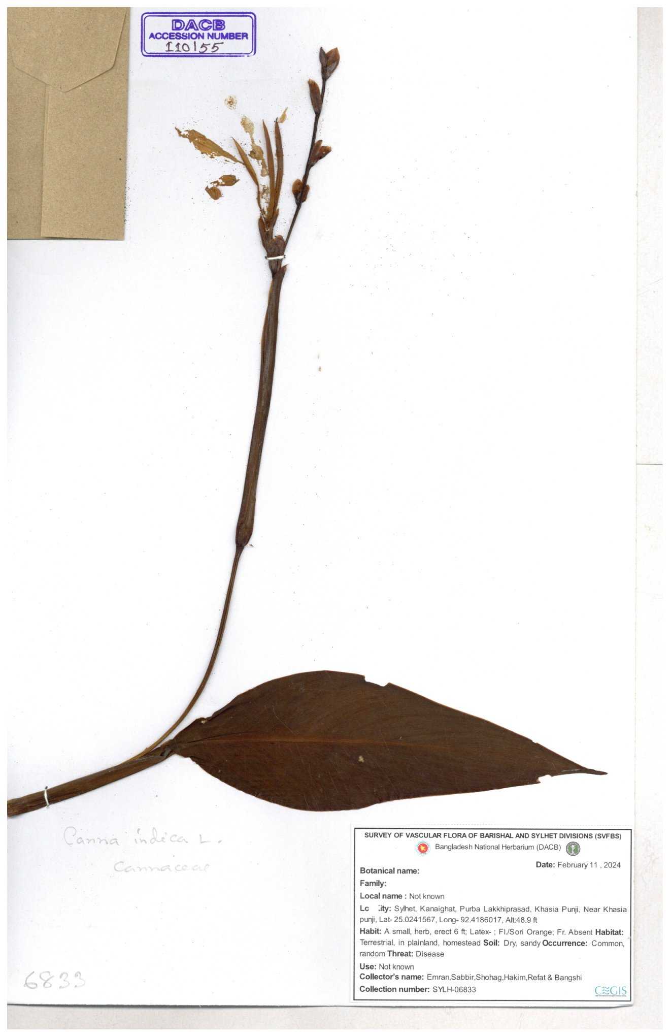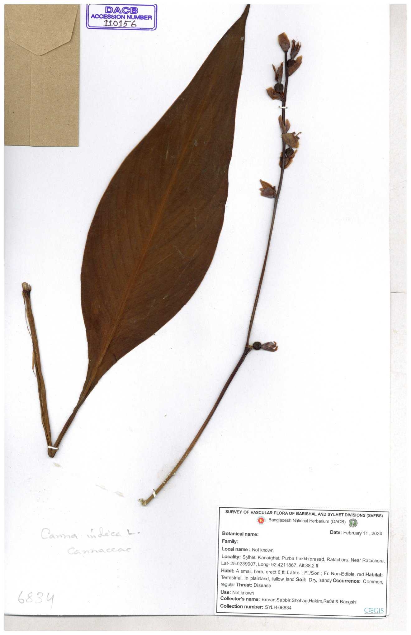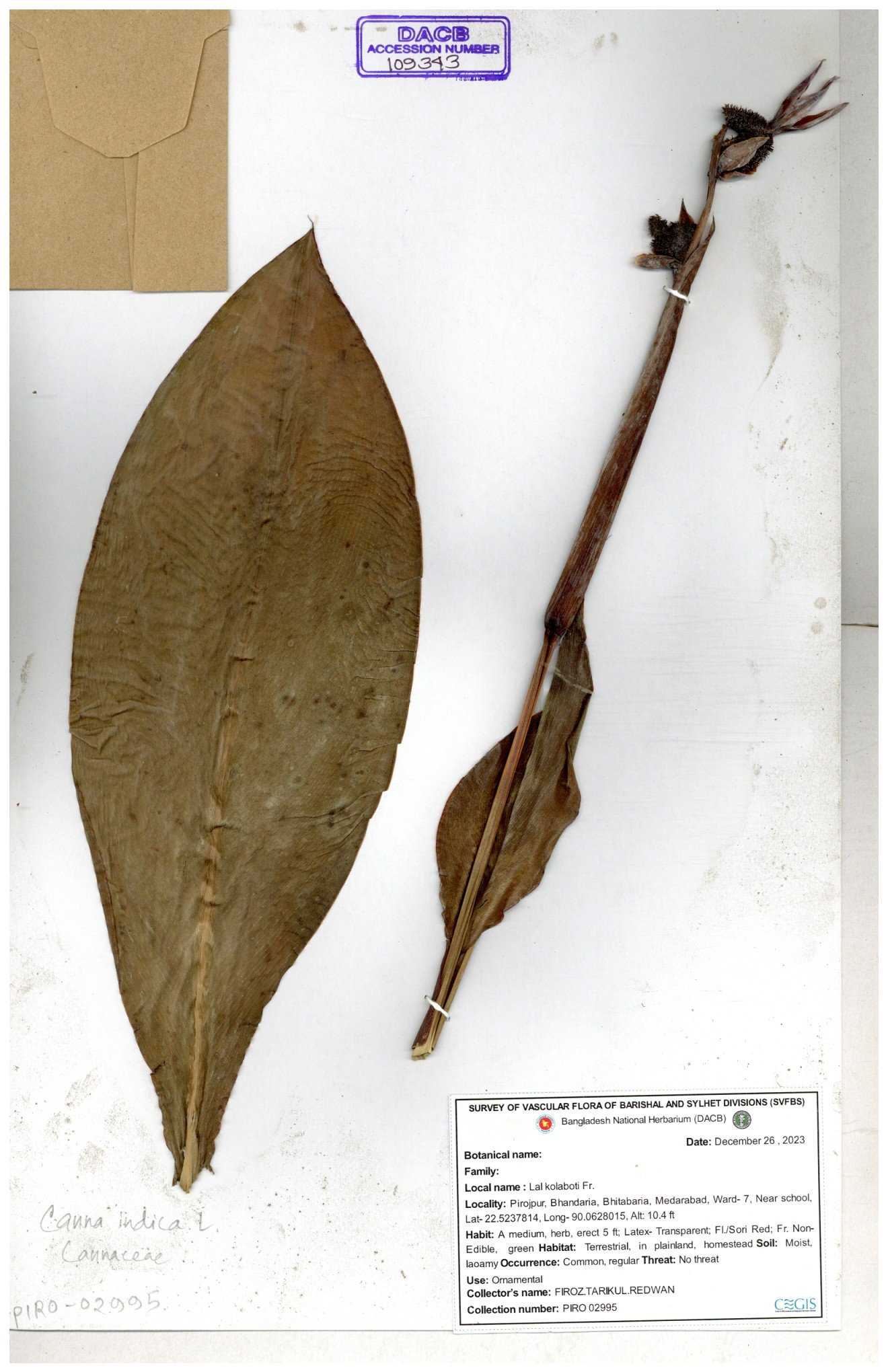 | 109343 | Cannaceae | Canna indica | 30-11--0001 |