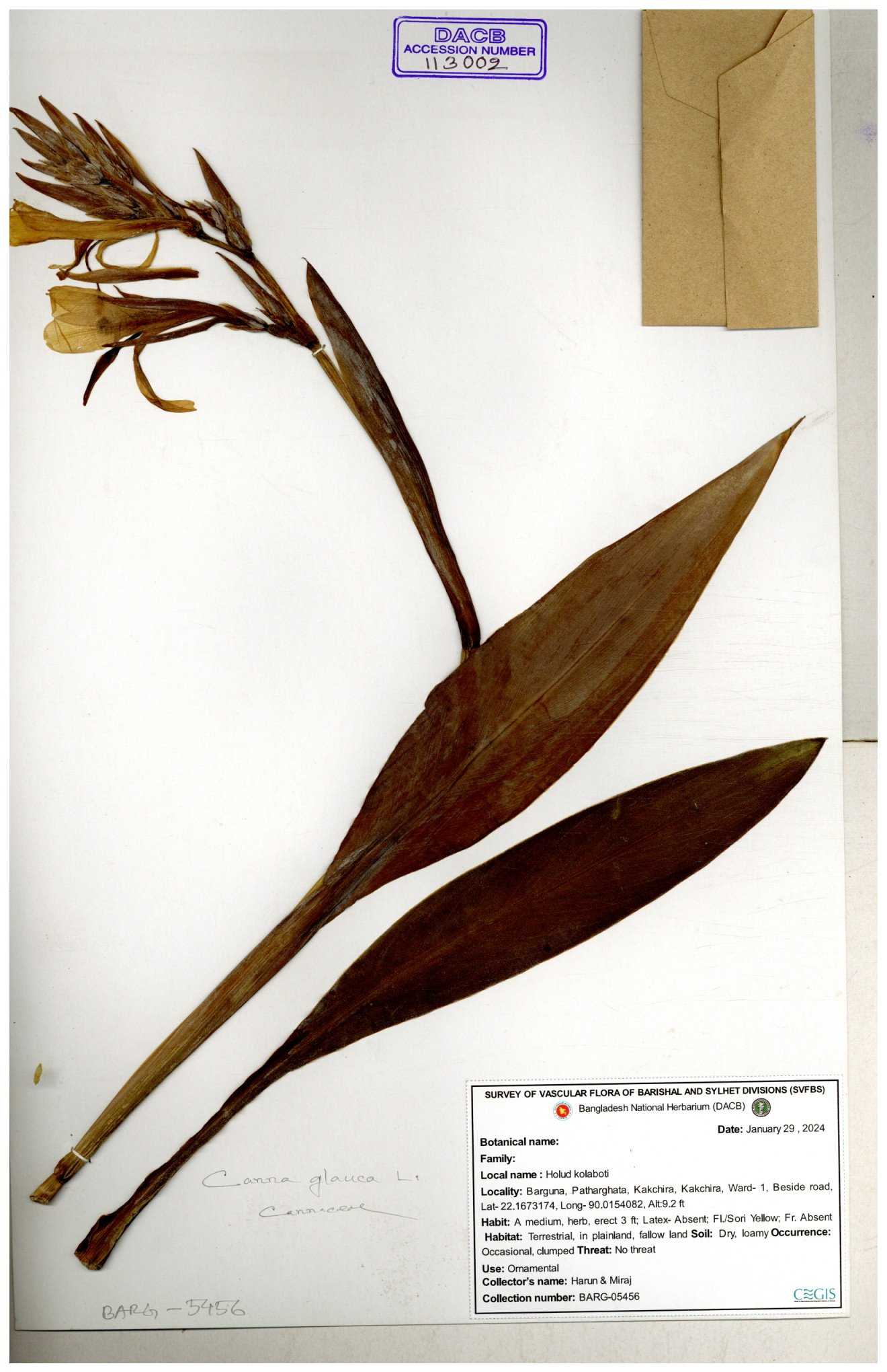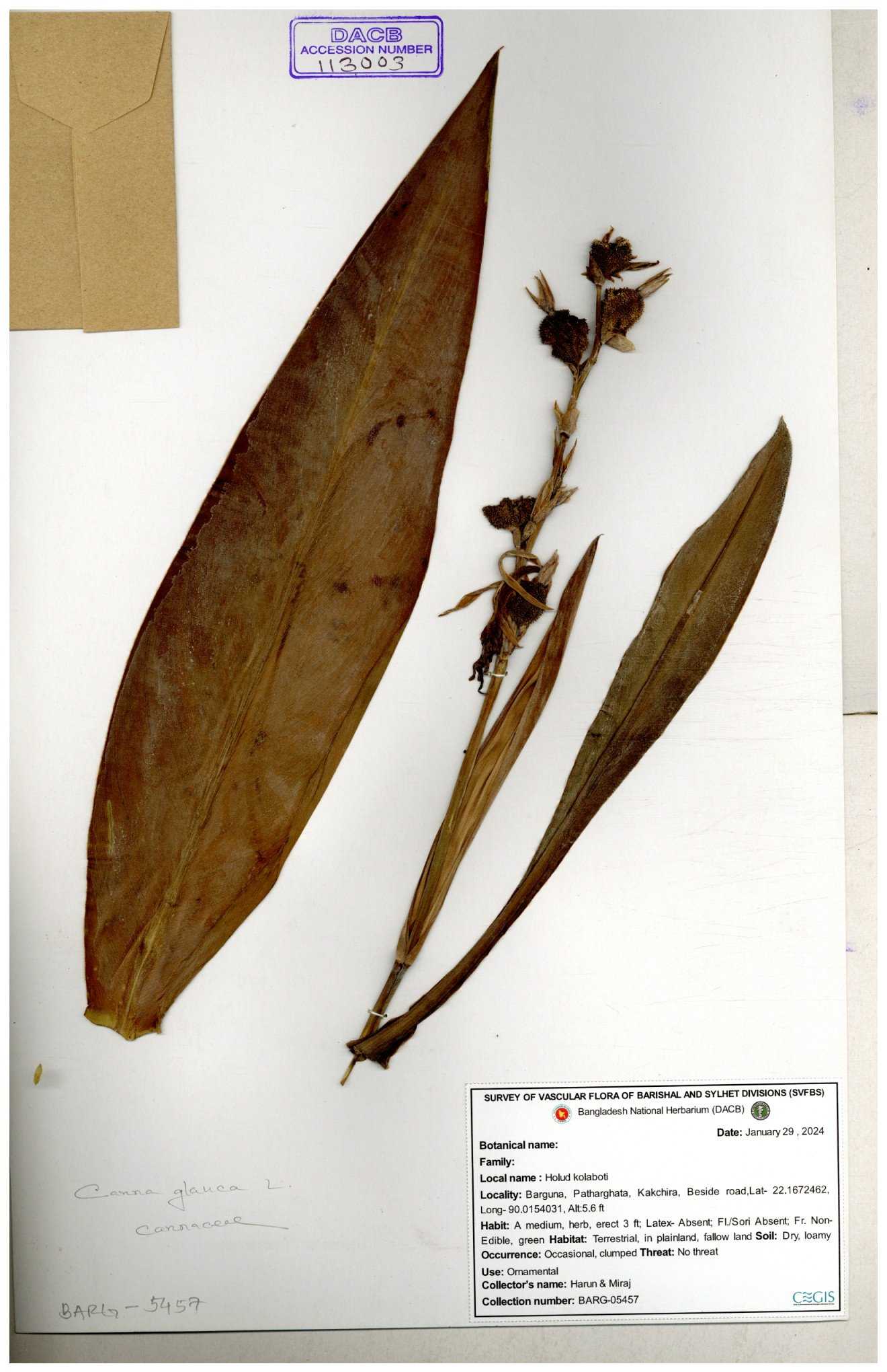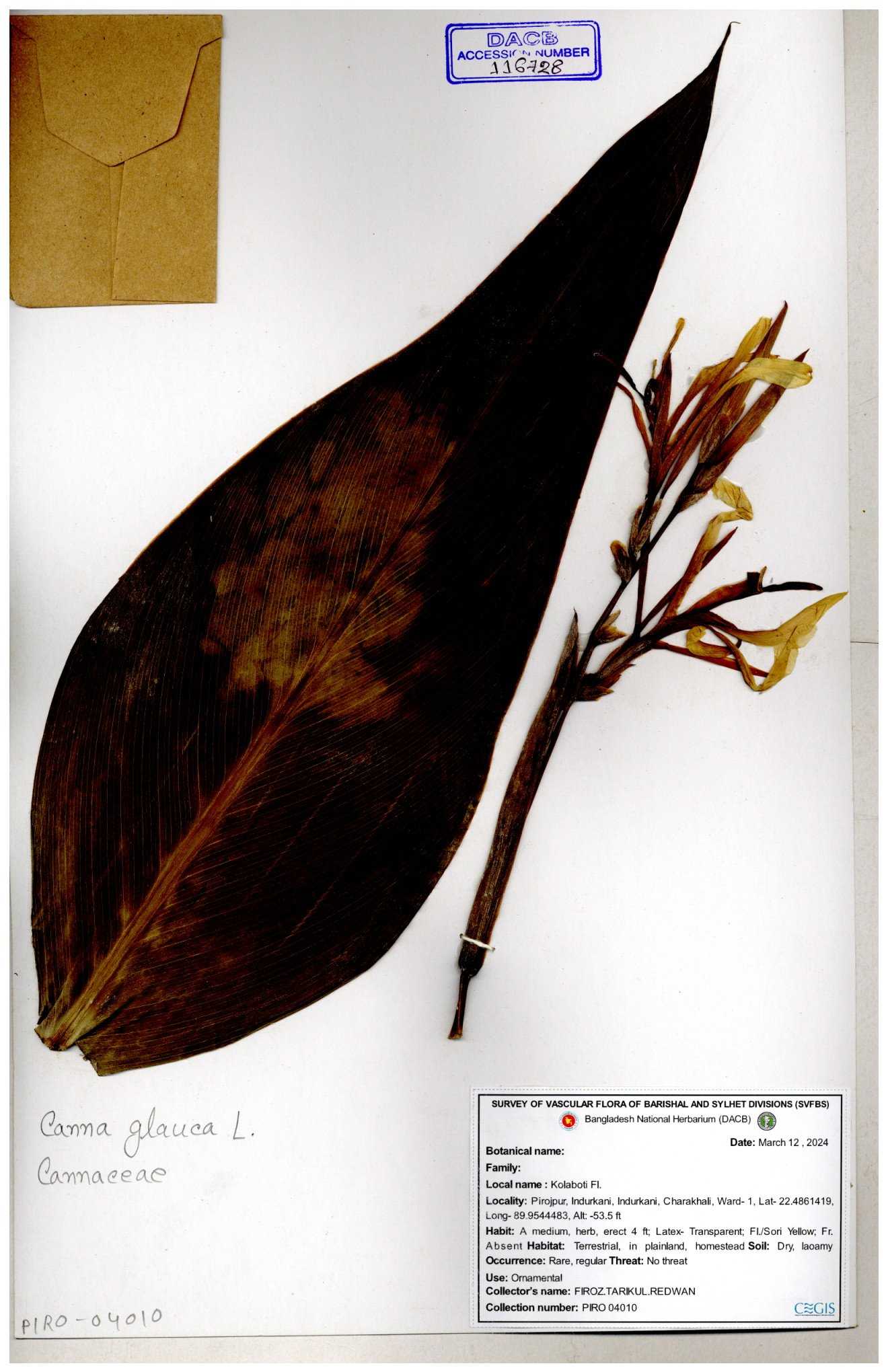 | 116728 | Cannaceae | Canna glauca | 30-11--0001 |