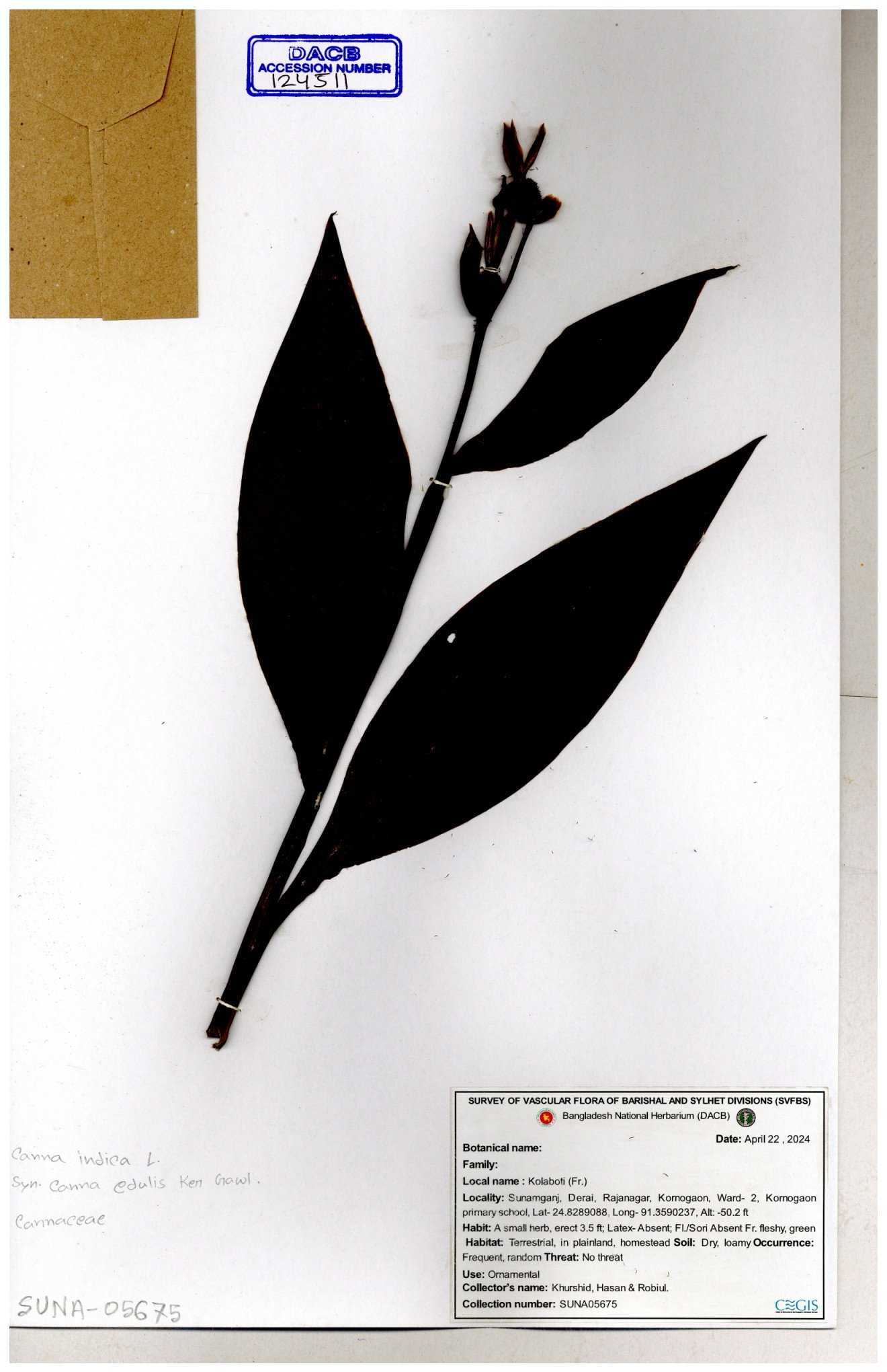 | 124511 | Cannaceae | Canna indica | 30-11--0001 |