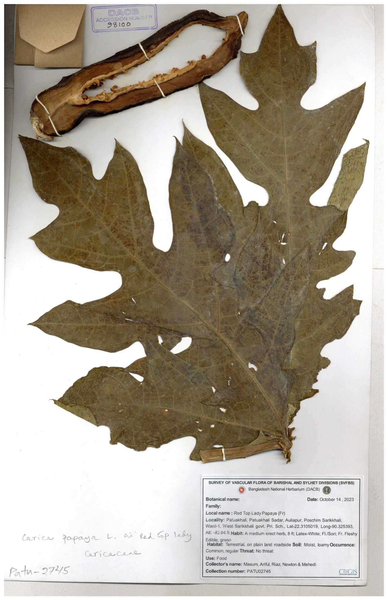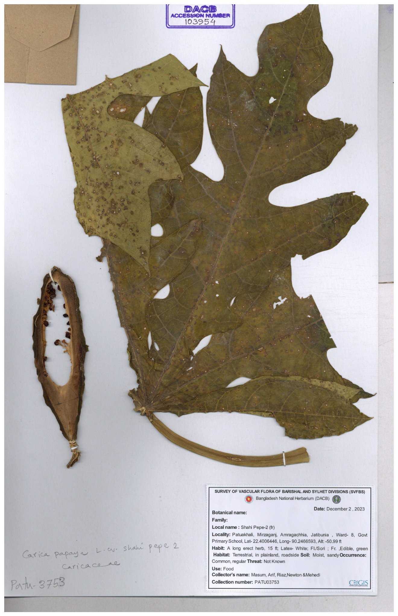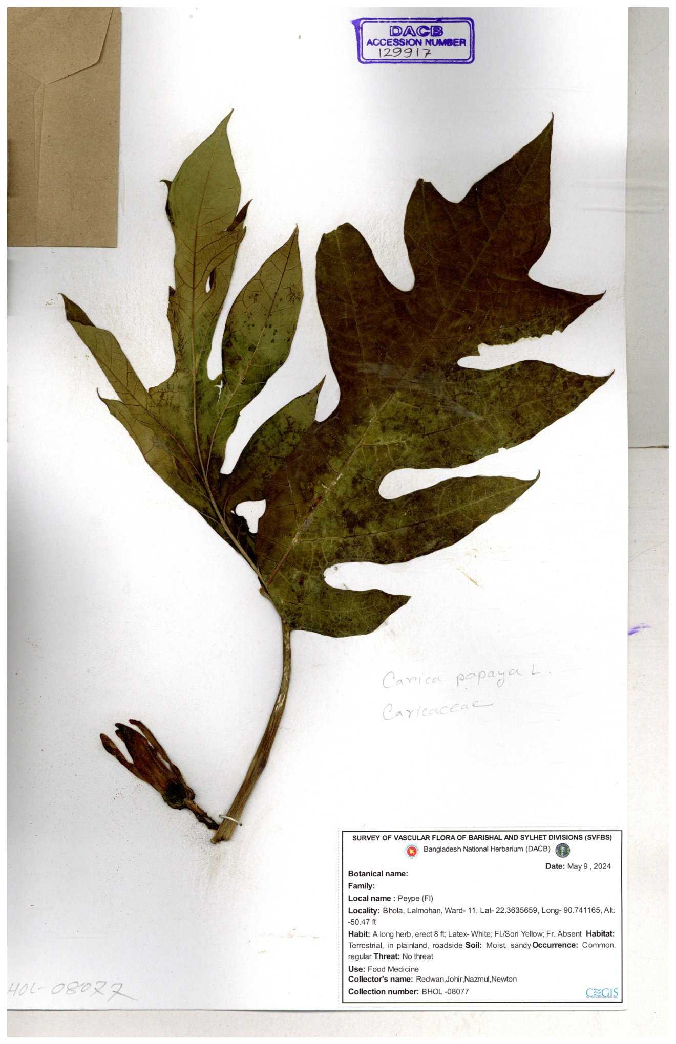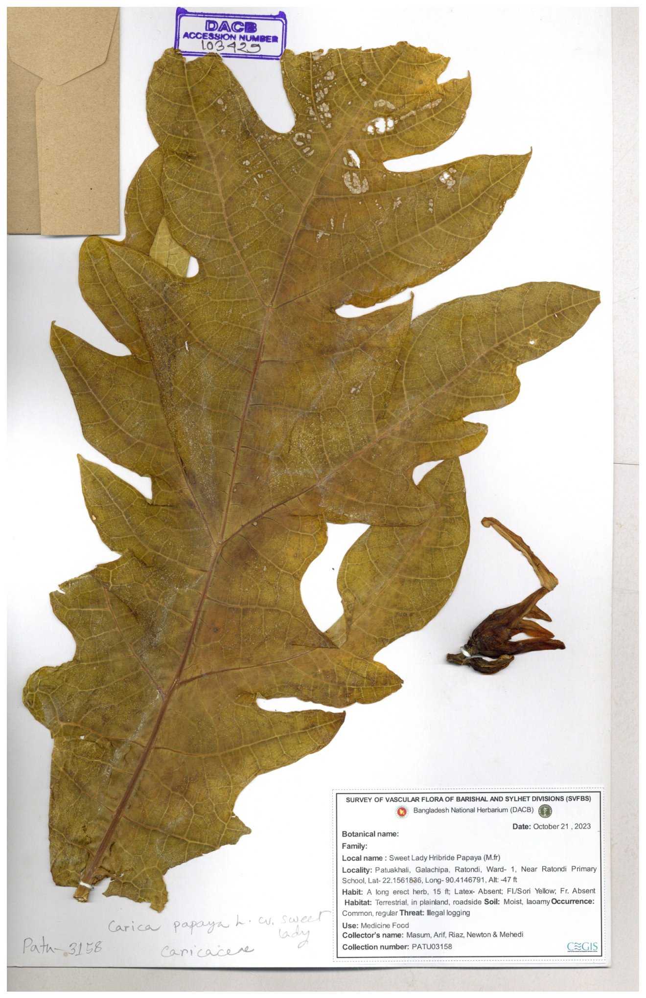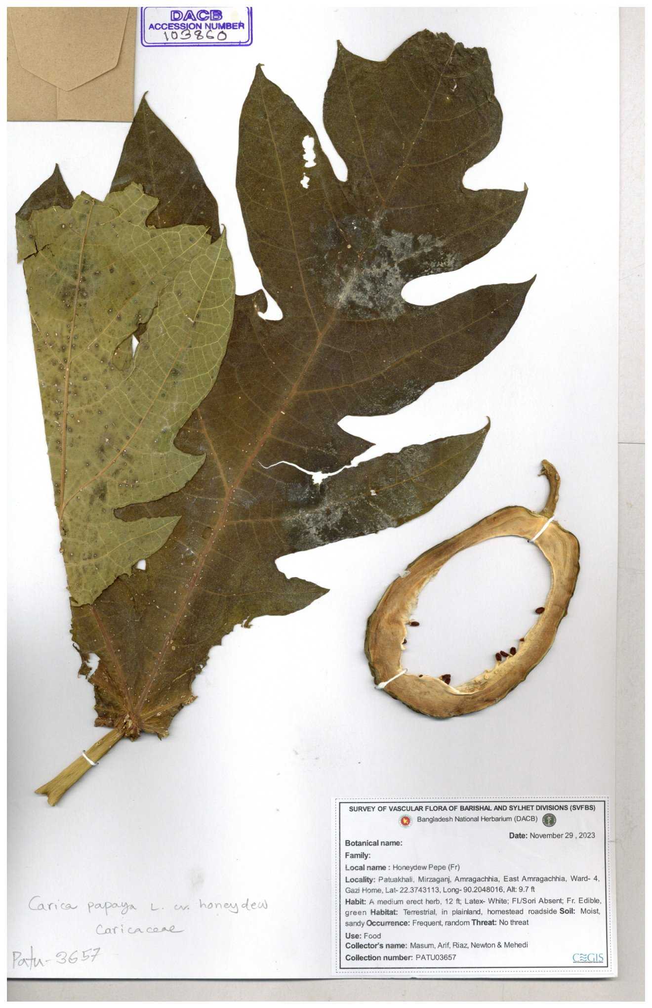 | 66758 | Caricaceae | Carica papaya L. | পেপে | Madhobi Karmakar | 01 01-12-2022 |