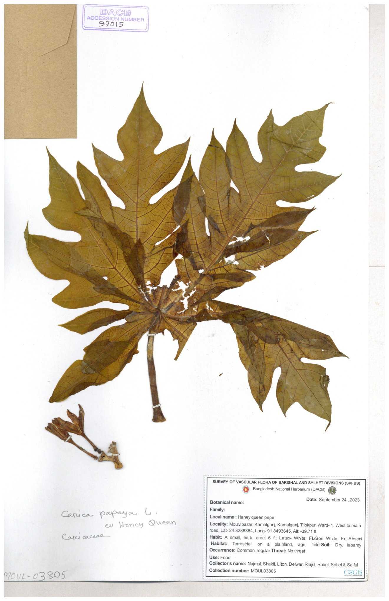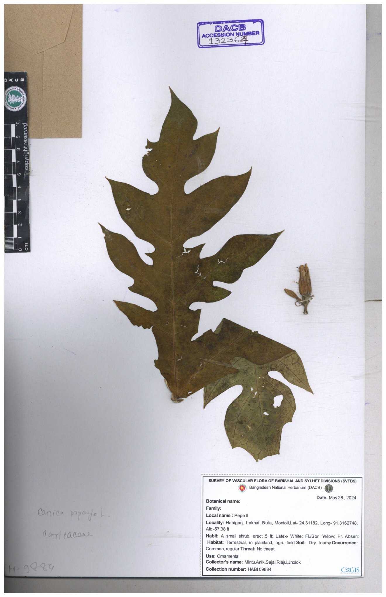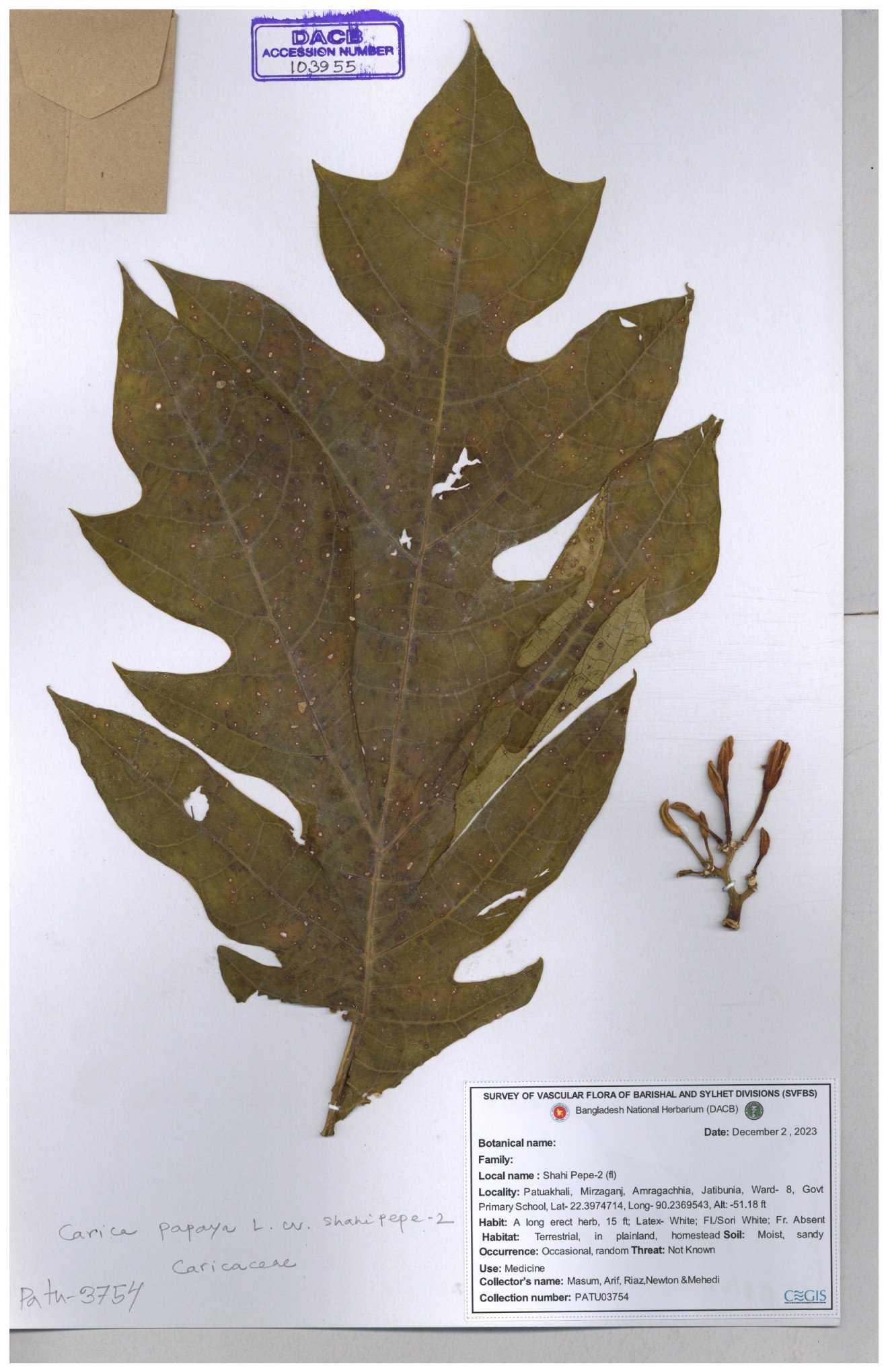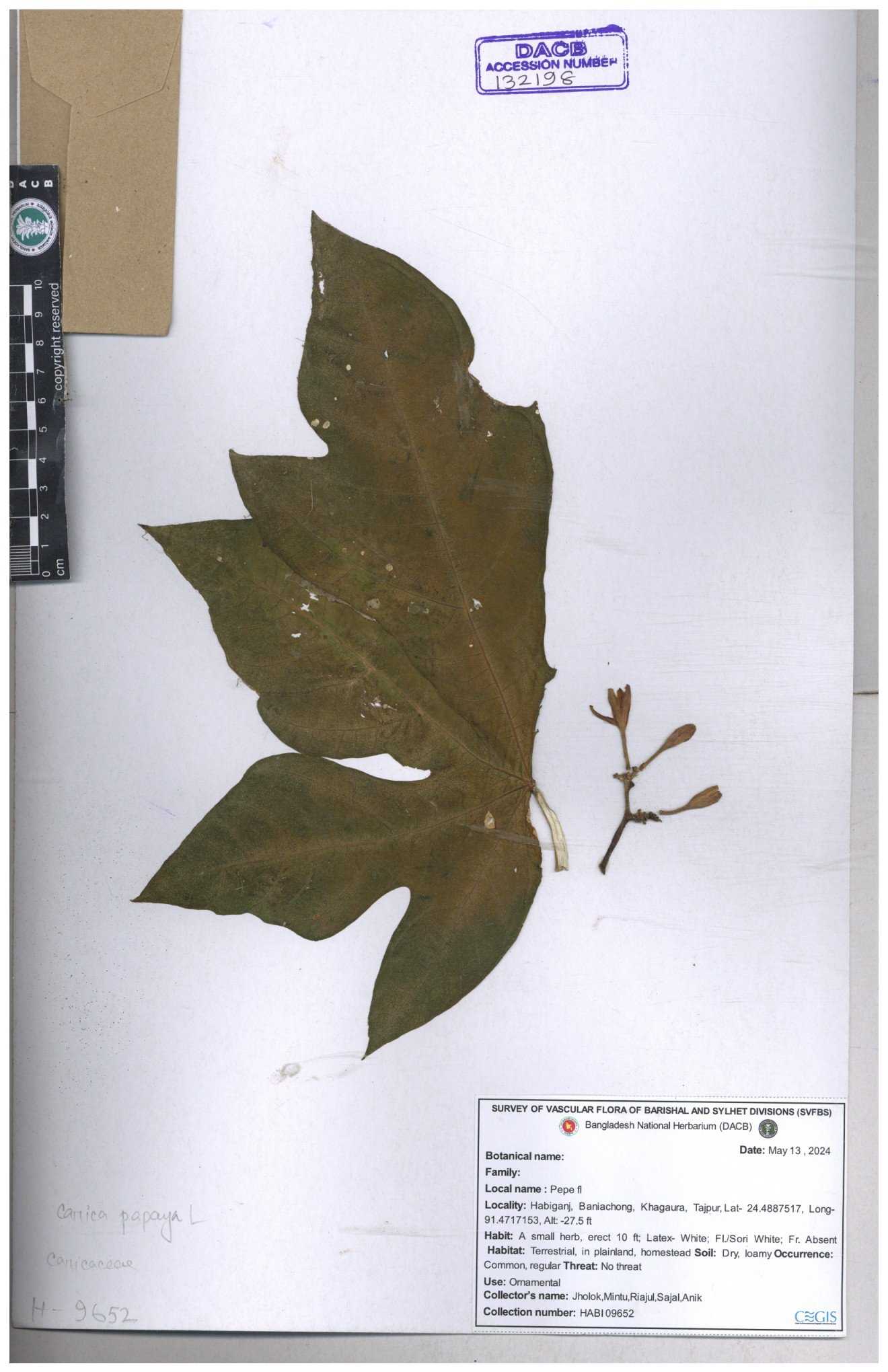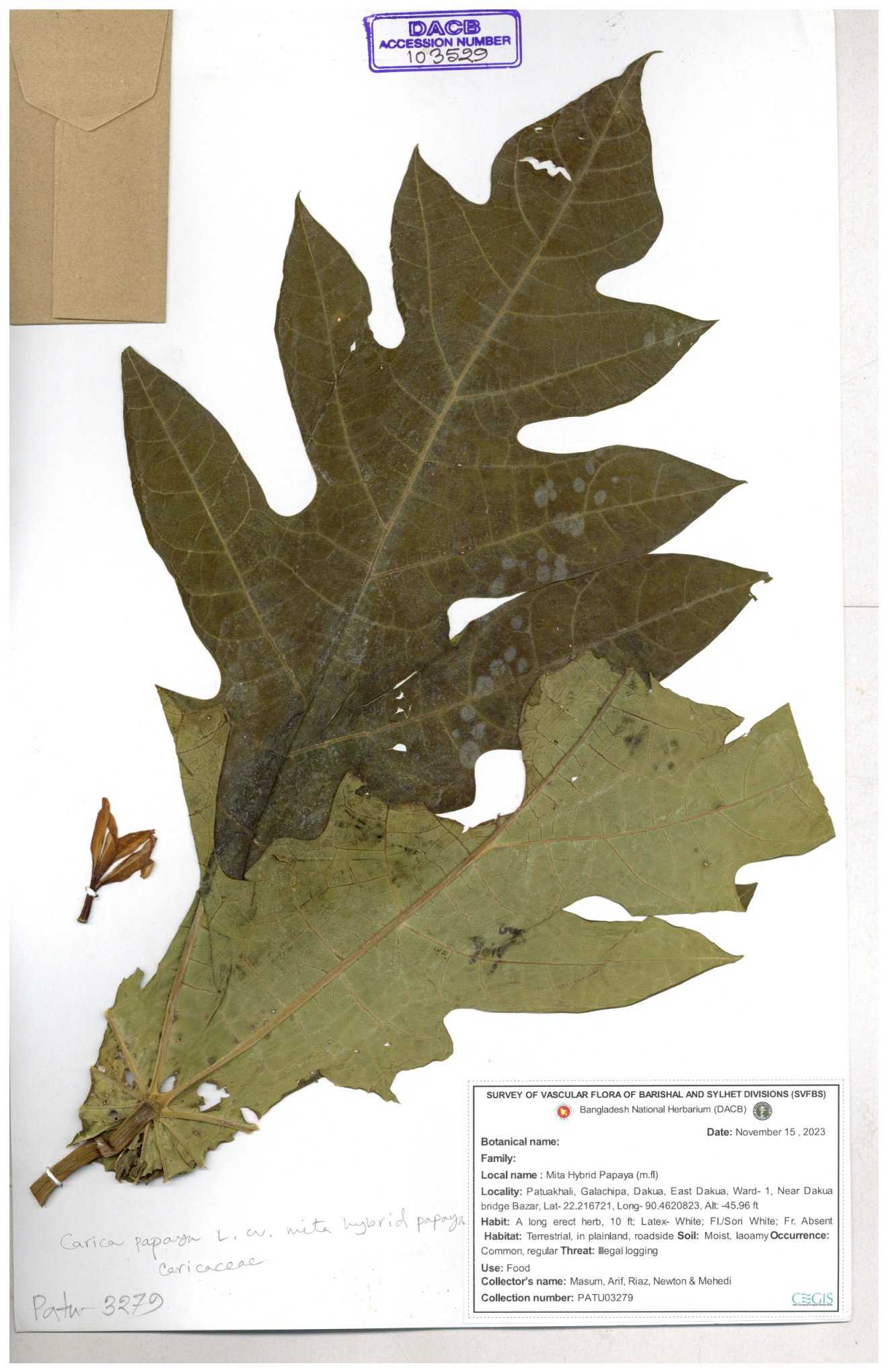 | 66758 | Caricaceae | Carica papaya L. | পেপে | Madhobi Karmakar | 01 01-12-2022 |