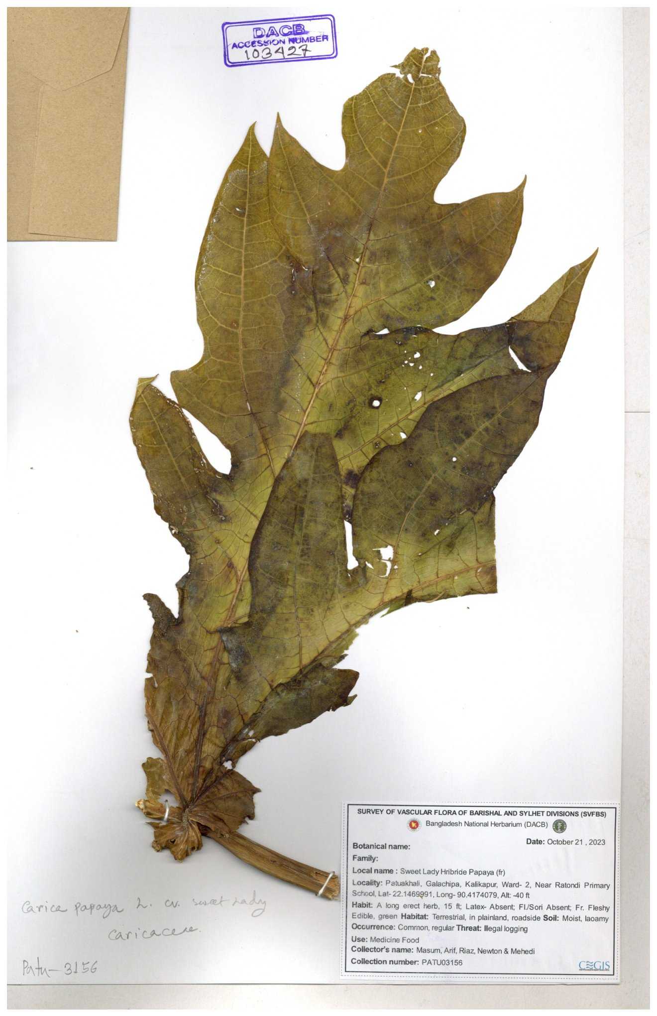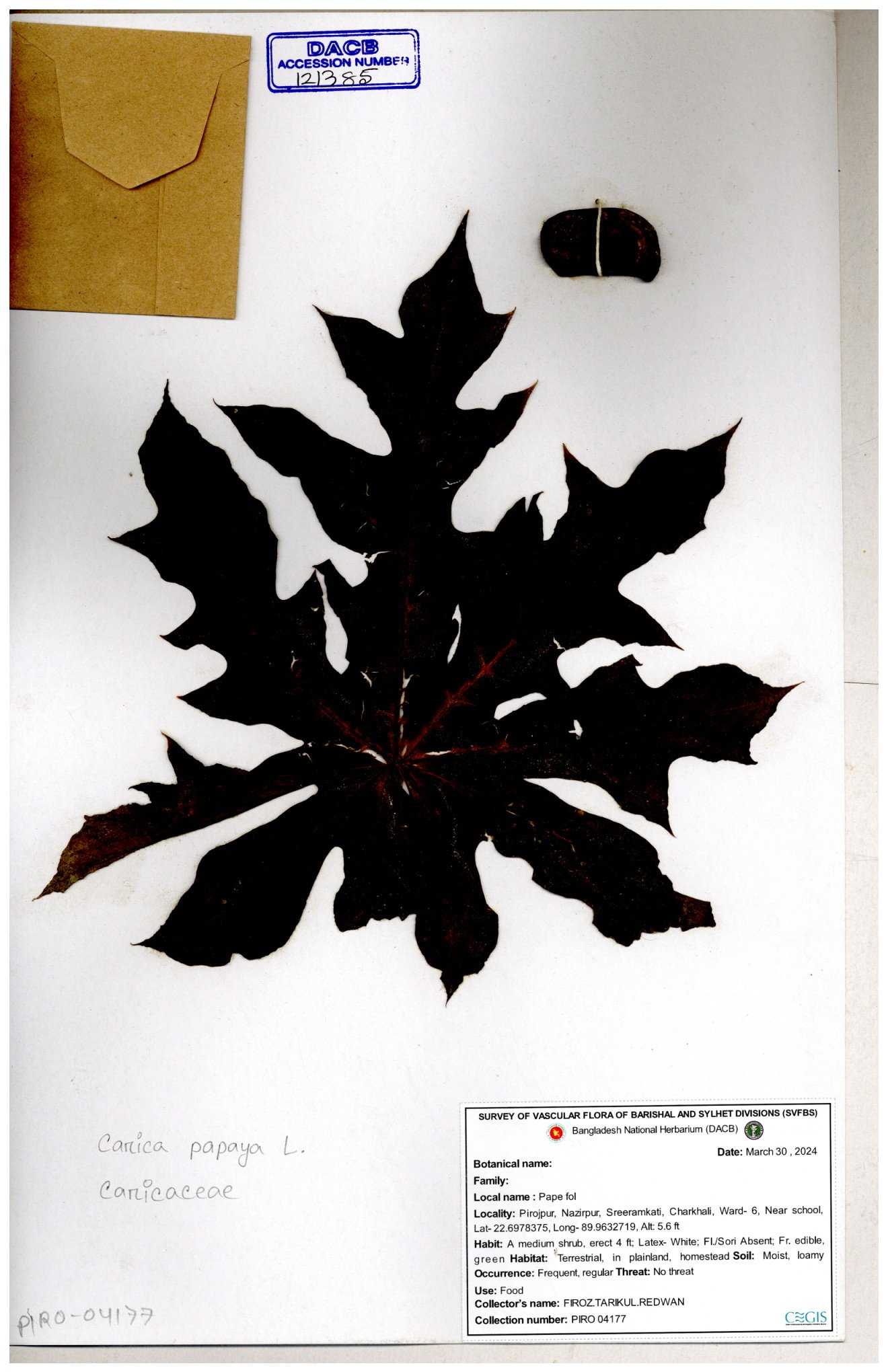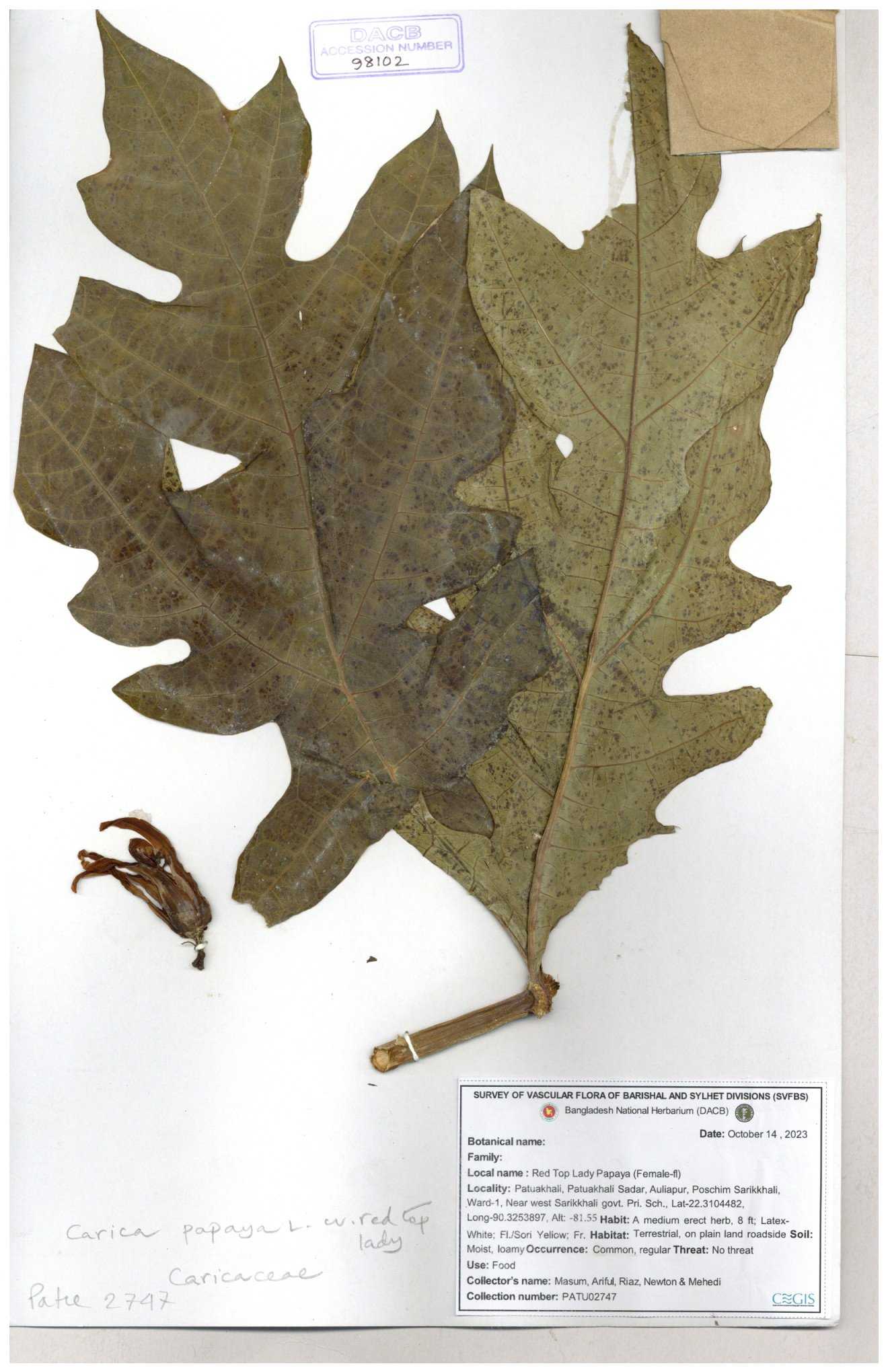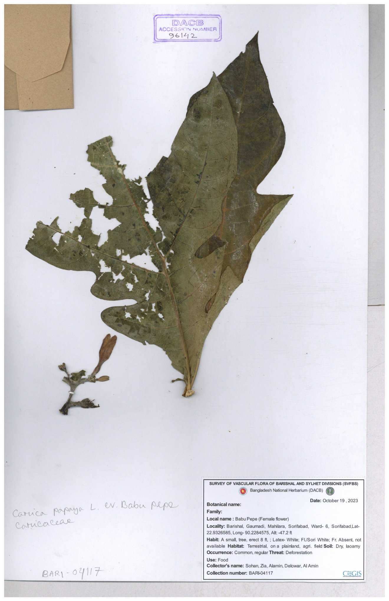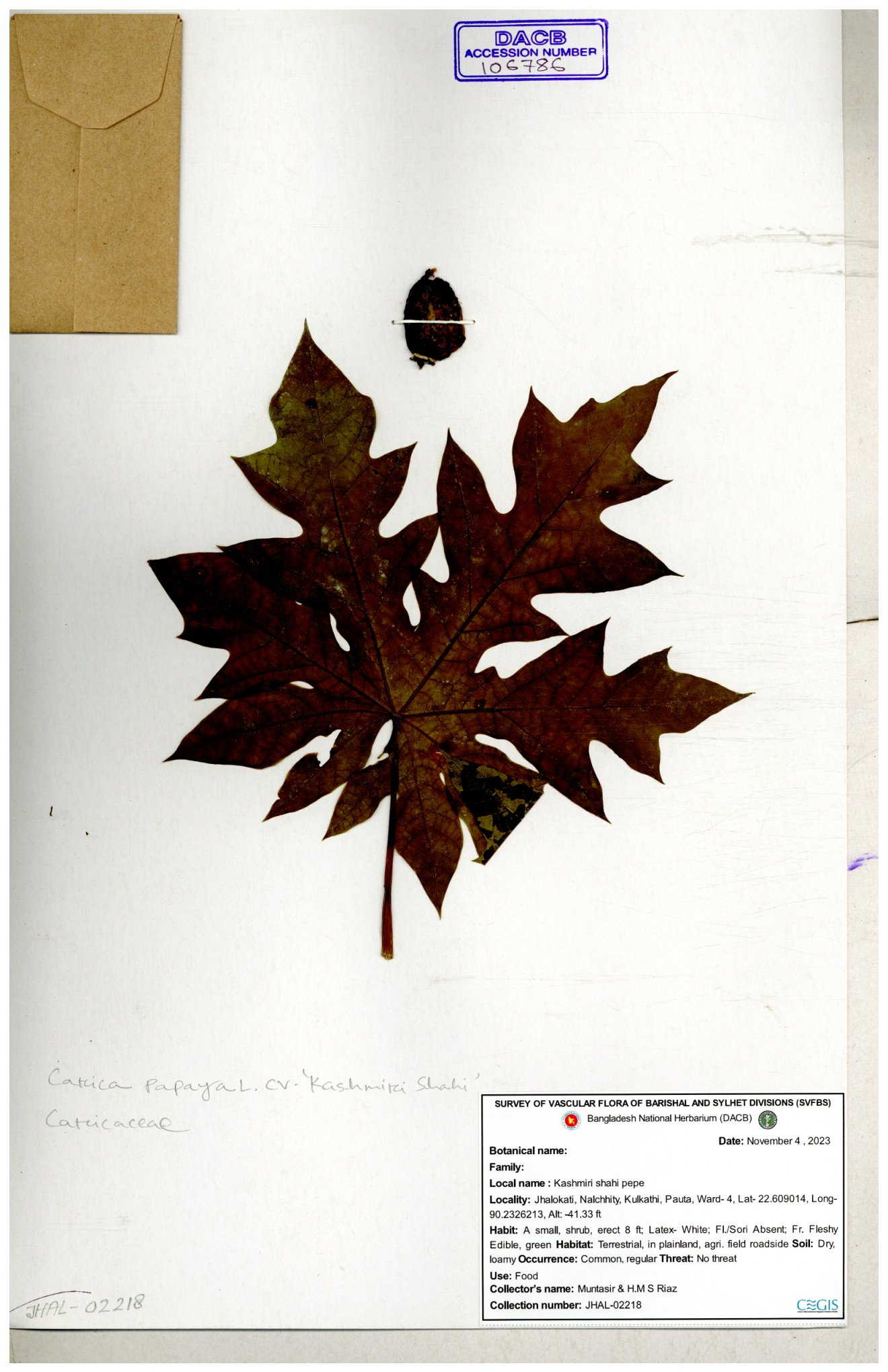 | 66758 | Caricaceae | Carica papaya L. | পেপে | Madhobi Karmakar | 01 01-12-2022 |