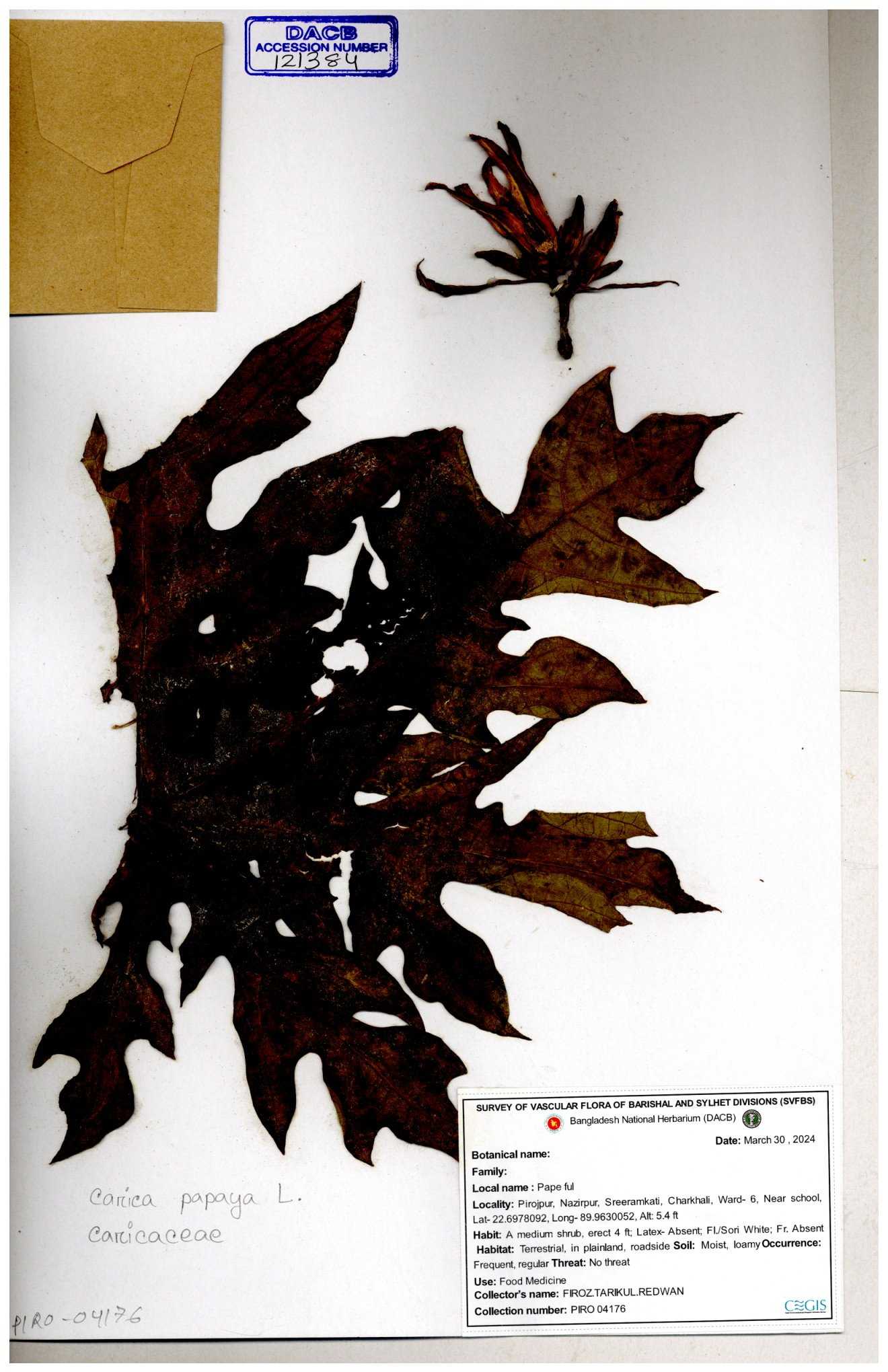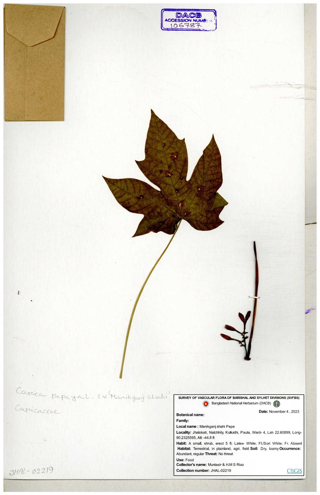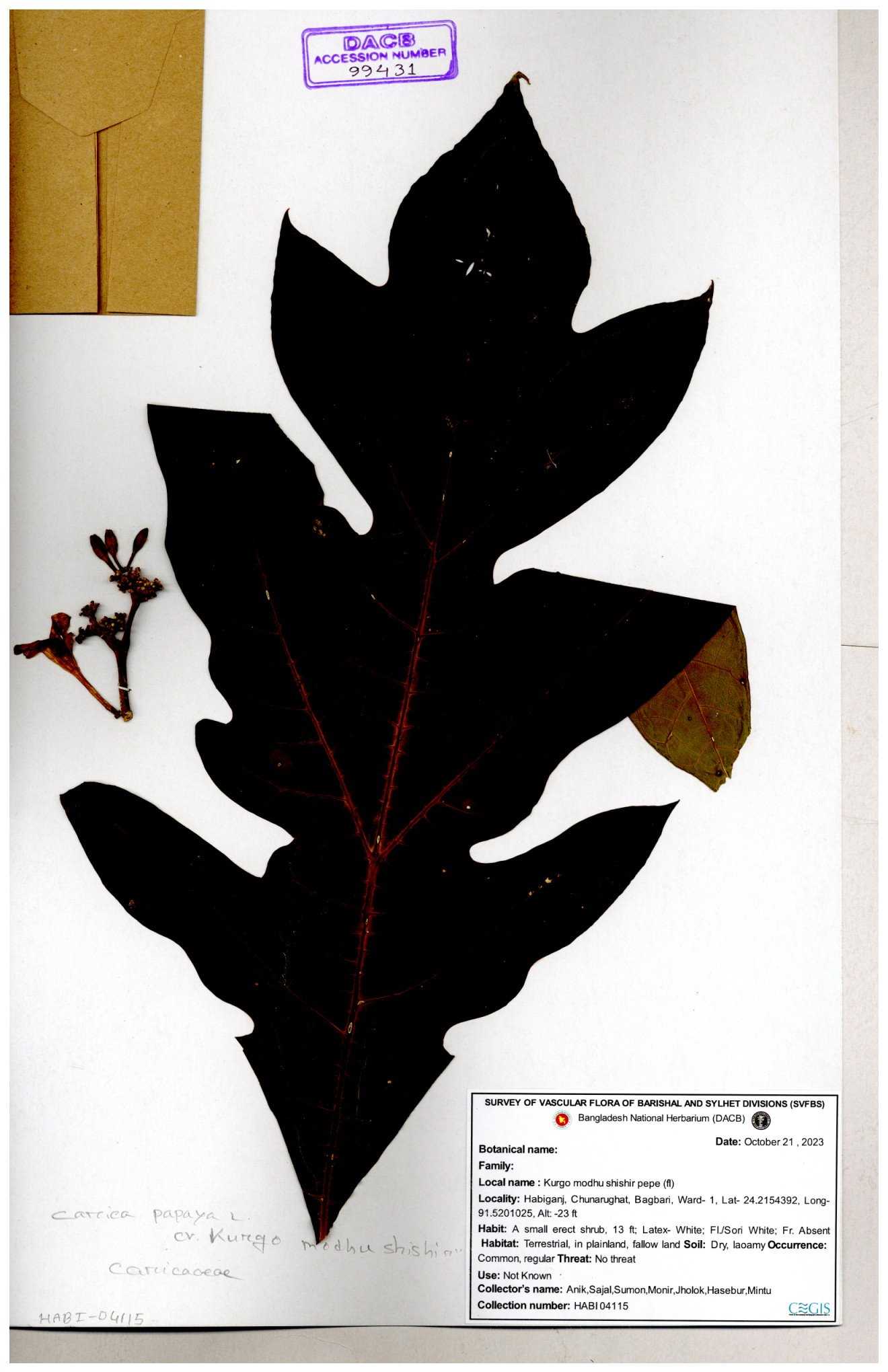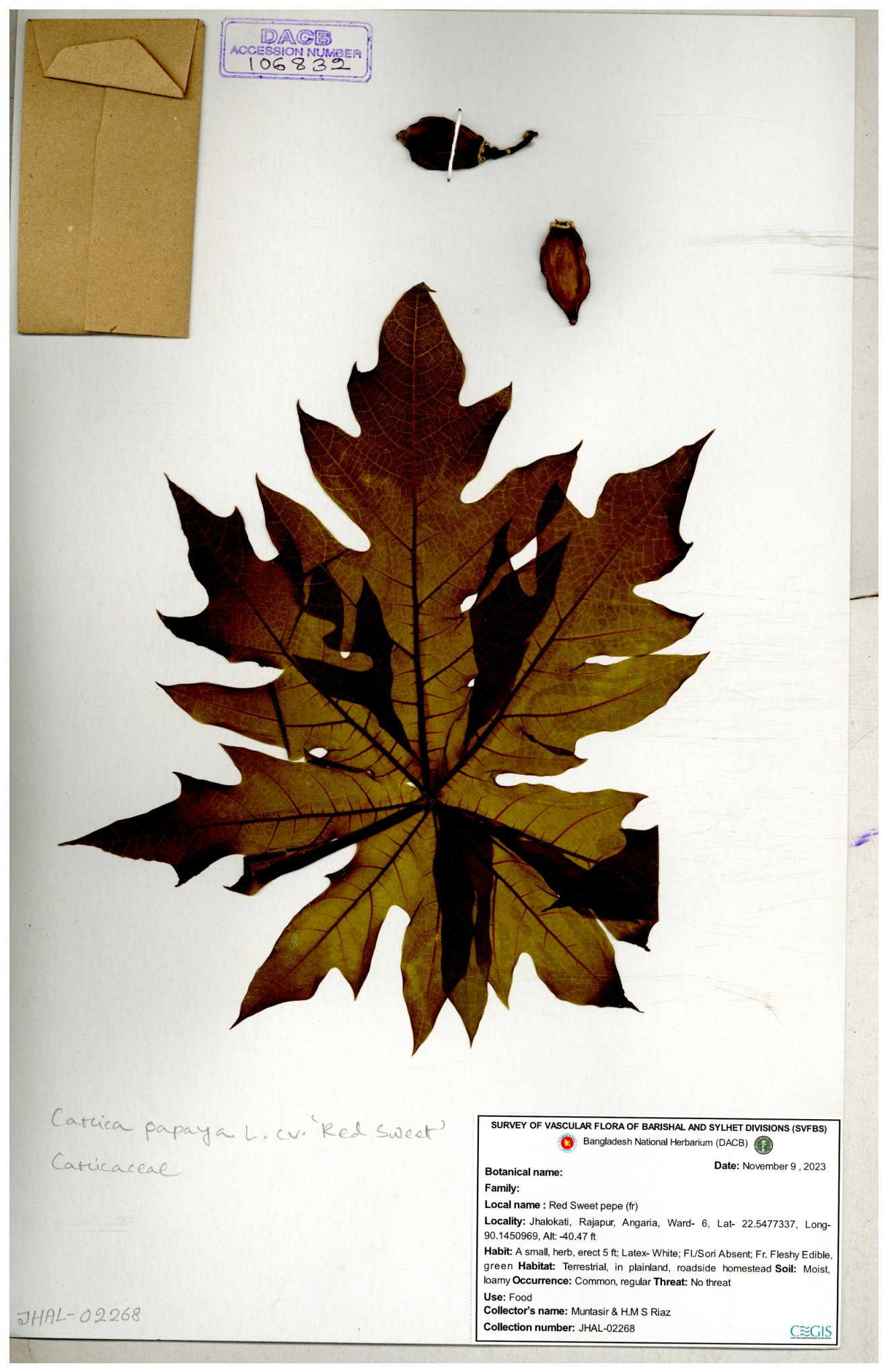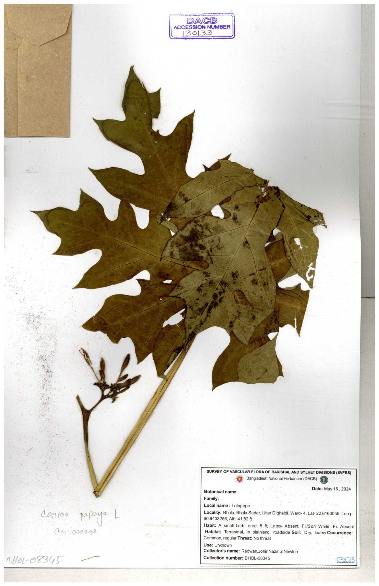 | 66758 | Caricaceae | Carica papaya L. | পেপে | Madhobi Karmakar | 01 01-12-2022 |