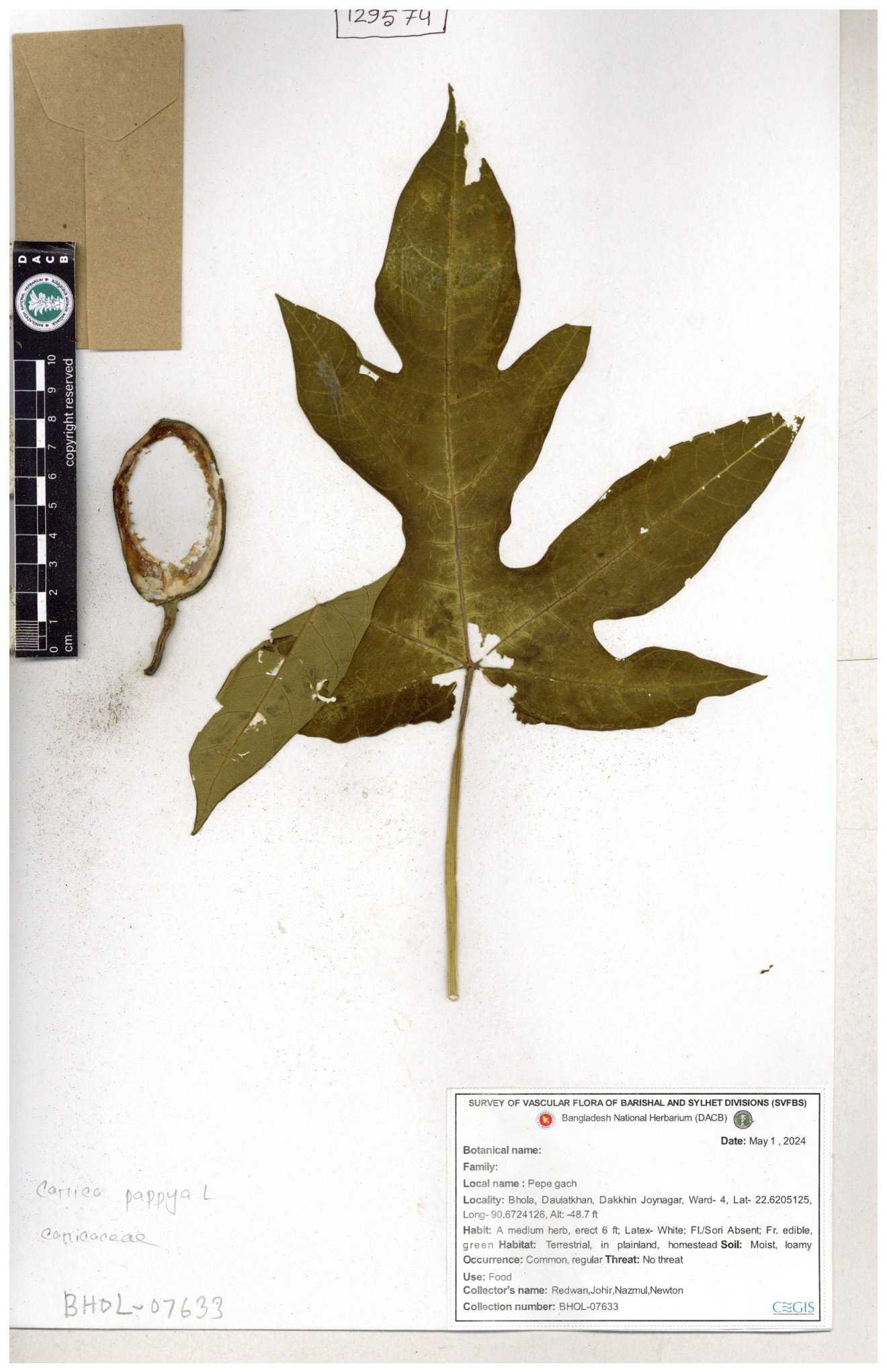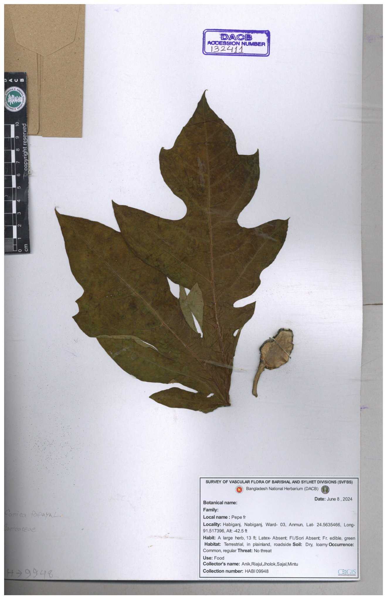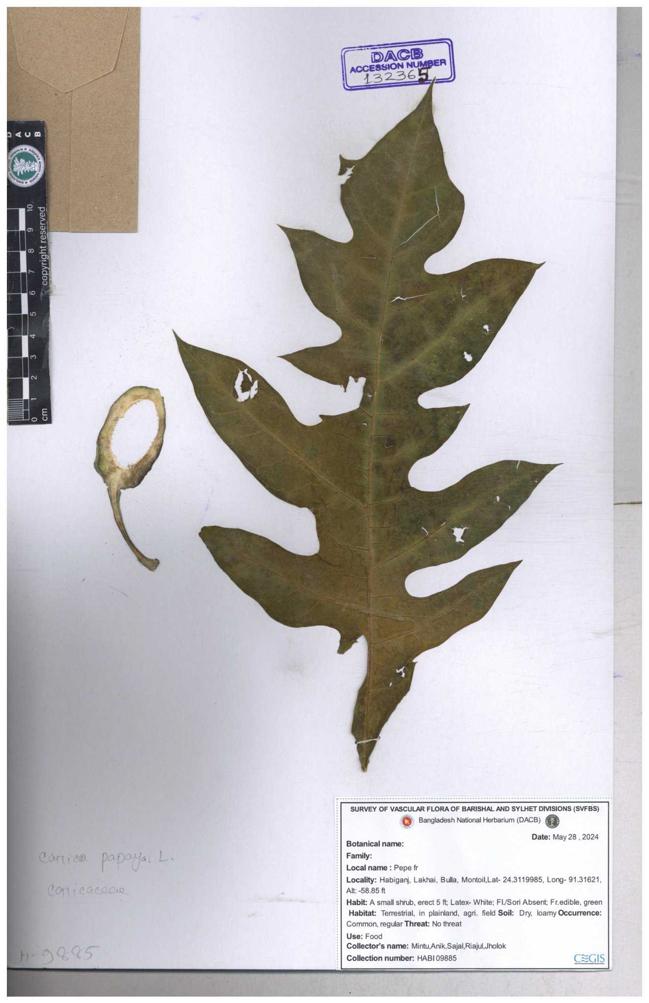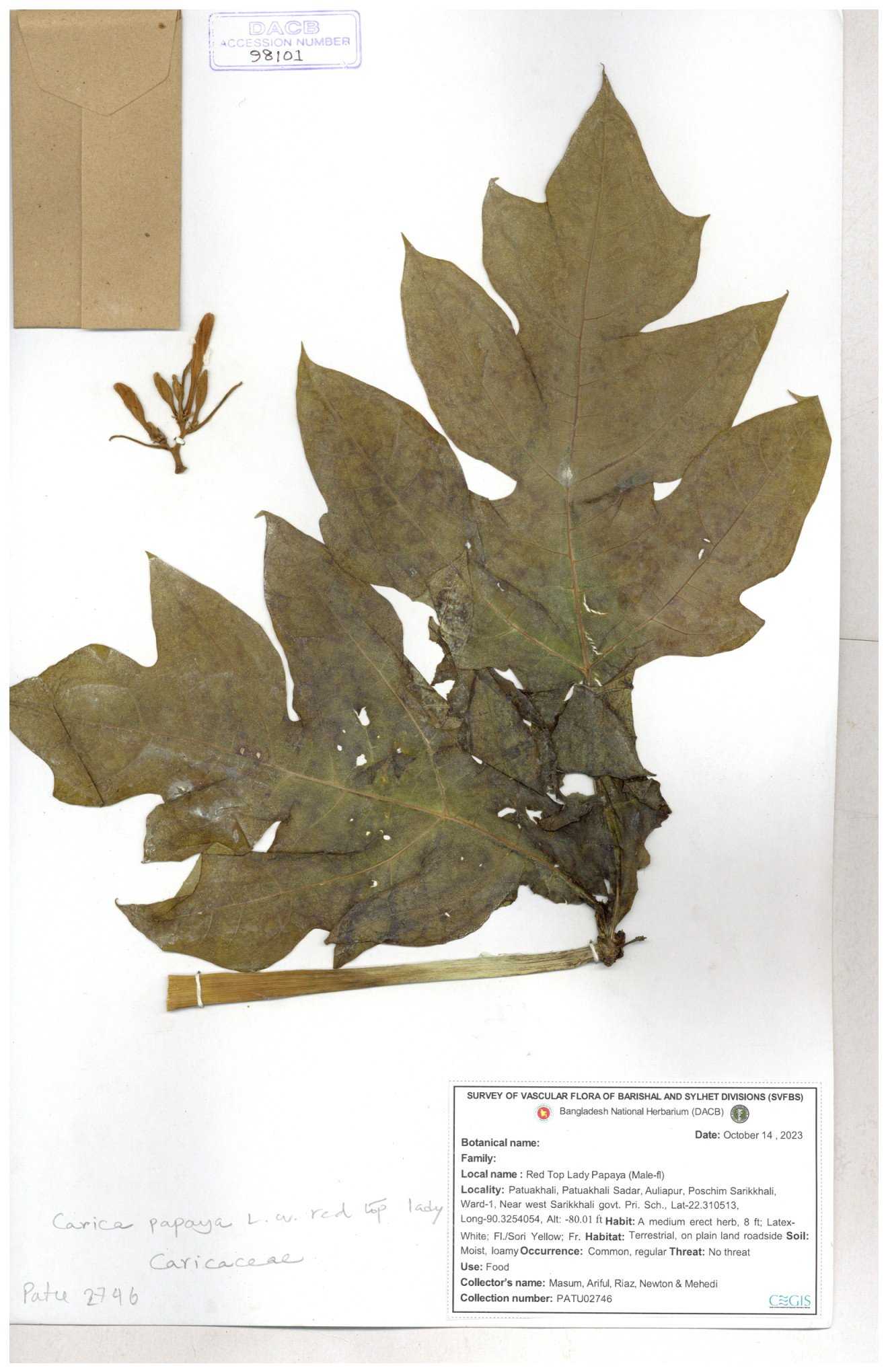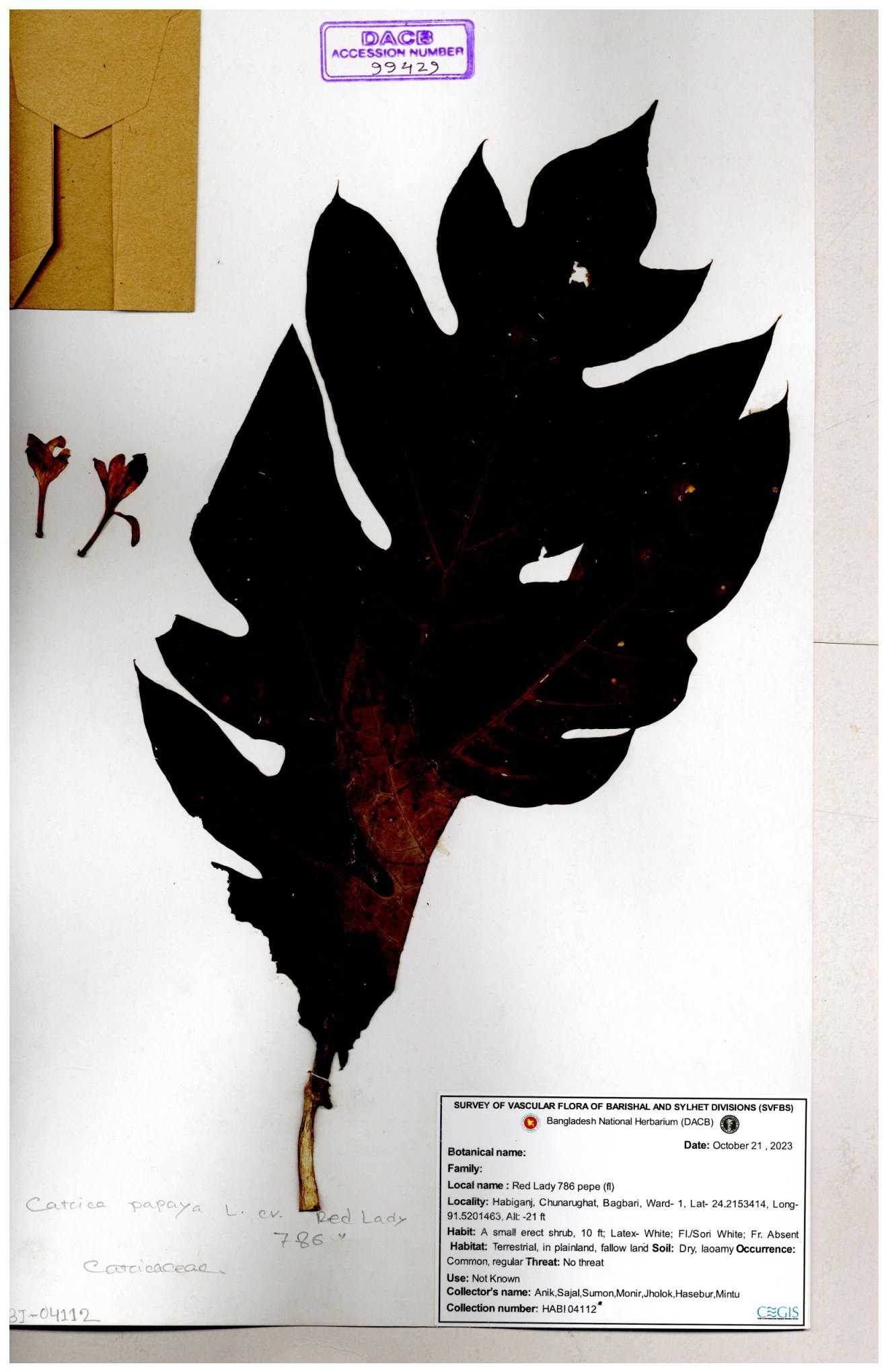 | 66758 | Caricaceae | Carica papaya L. | পেপে | Madhobi Karmakar | 01 01-12-2022 |