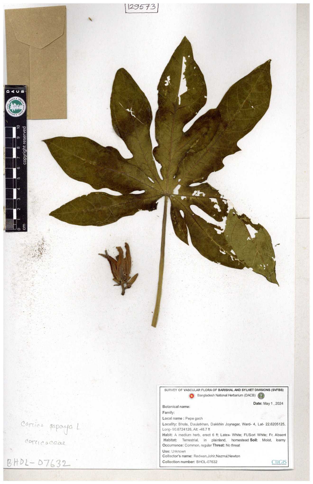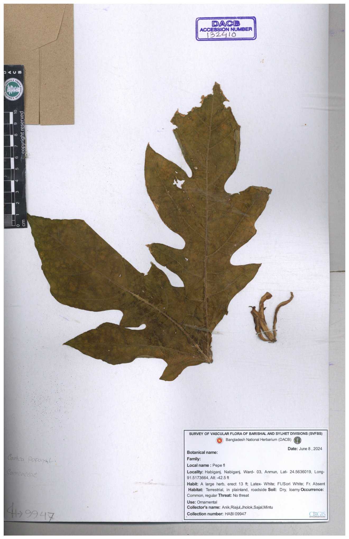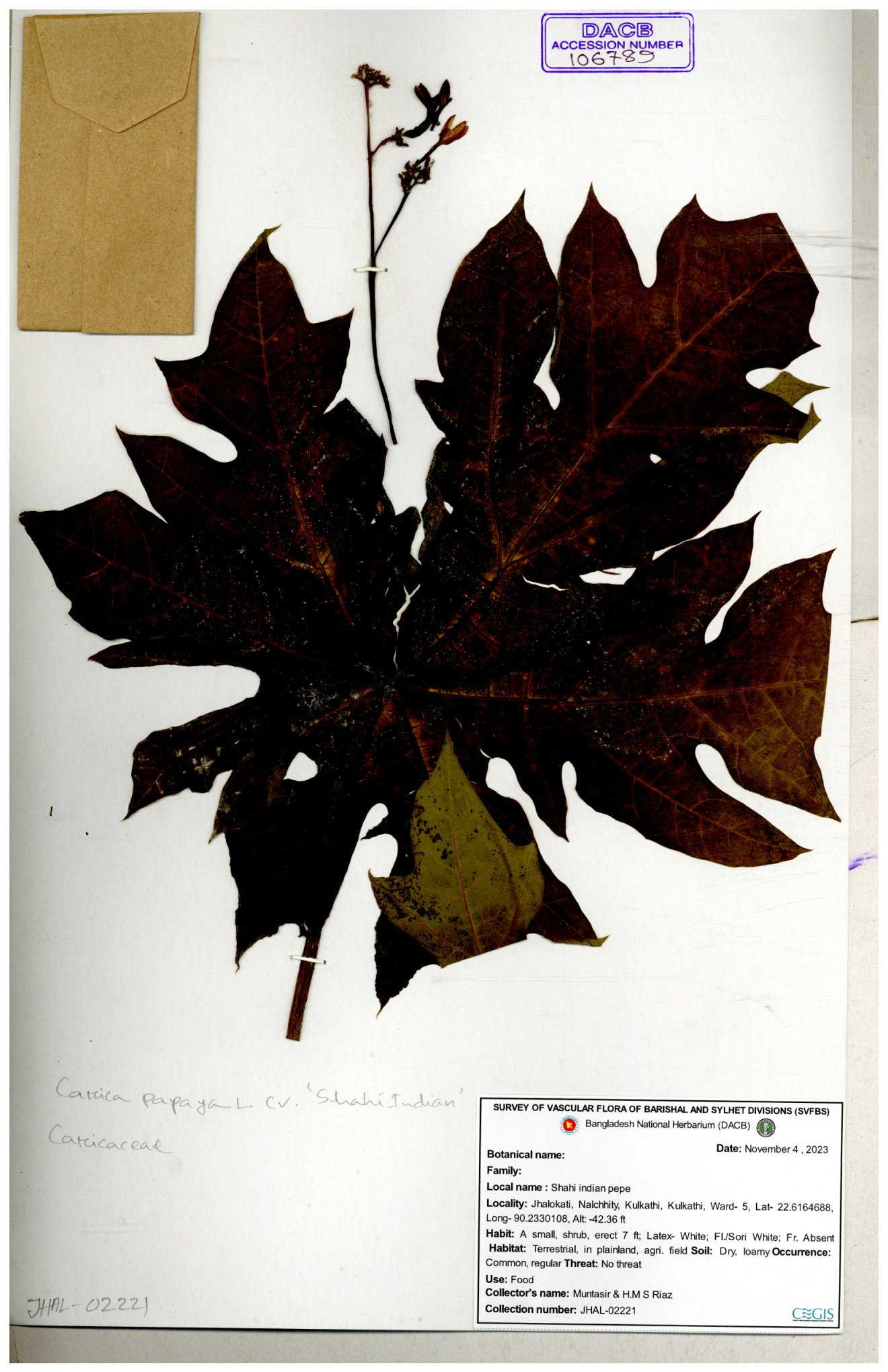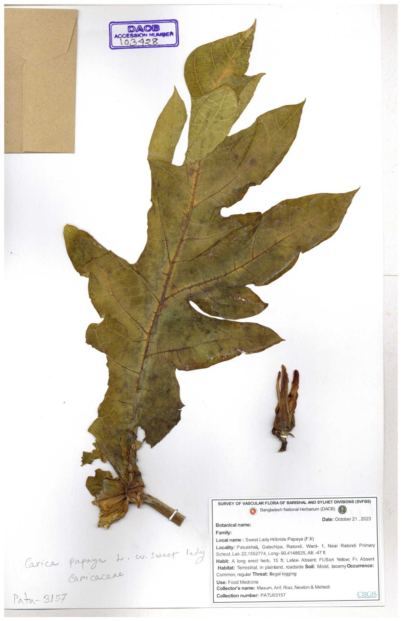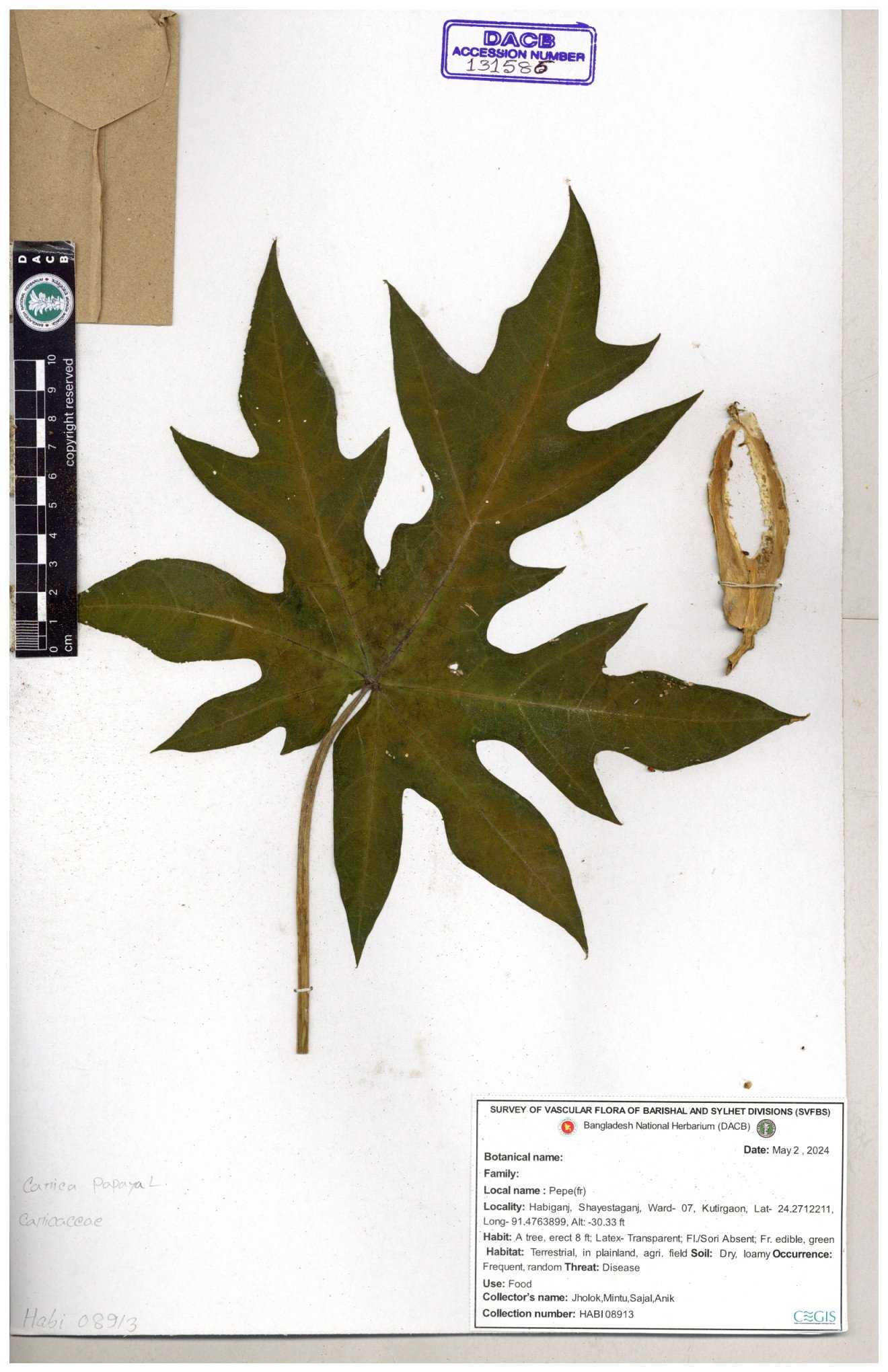 | 66758 | Caricaceae | Carica papaya L. | পেপে | Madhobi Karmakar | 01 01-12-2022 |