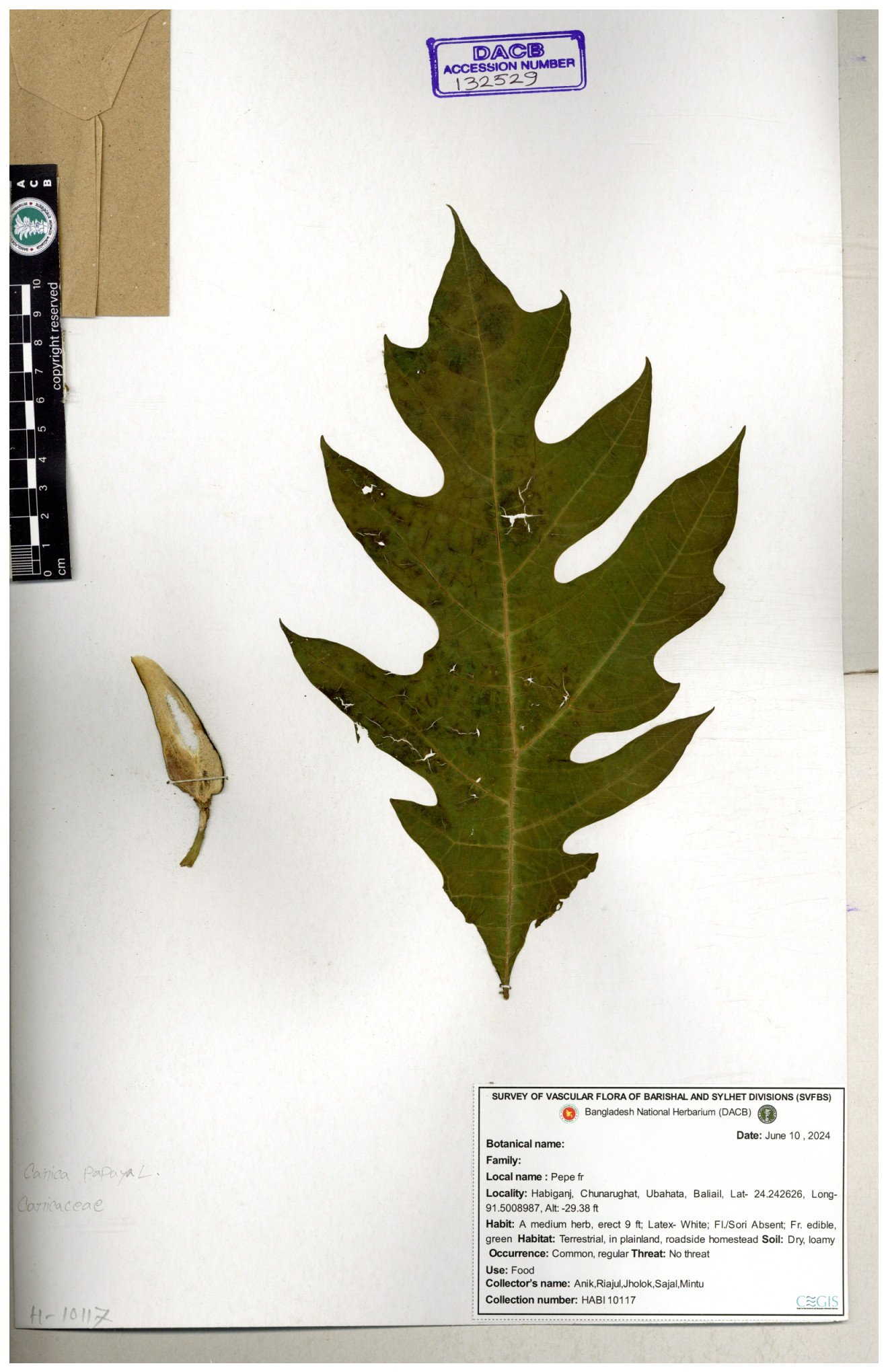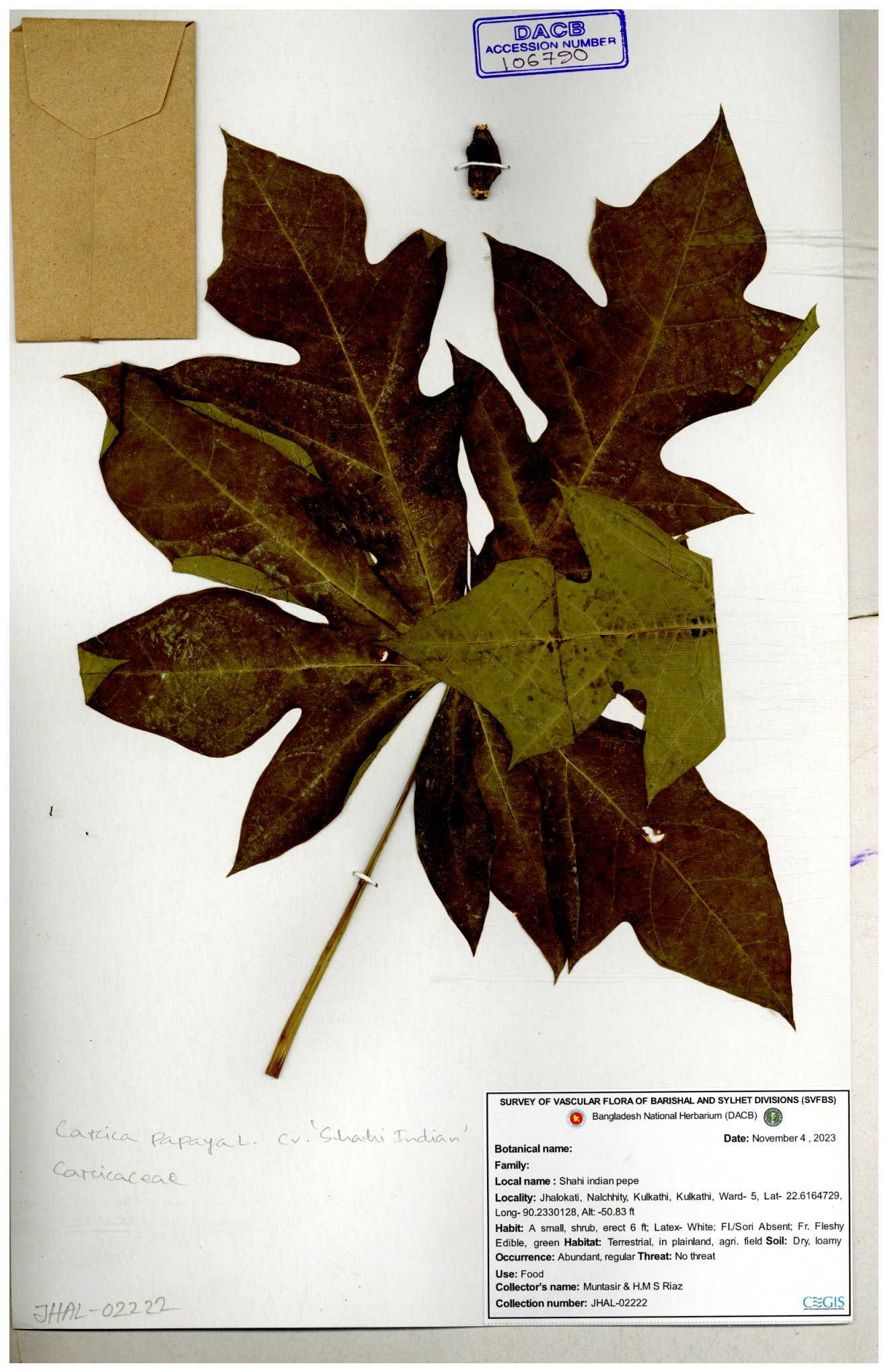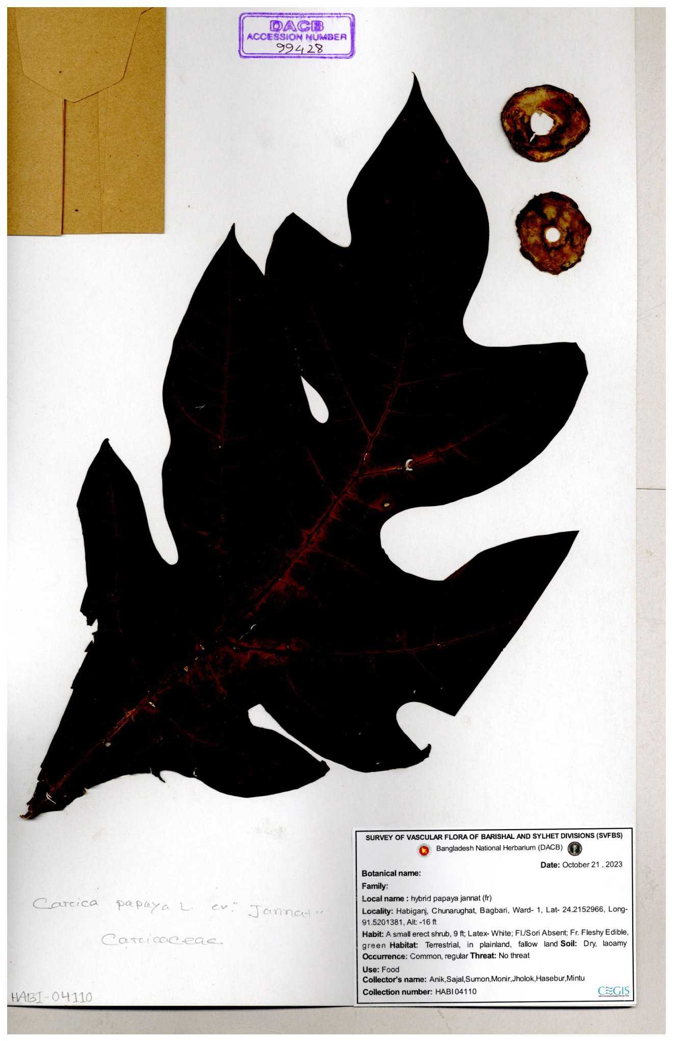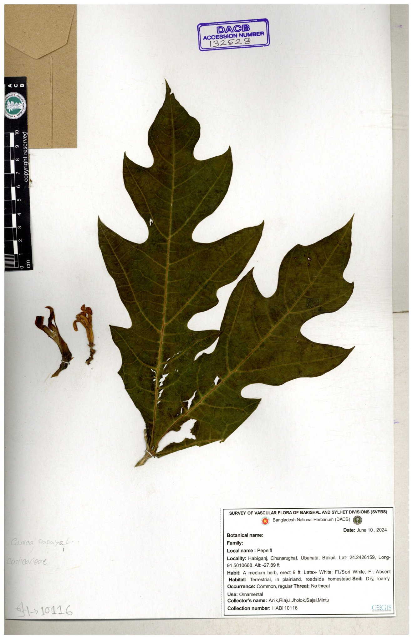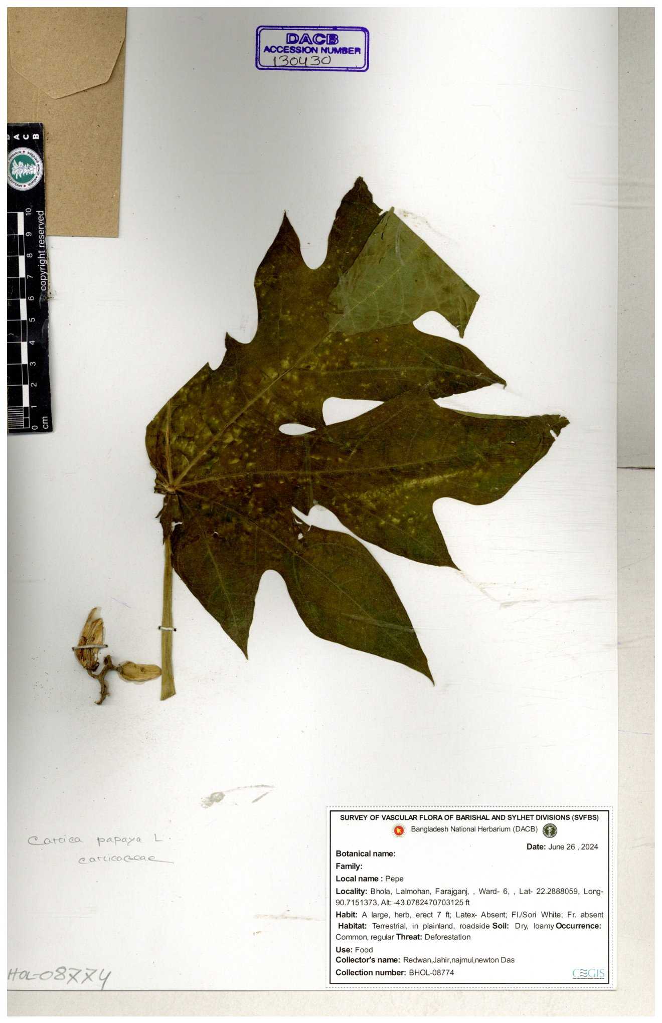 | 66758 | Caricaceae | Carica papaya L. | পেপে | Madhobi Karmakar | 01 01-12-2022 |