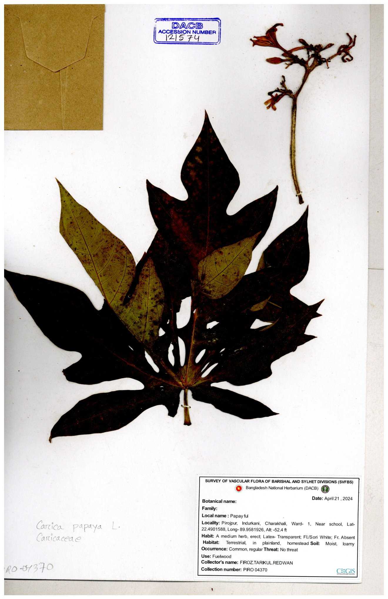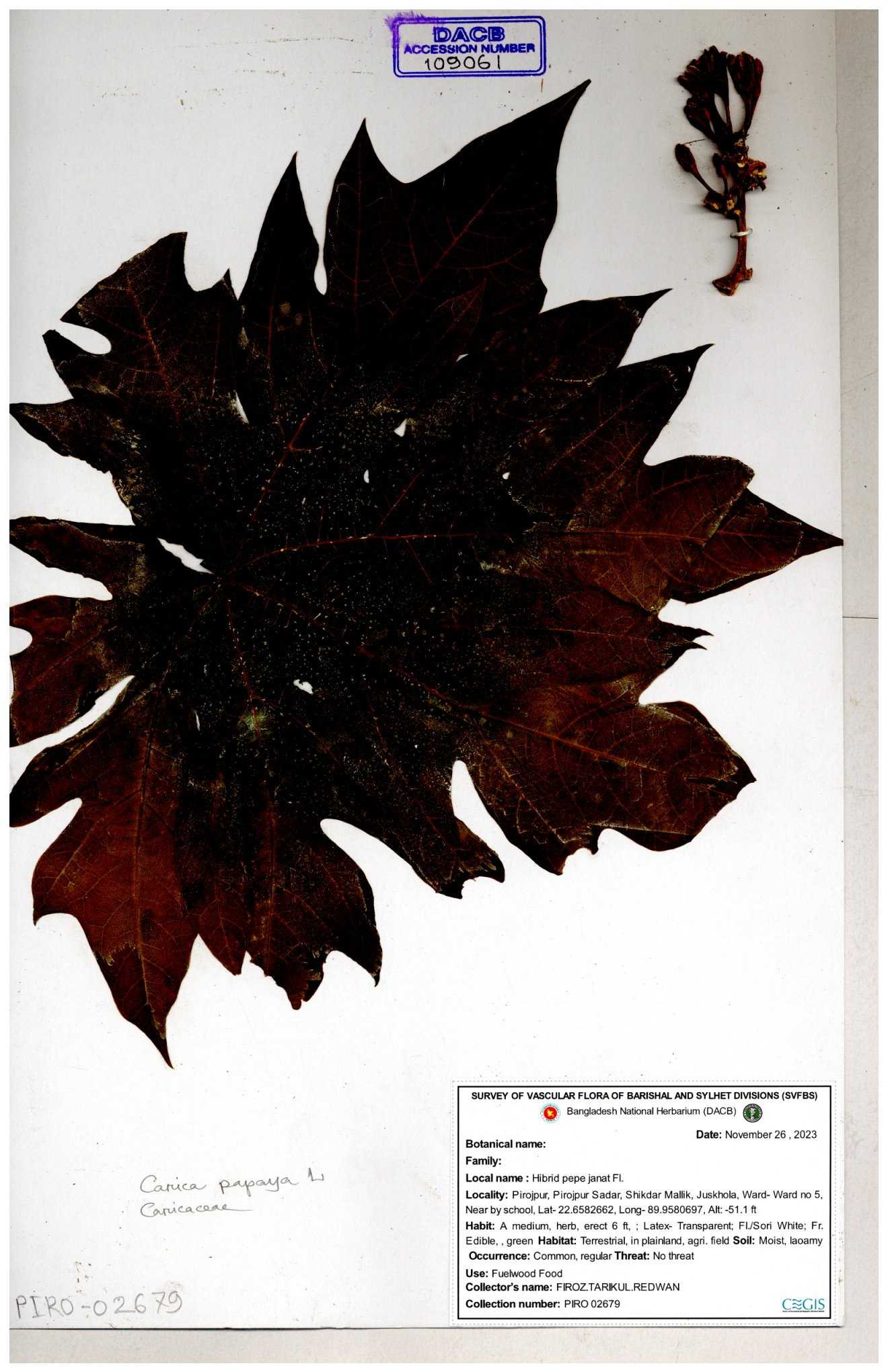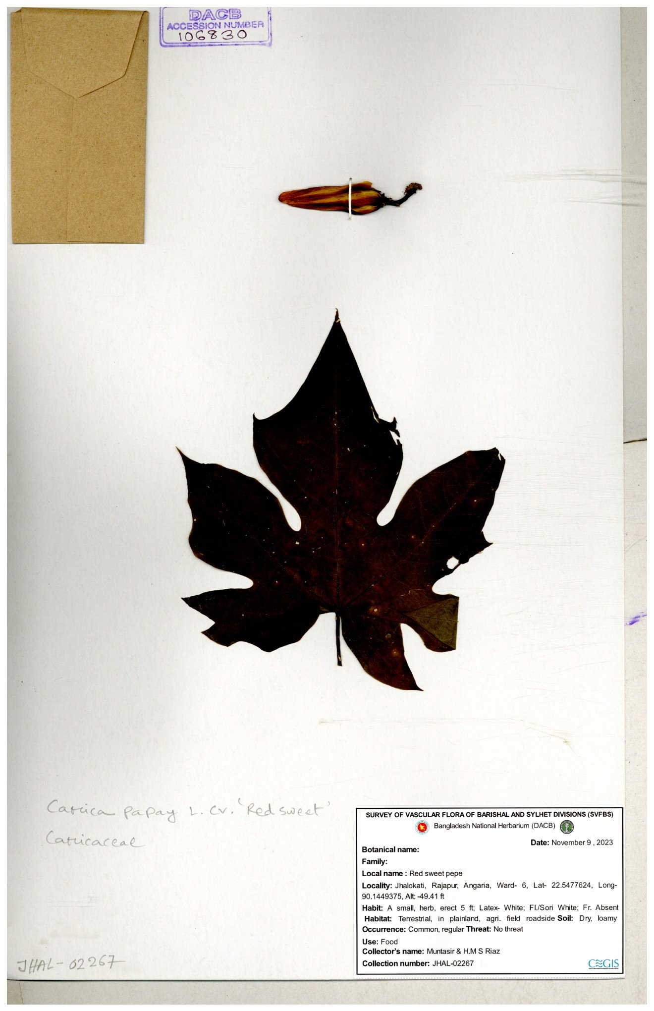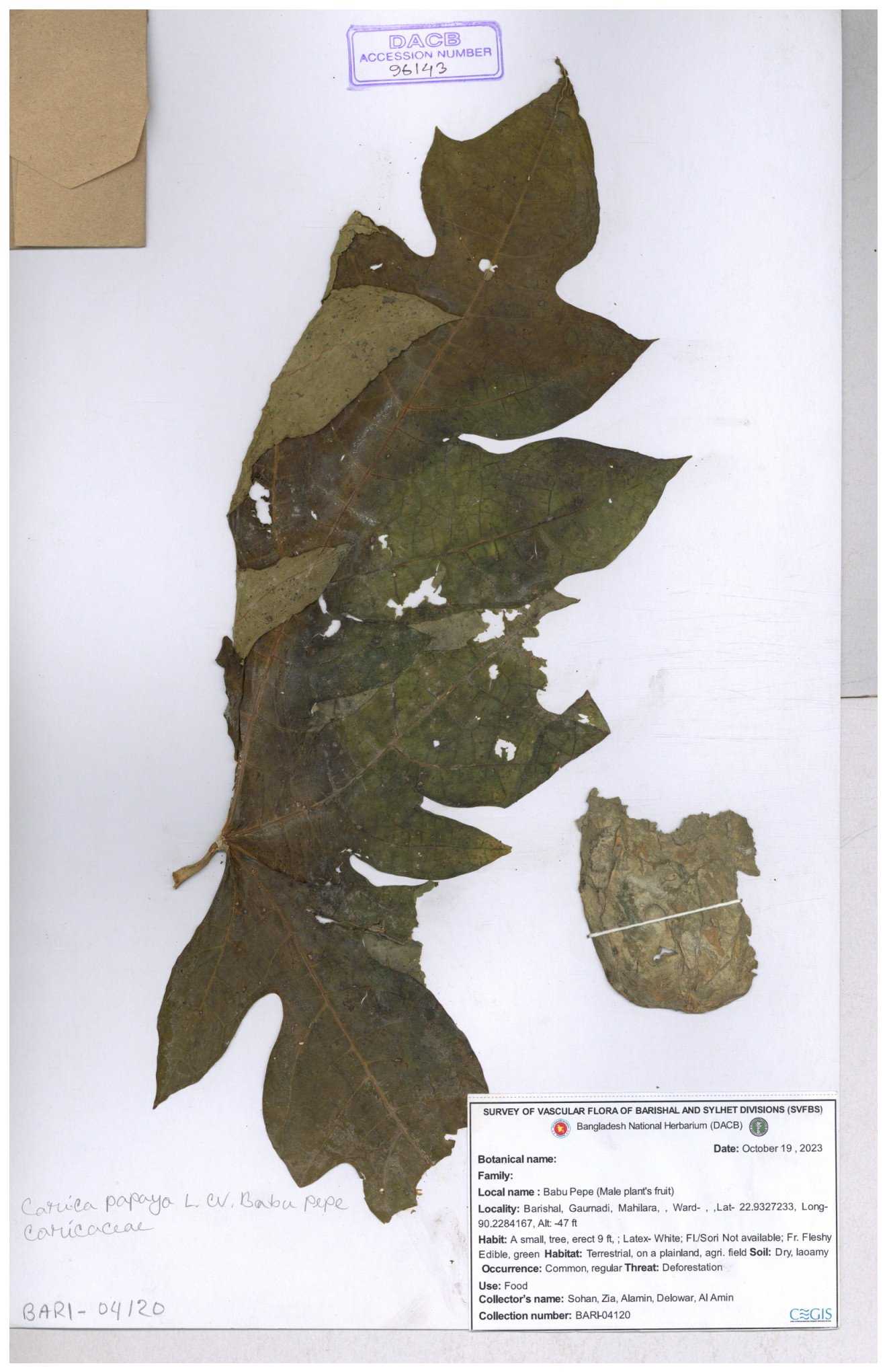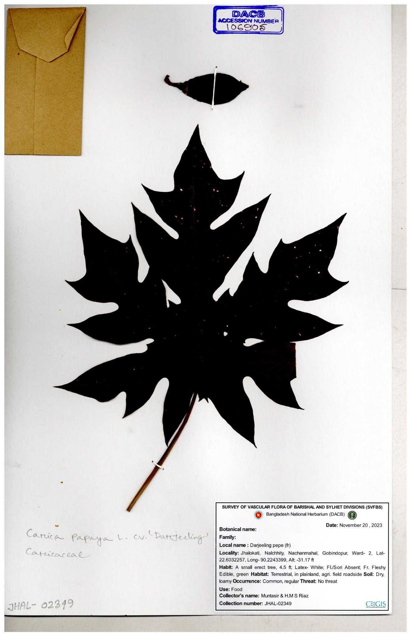 | 66758 | Caricaceae | Carica papaya L. | পেপে | Madhobi Karmakar | 01 01-12-2022 |