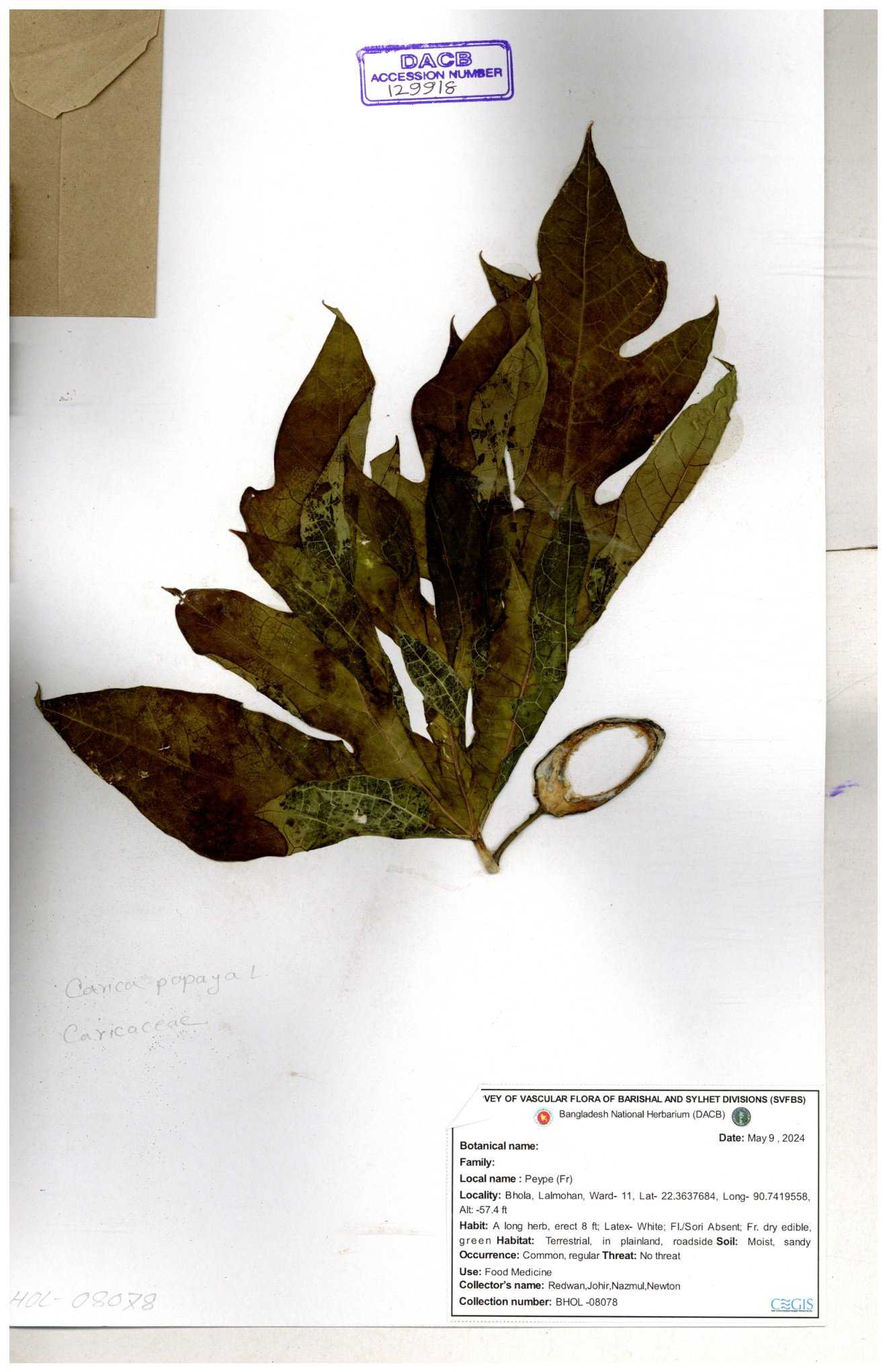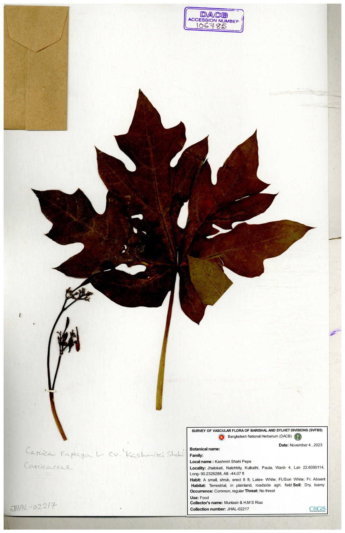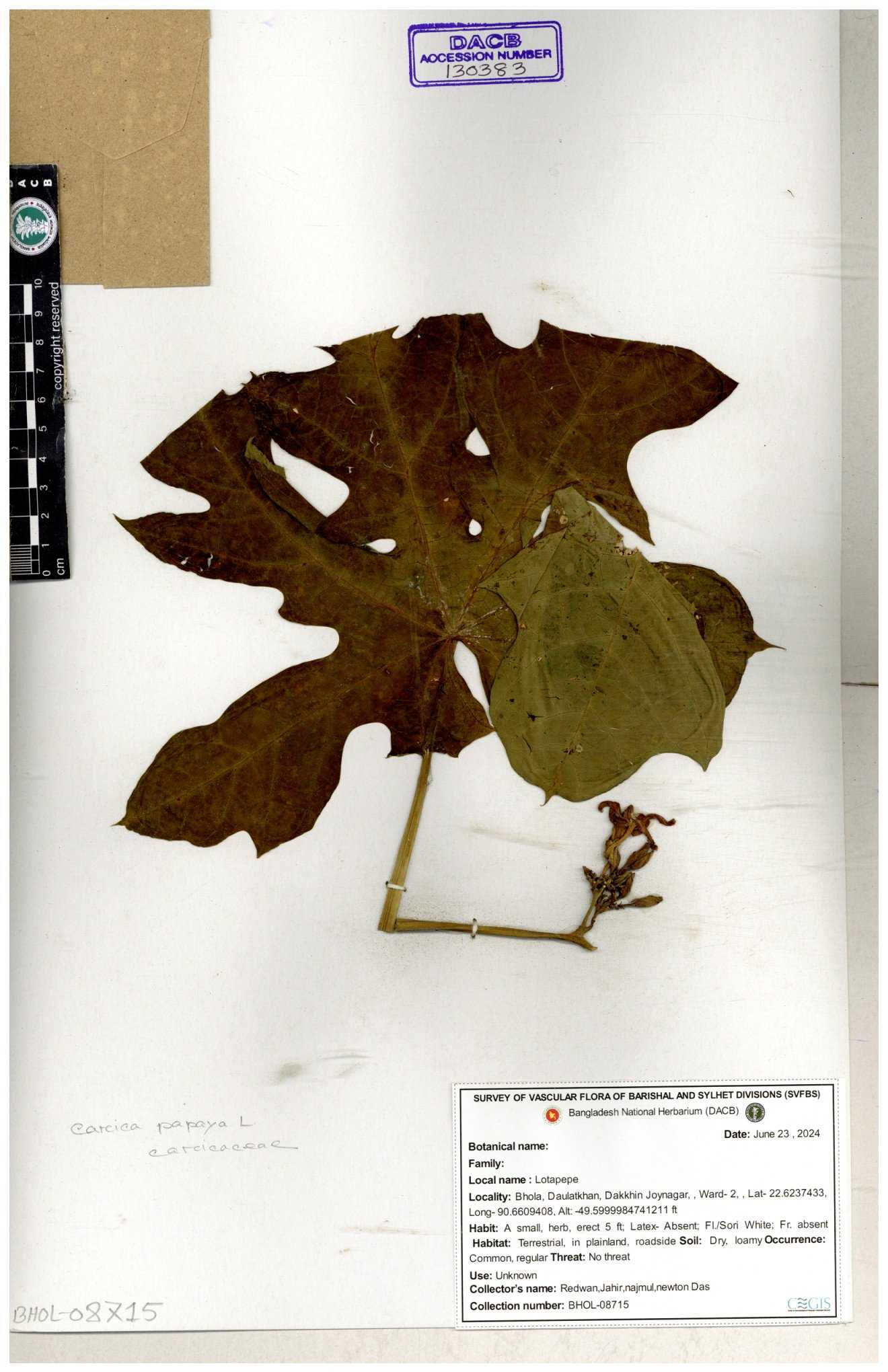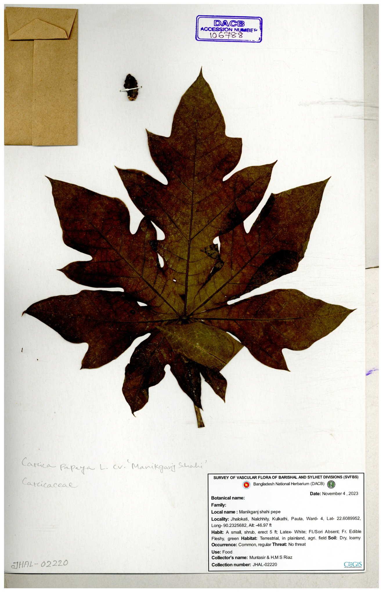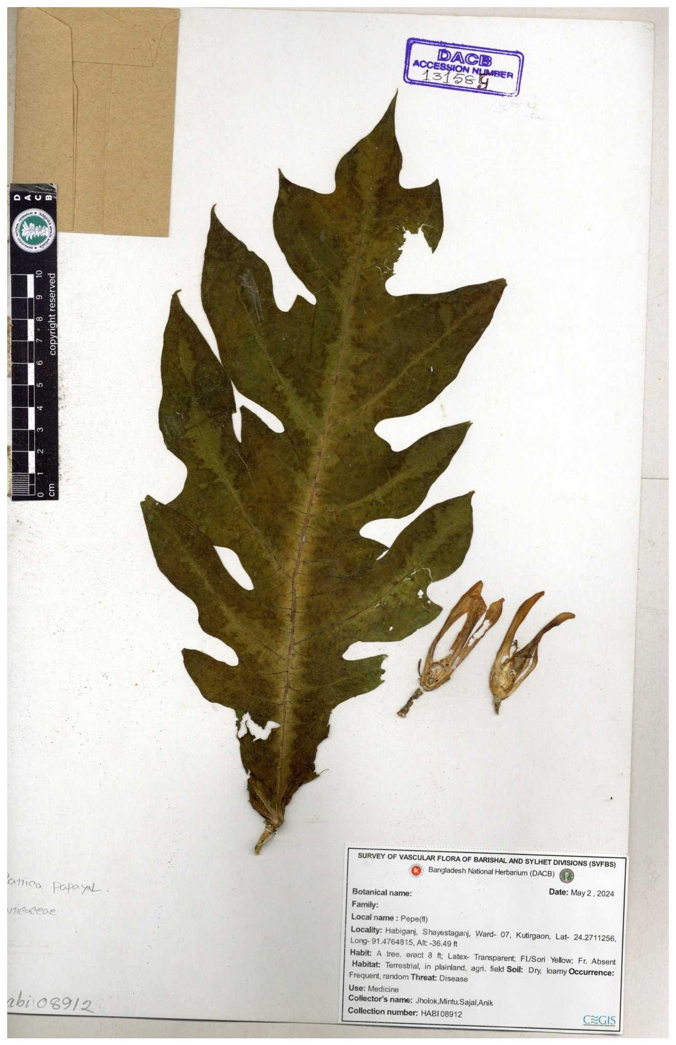 | 66758 | Caricaceae | Carica papaya L. | পেপে | Madhobi Karmakar | 01 01-12-2022 |