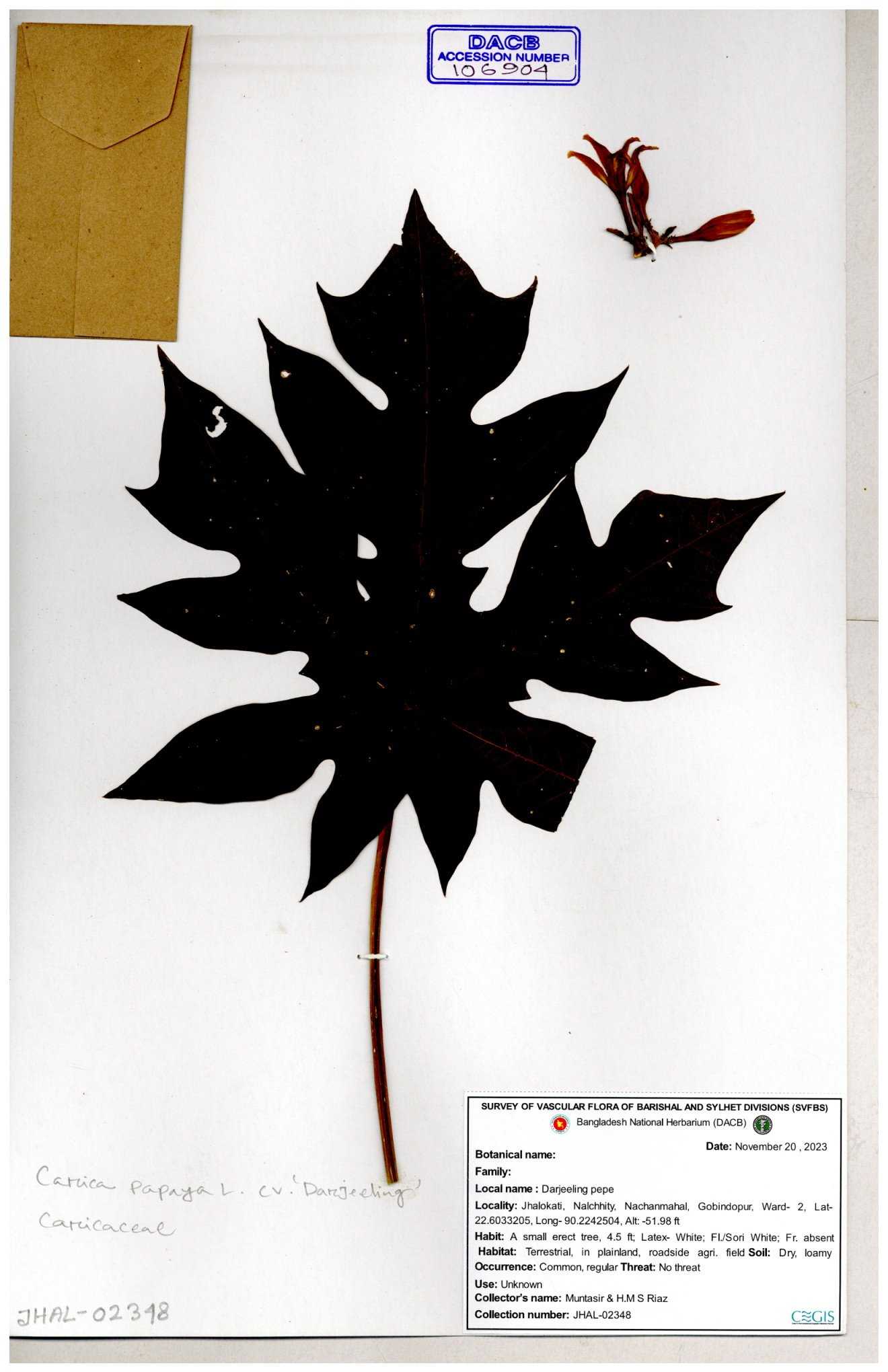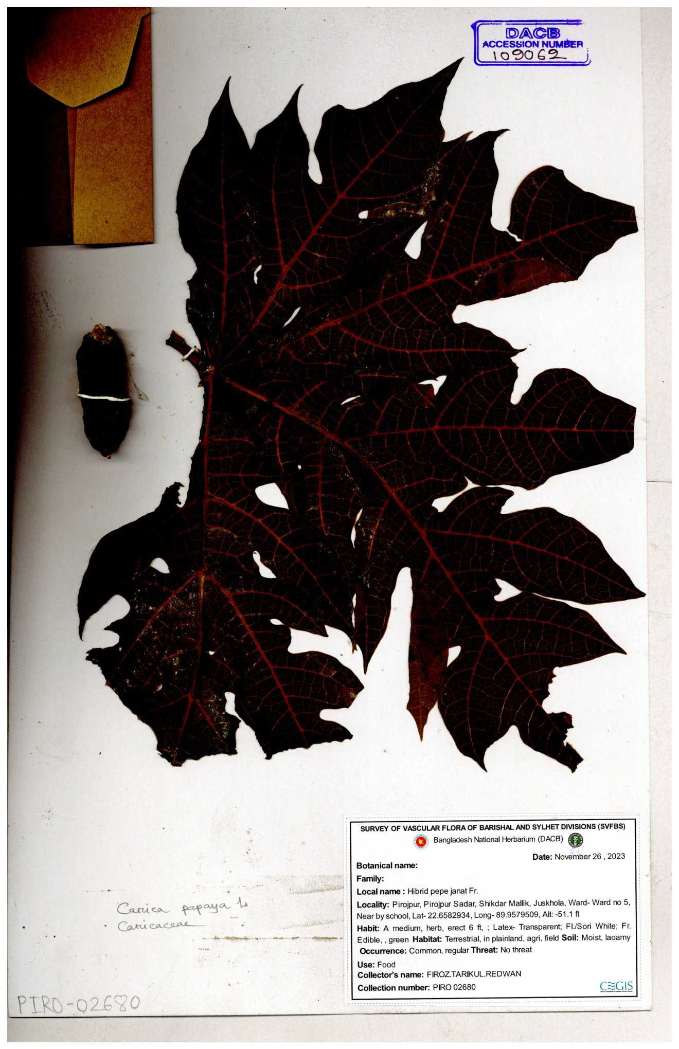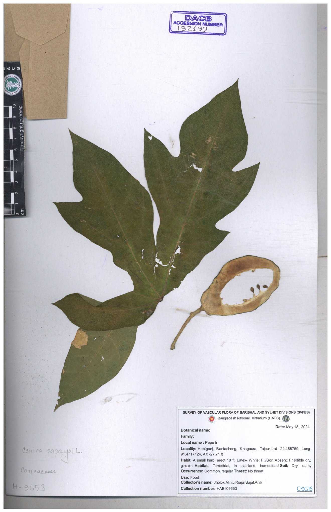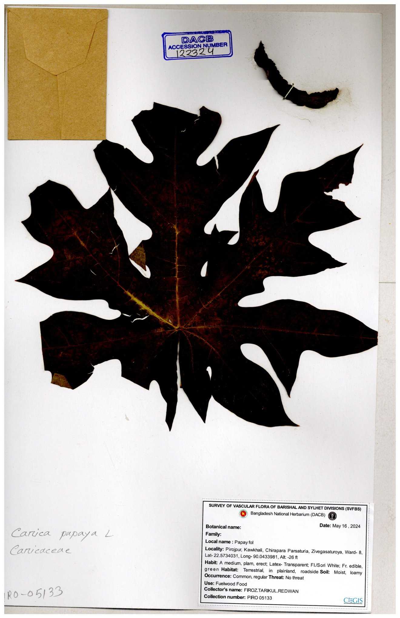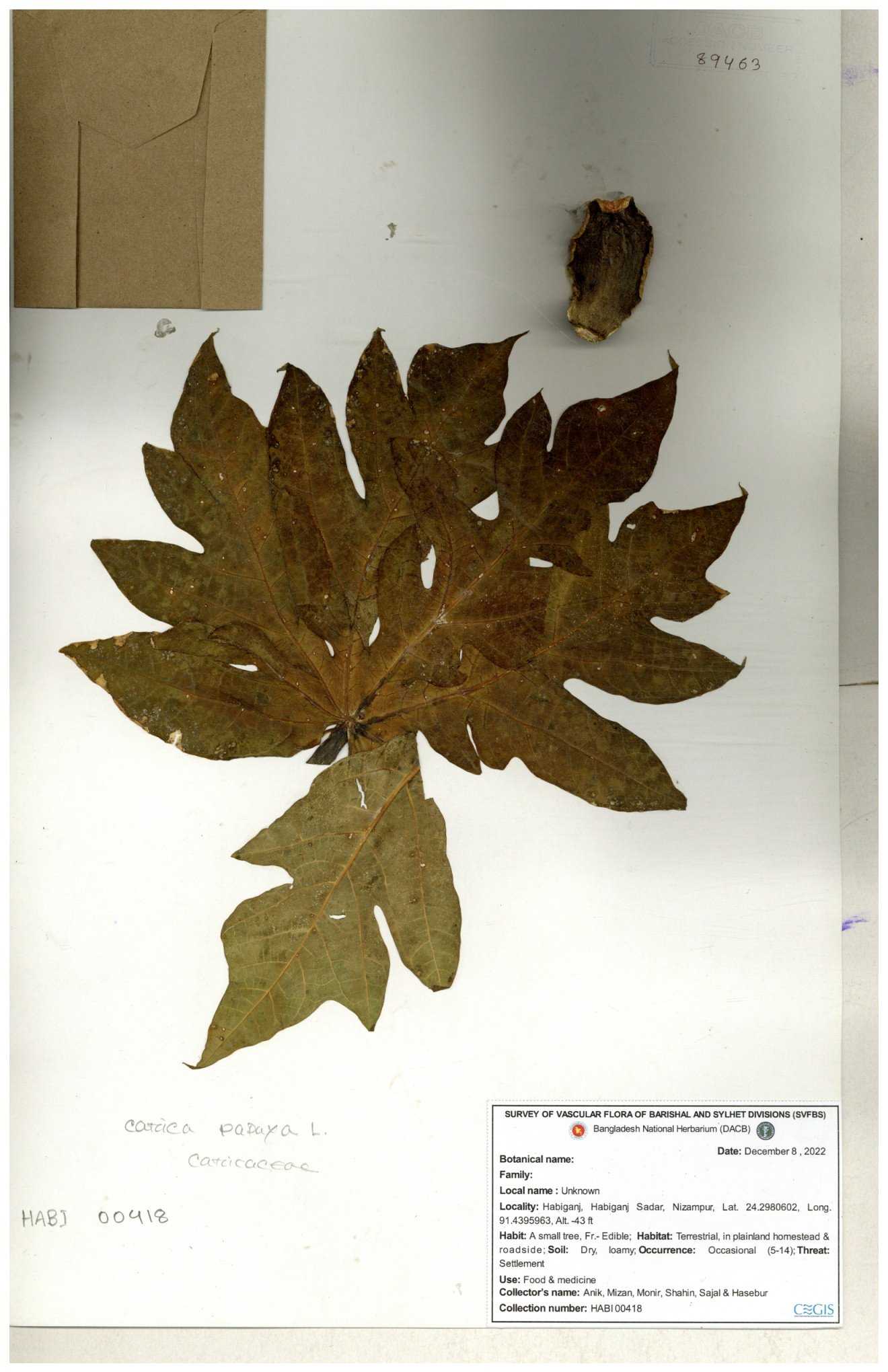 | 66758 | Caricaceae | Carica papaya L. | পেপে | Madhobi Karmakar | 01 01-12-2022 |