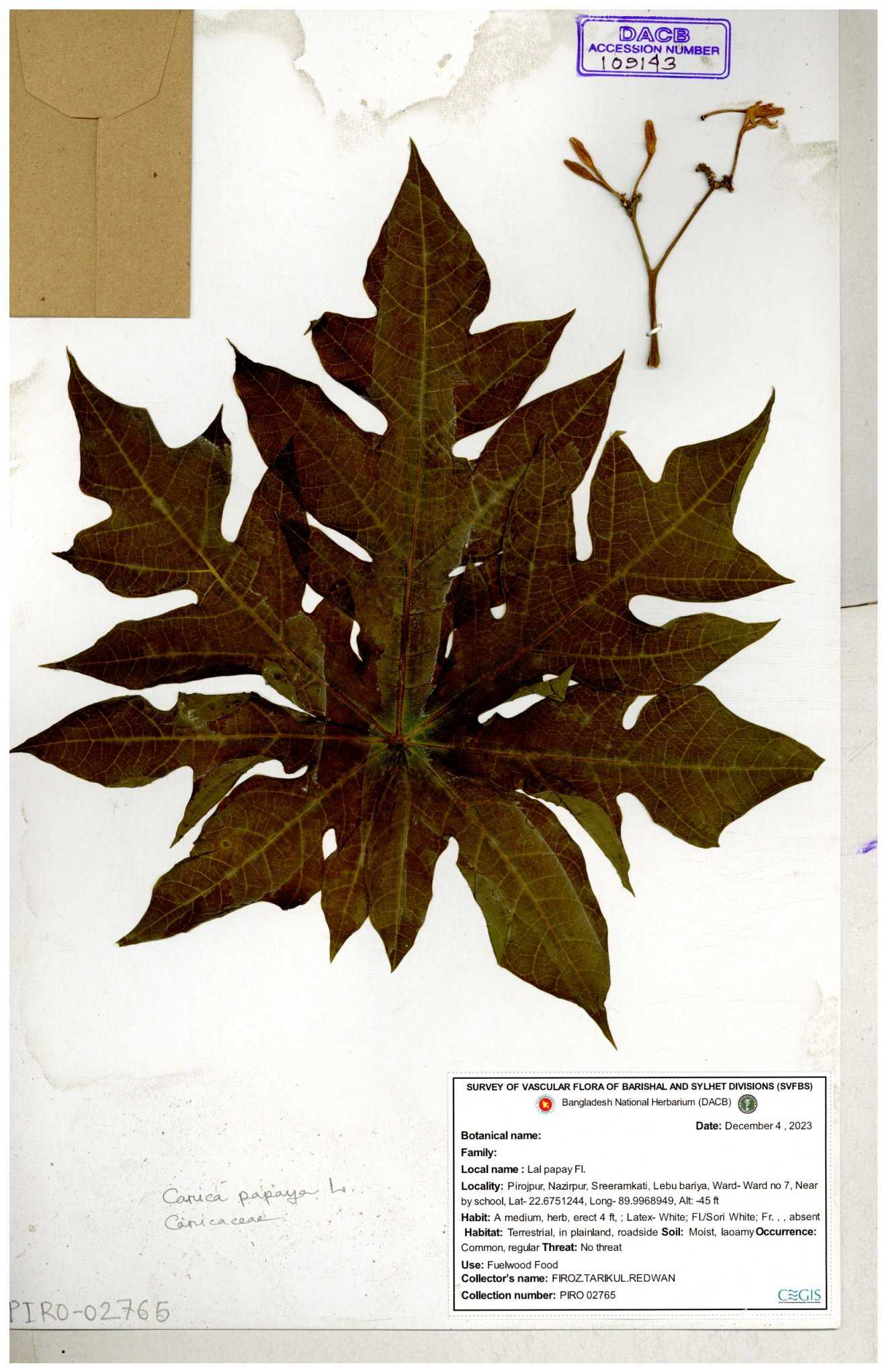 | 109143 | Caricaceae | Carica papaya | 30-11--0001 |