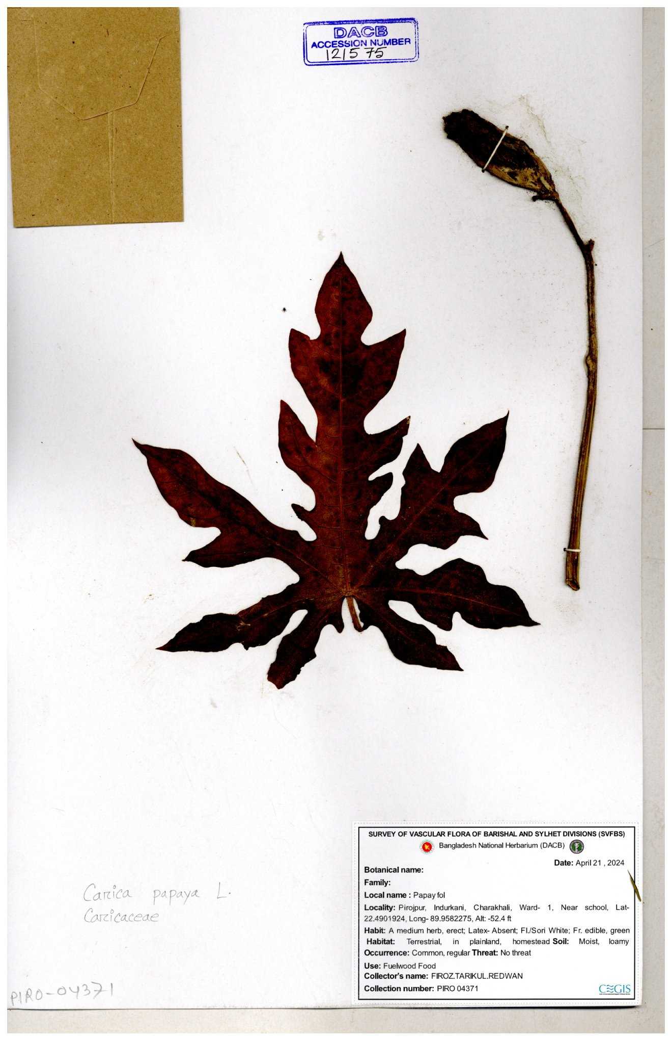 | 104738 | Caricaceae | Carica papaya | 30-11--0001 |