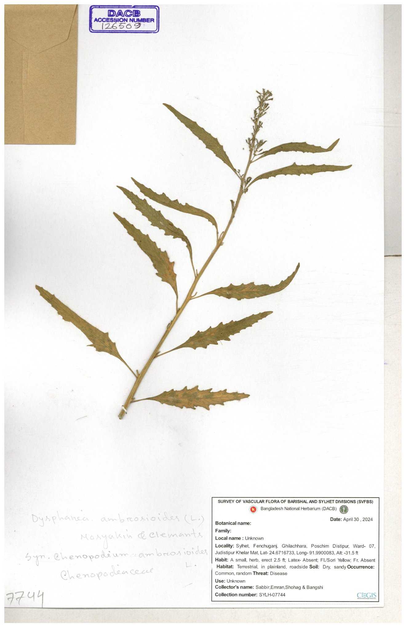 | 126509 | Chenopodiaceae | Dysphania ambrosioides | 30-11--0001 |