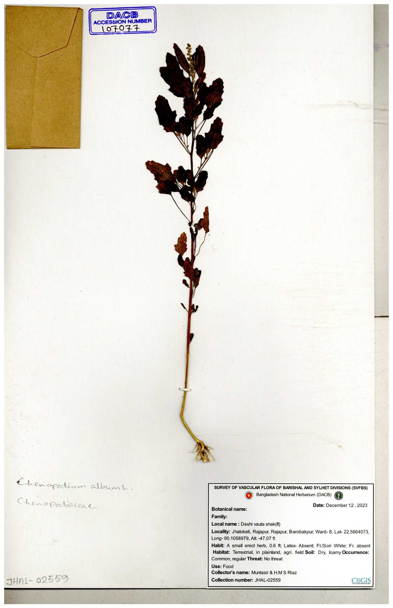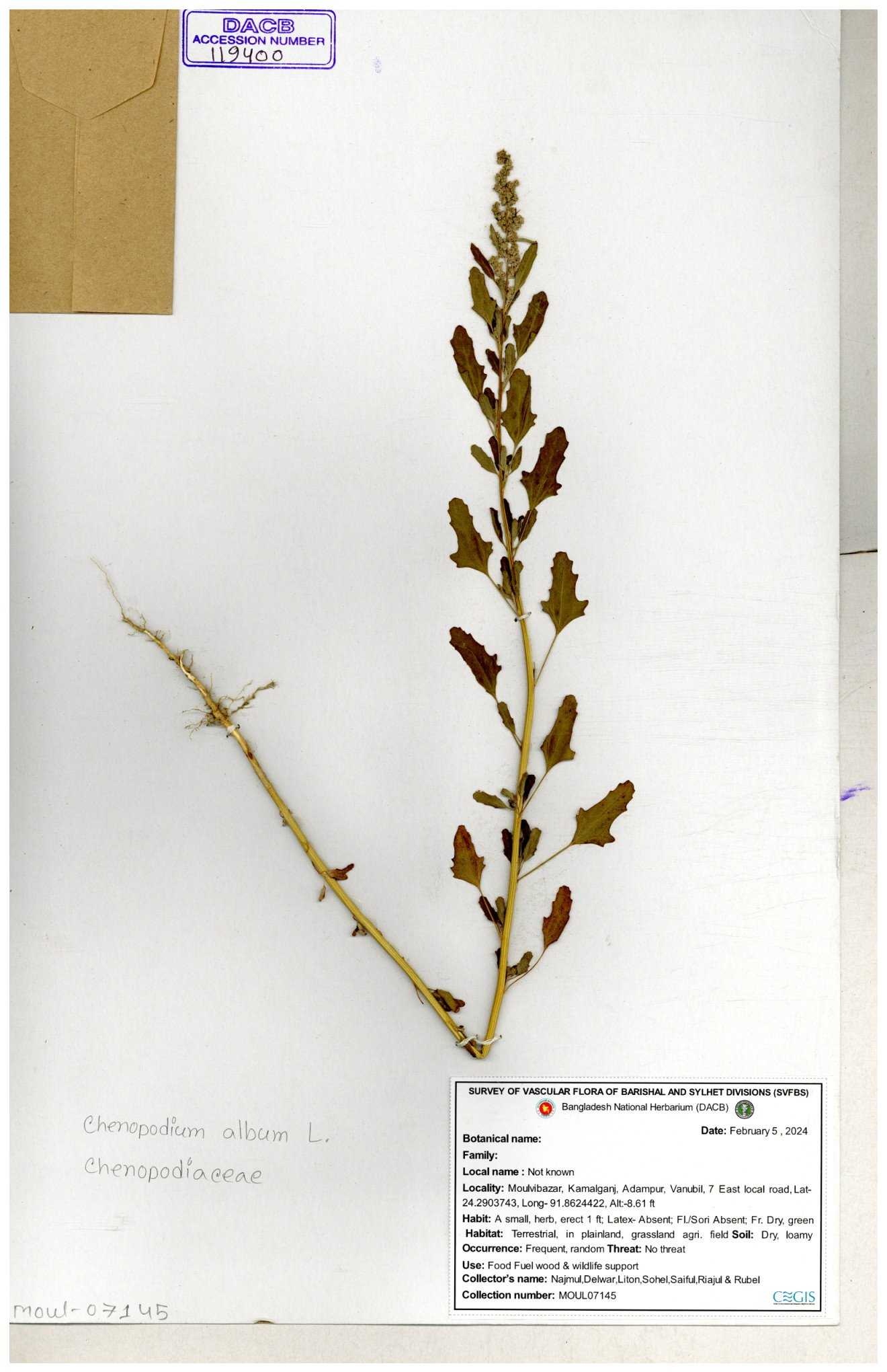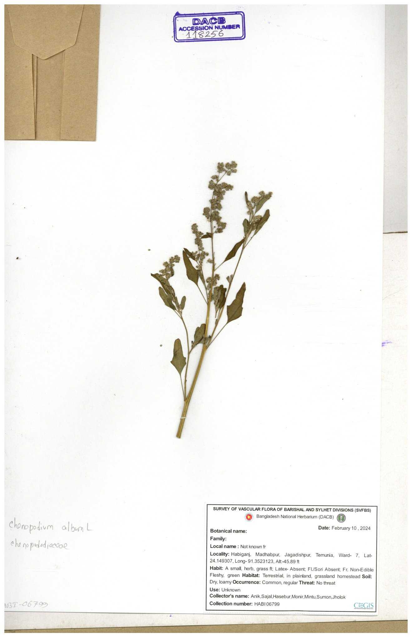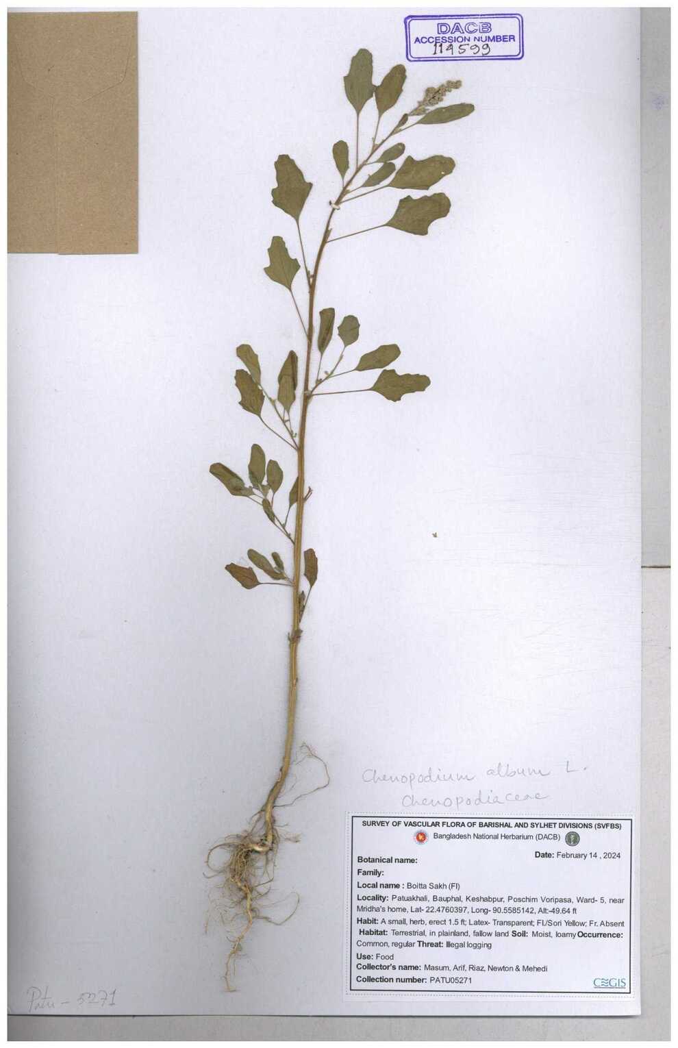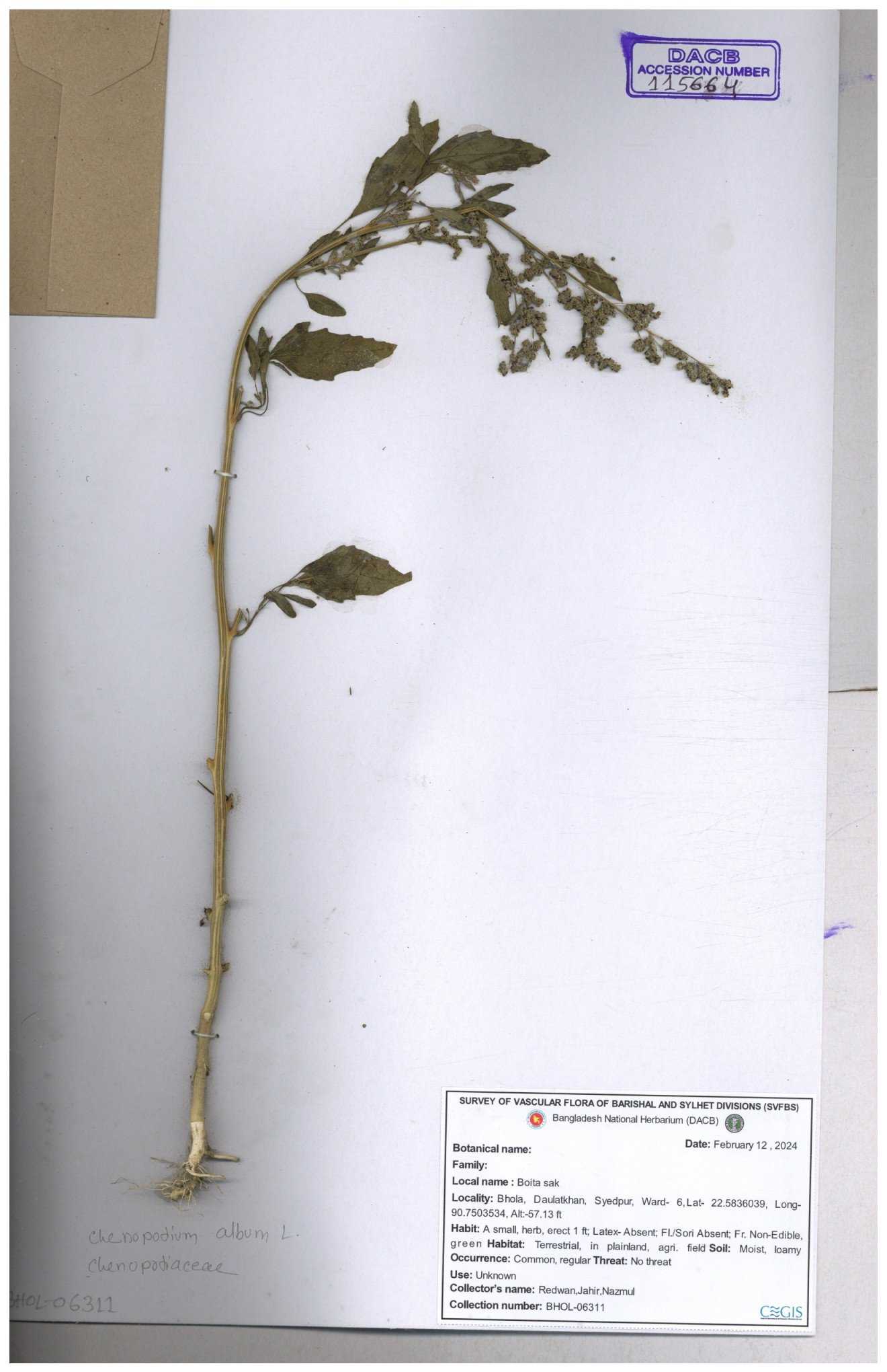 | 88156 | Chenopodiaceae | Chenopodium album (L.) | Dr. M. Sultana | DMS-3580 23-03-2021 |