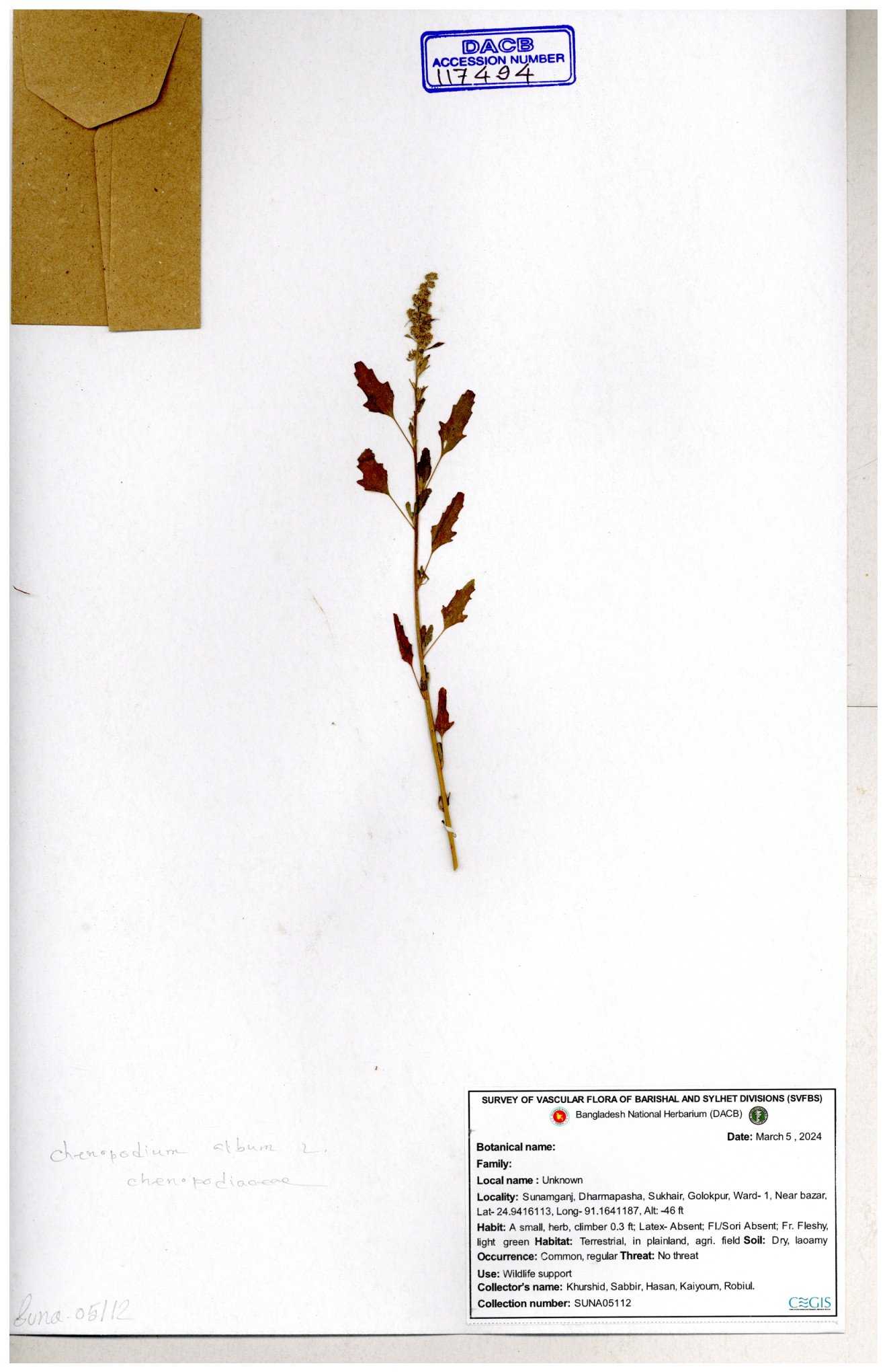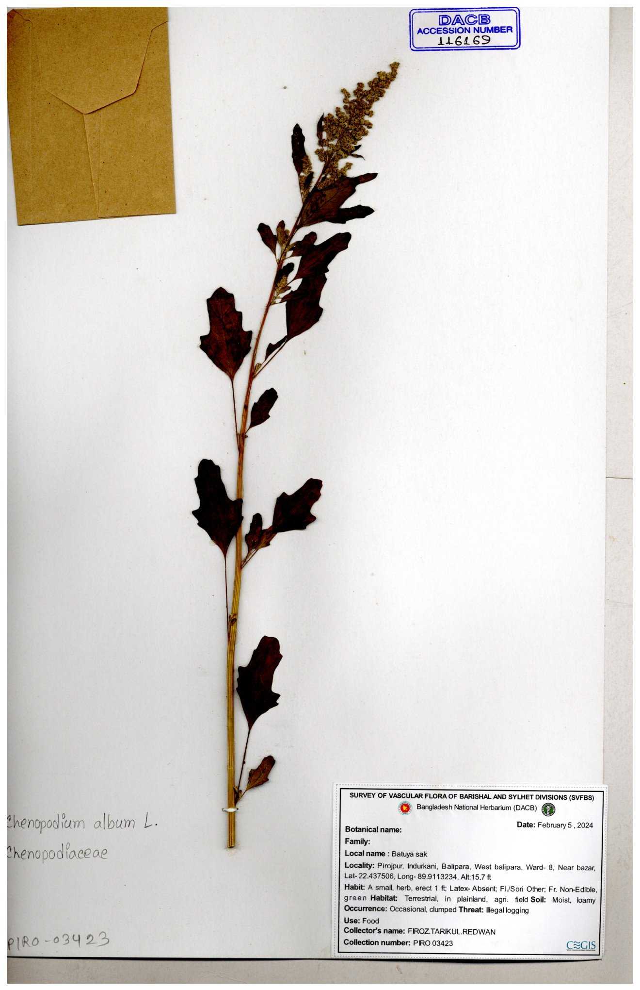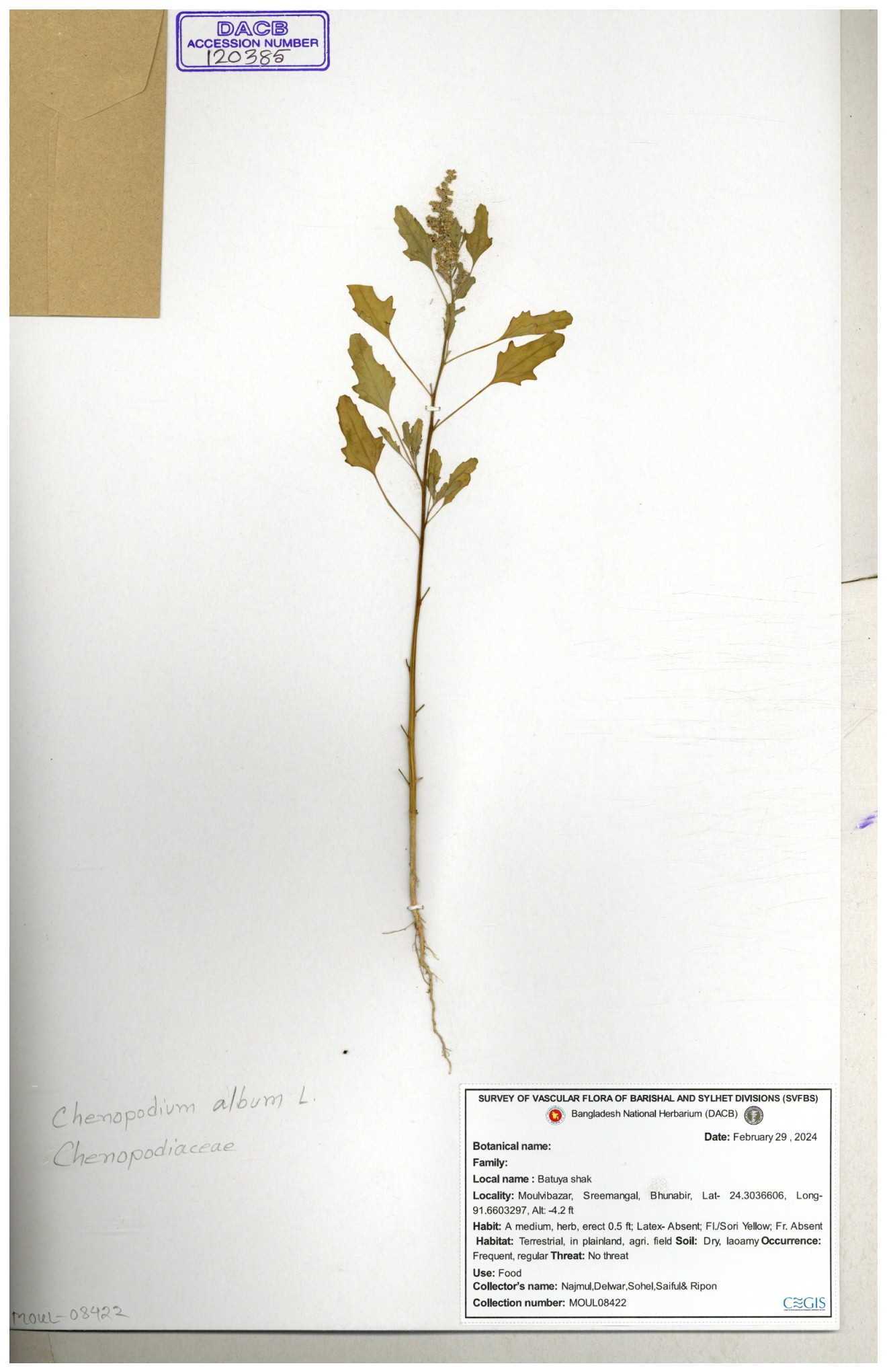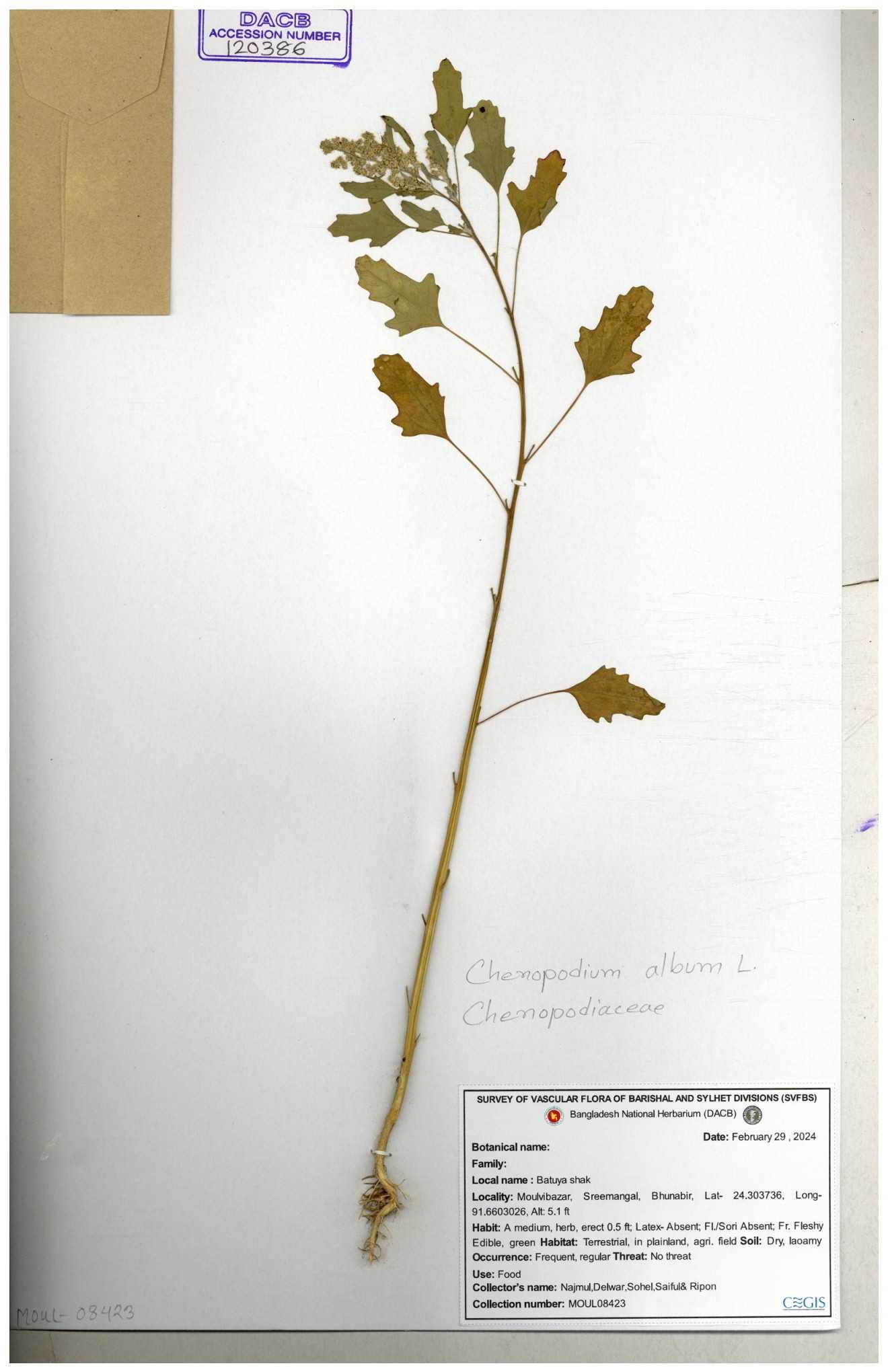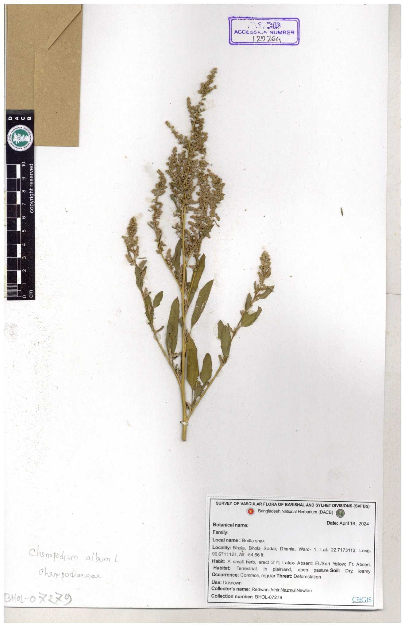 | 88156 | Chenopodiaceae | Chenopodium album (L.) | Dr. M. Sultana | DMS-3580 23-03-2021 |