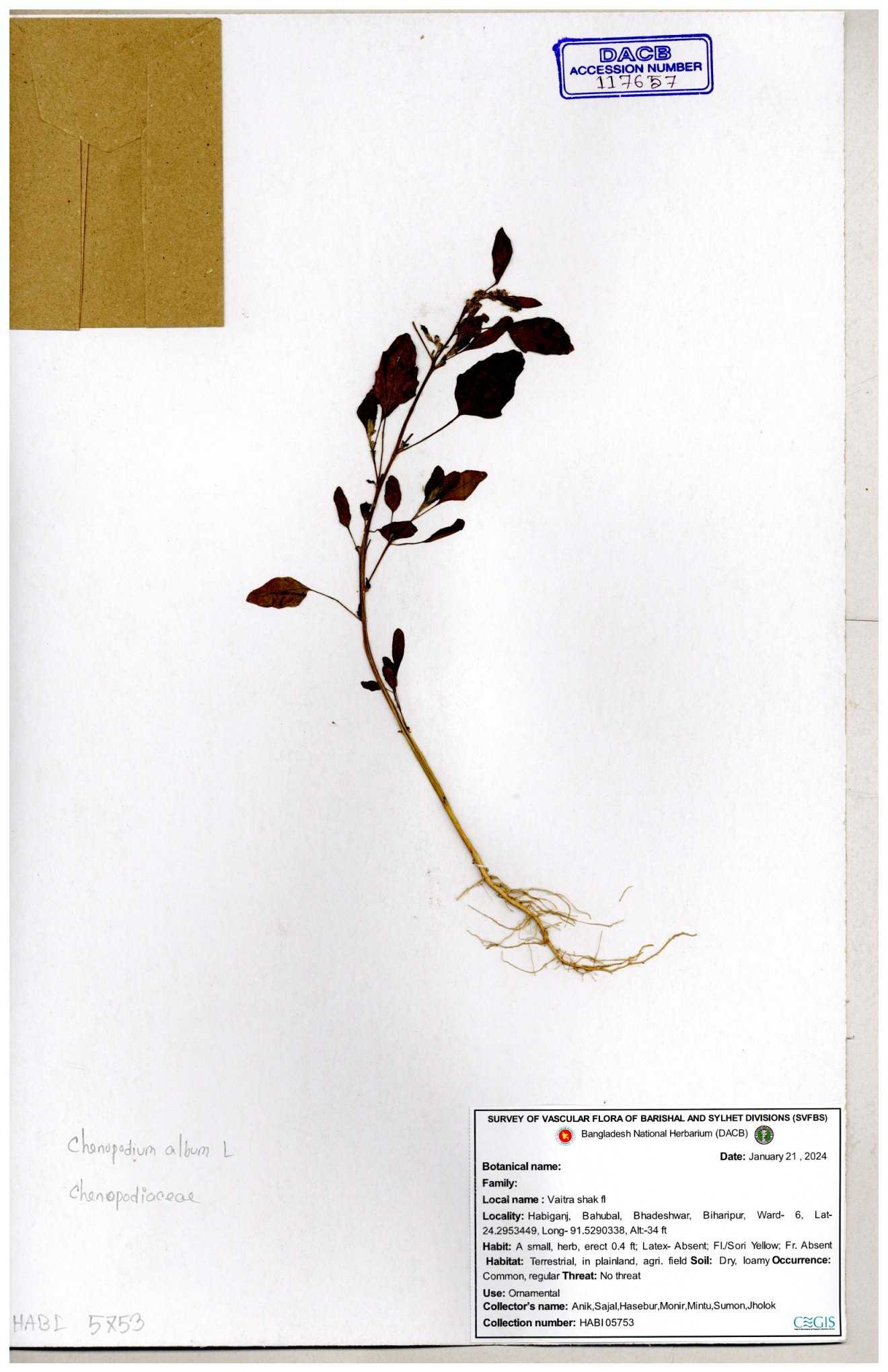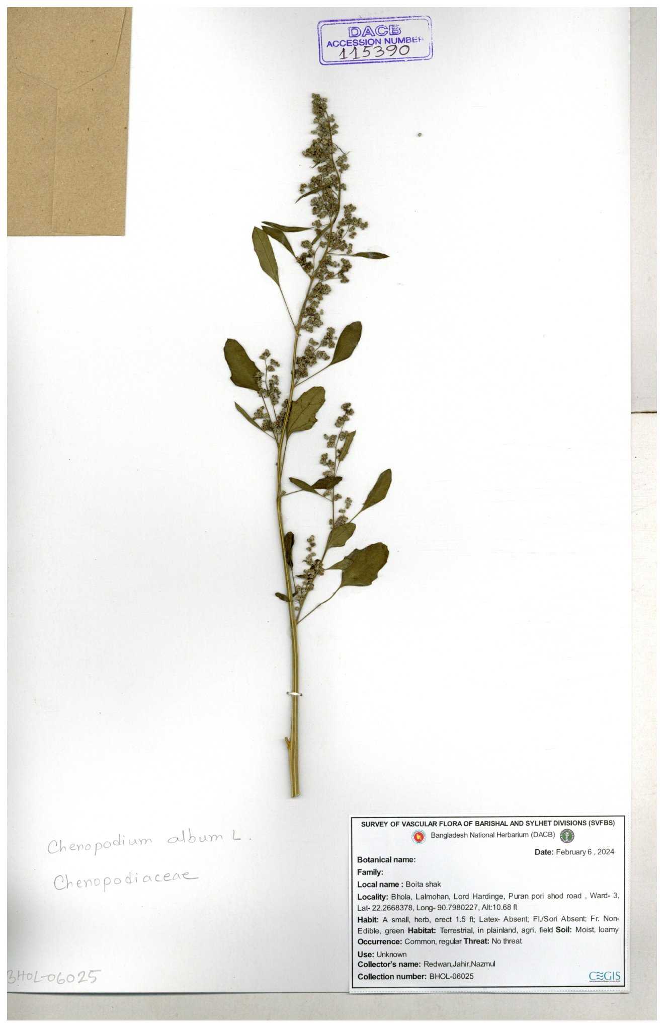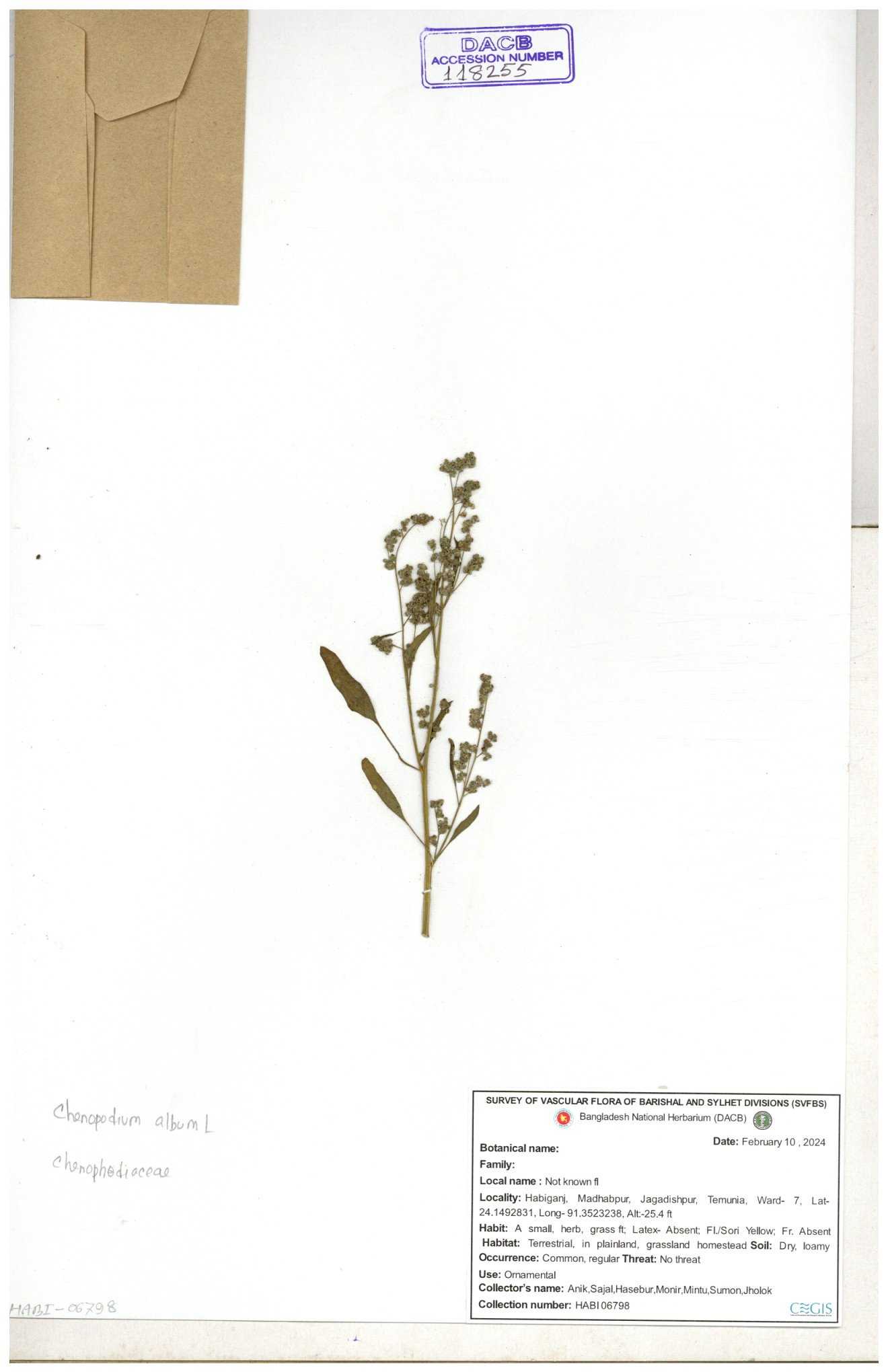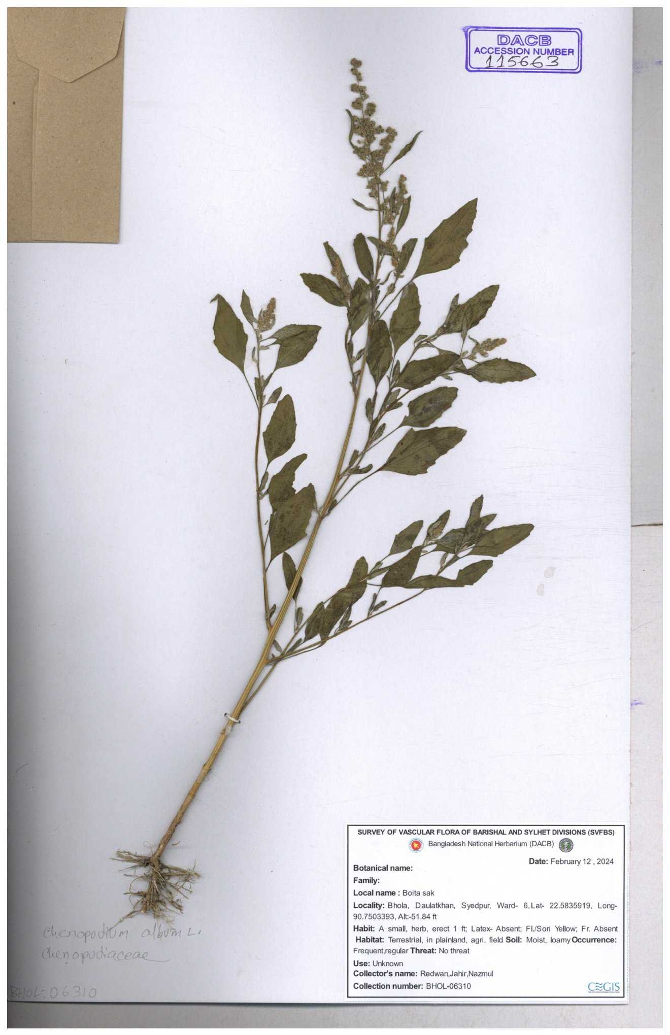 | 88156 | Chenopodiaceae | Chenopodium album (L.) | Dr. M. Sultana | DMS-3580 23-03-2021 |