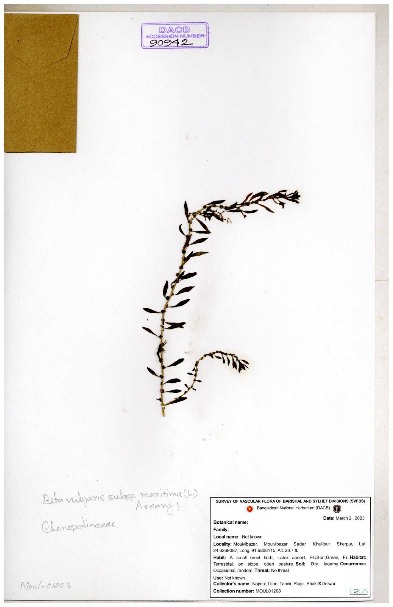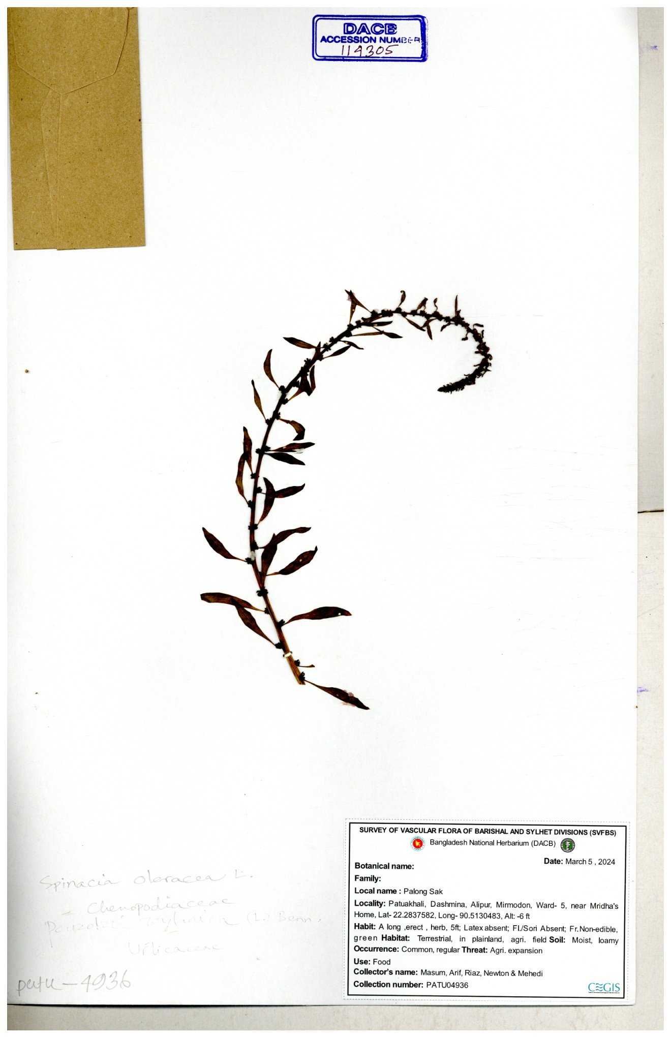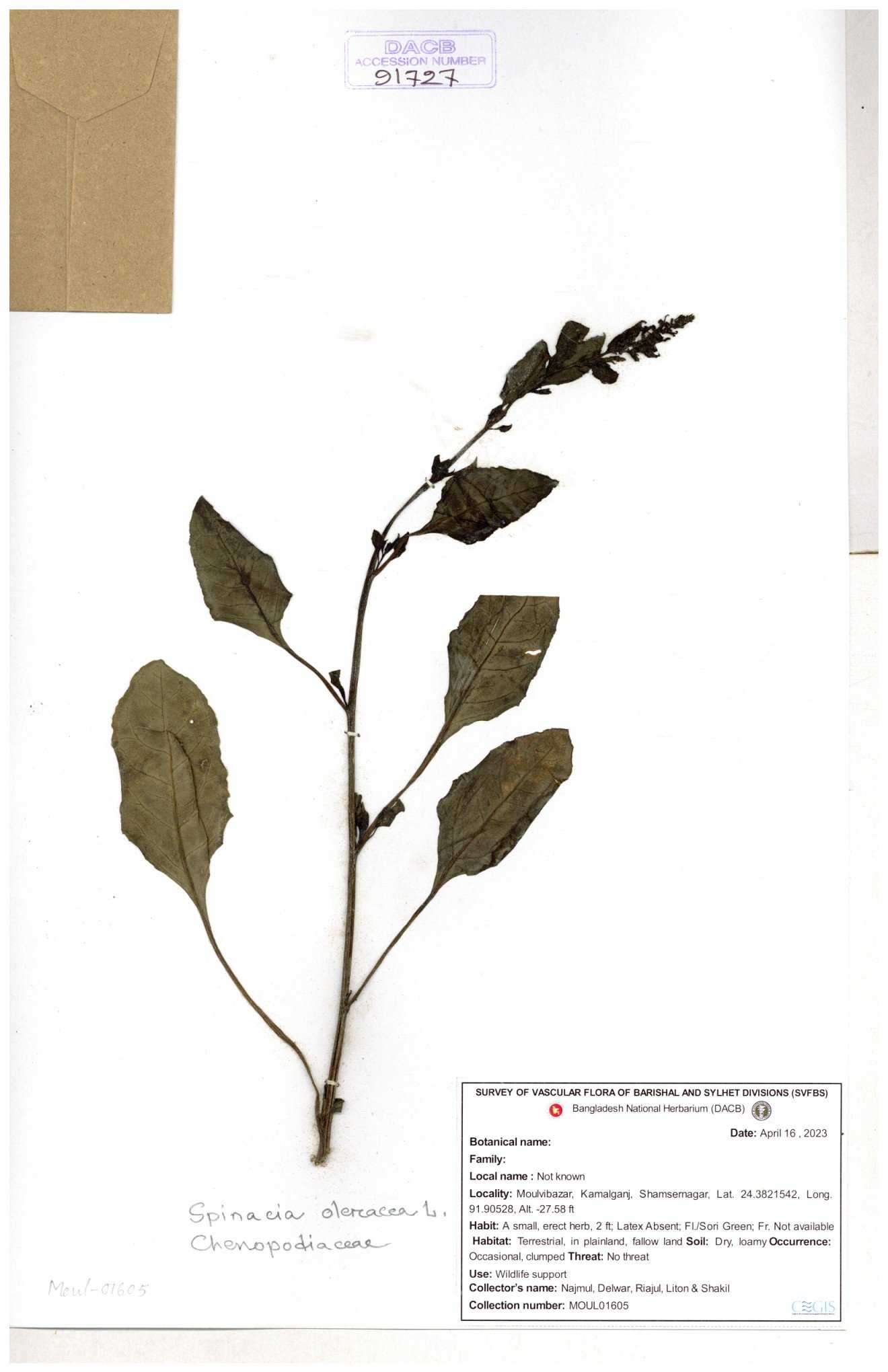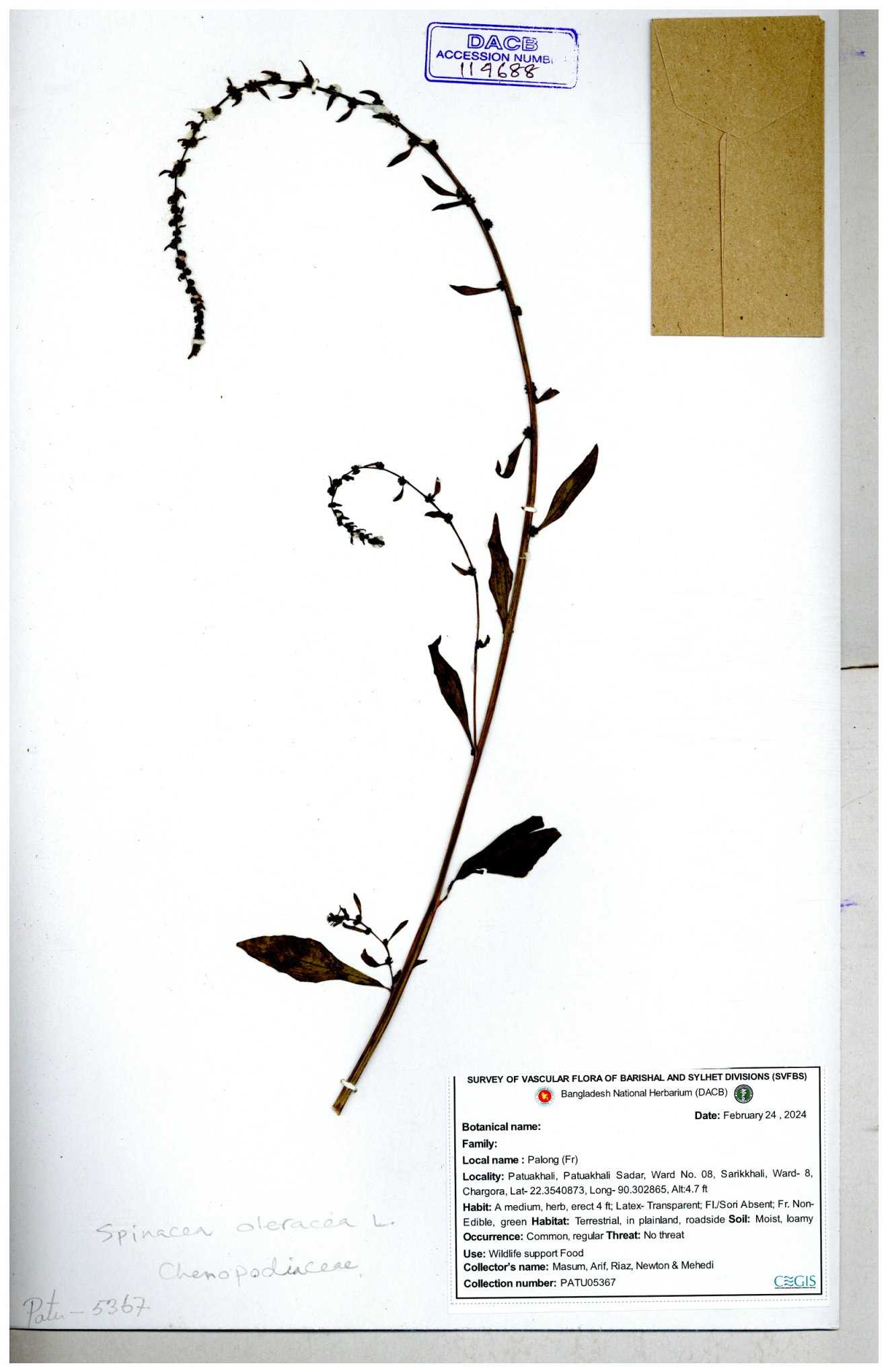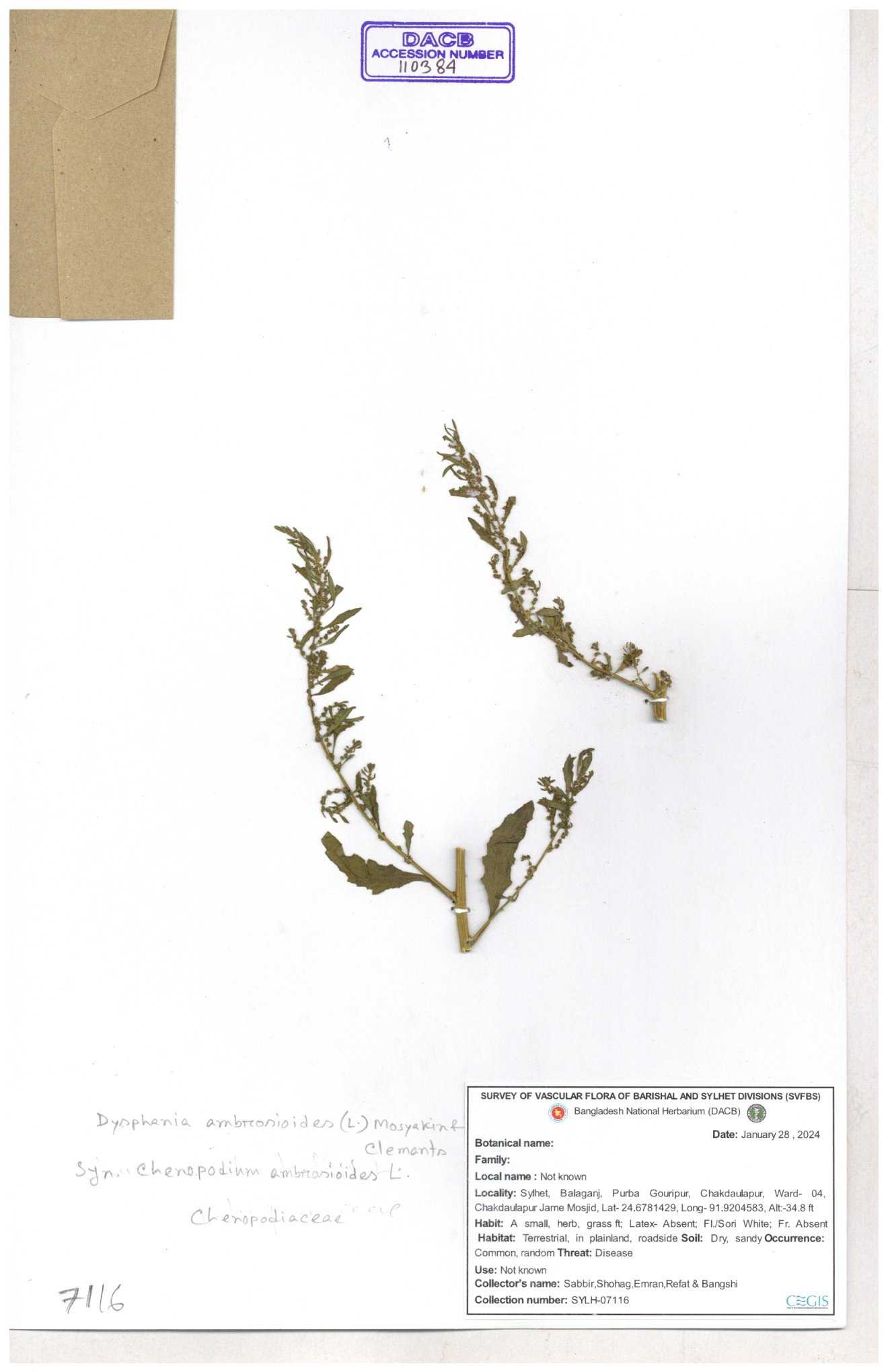 | 88156 | Chenopodiaceae | Chenopodium album (L.) | Dr. M. Sultana | DMS-3580 23-03-2021 |