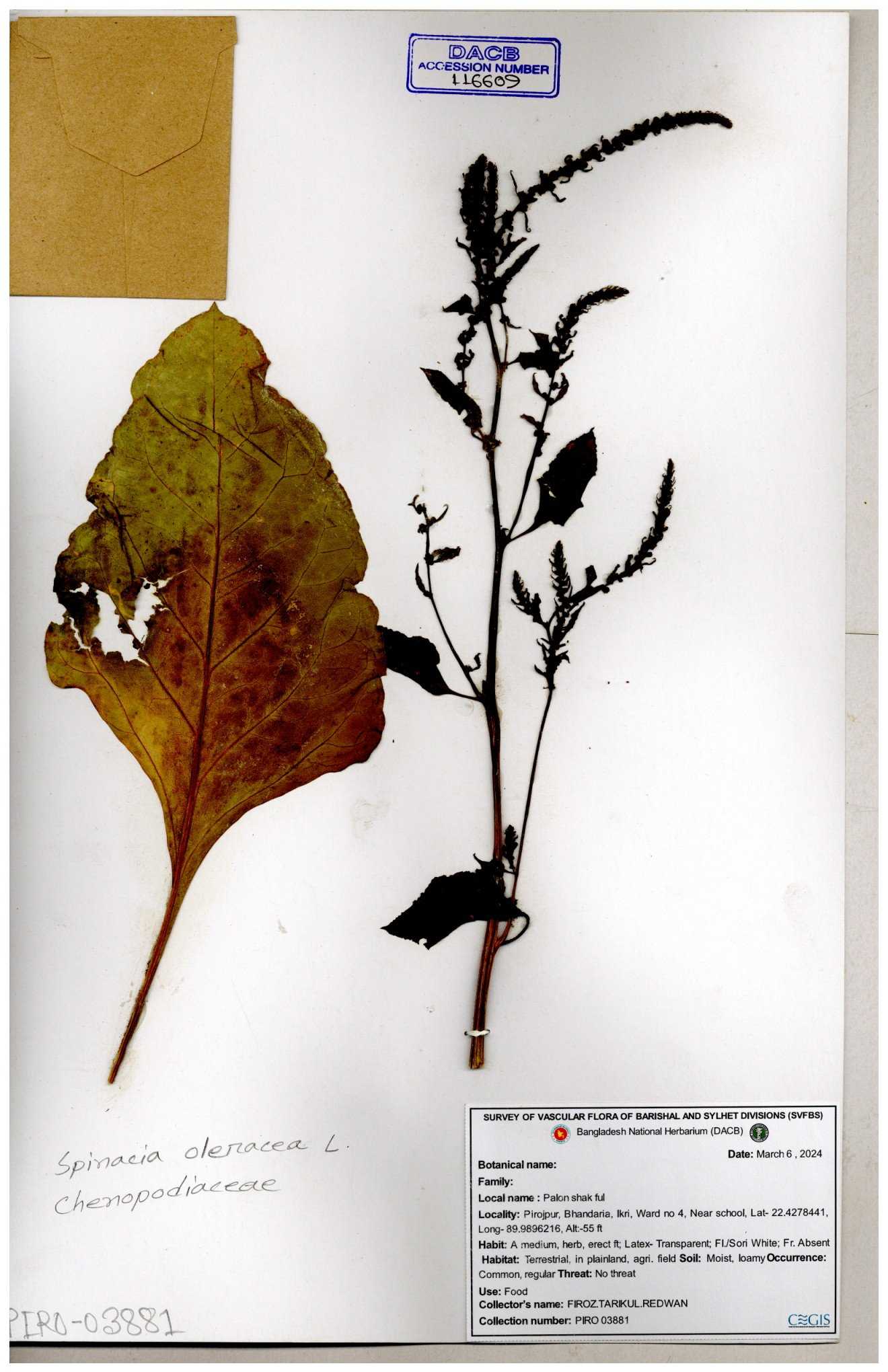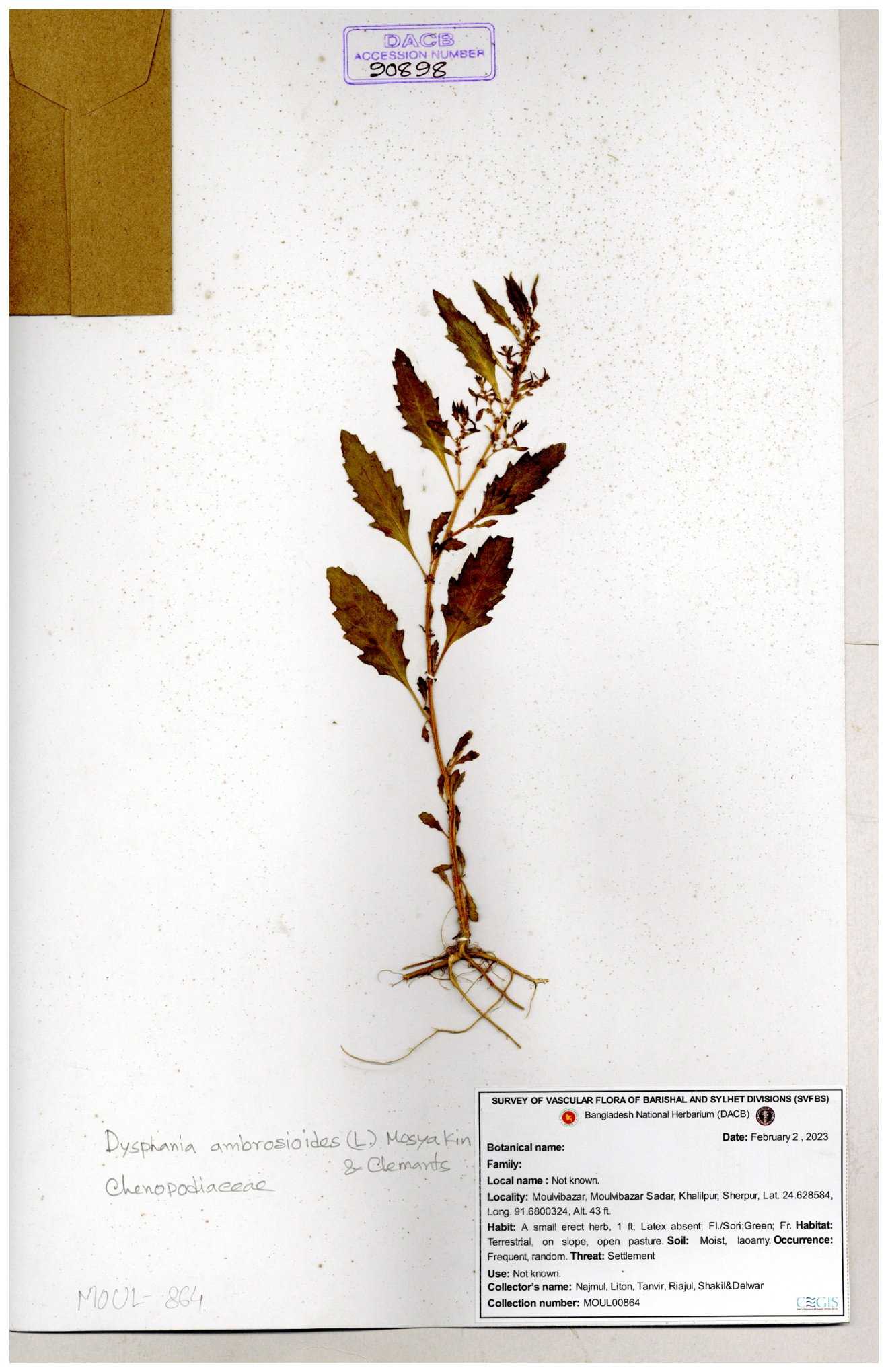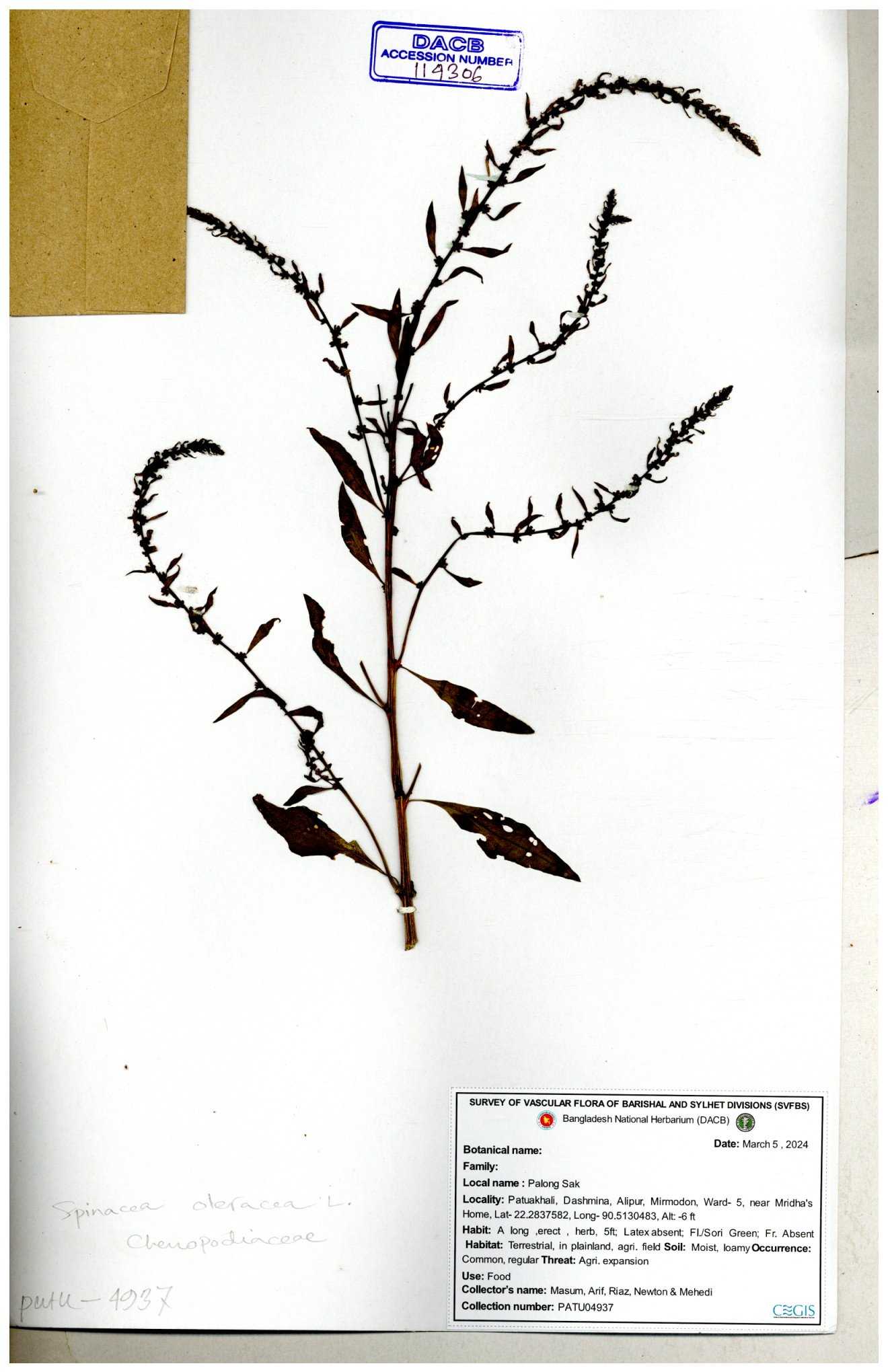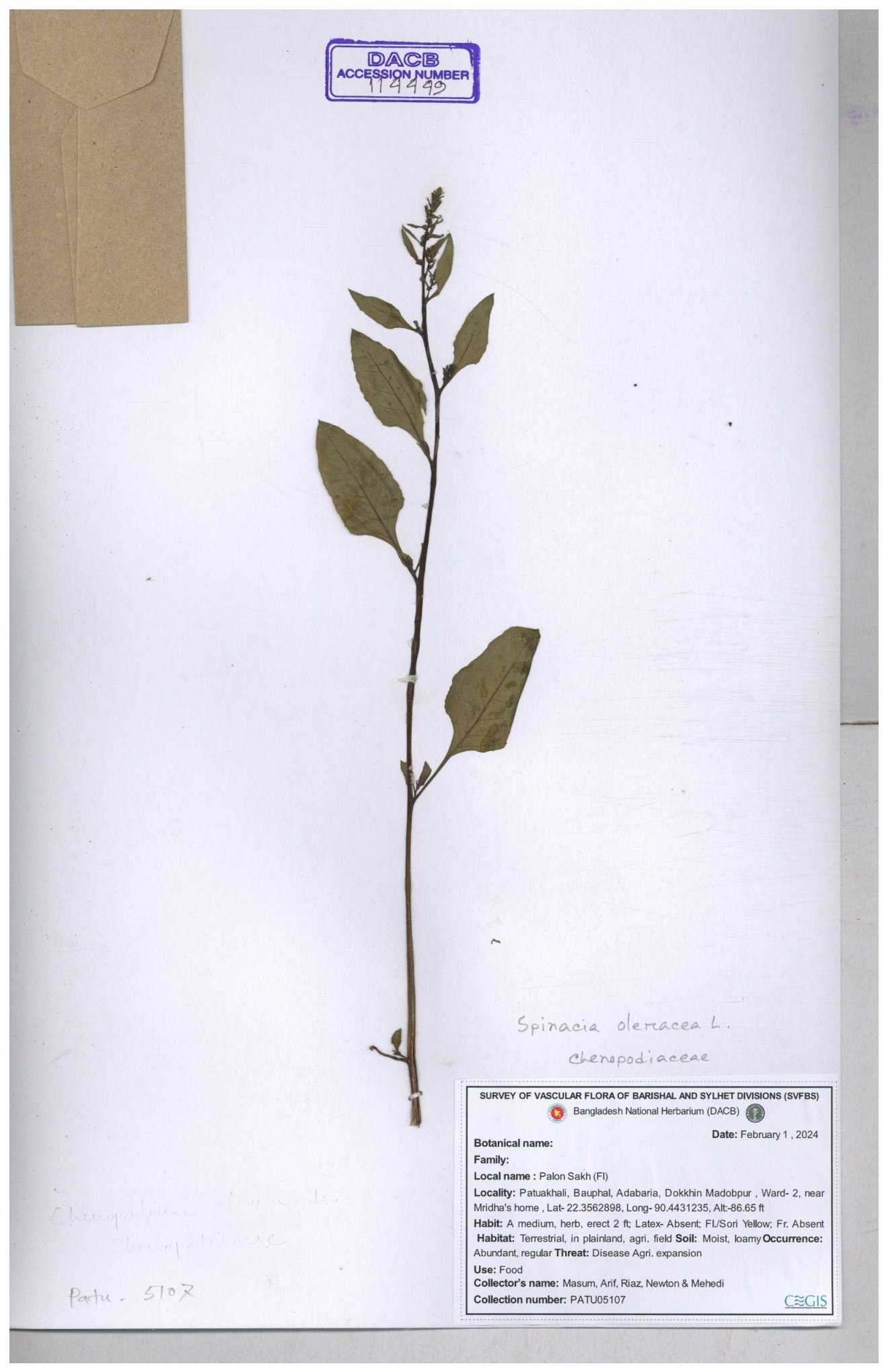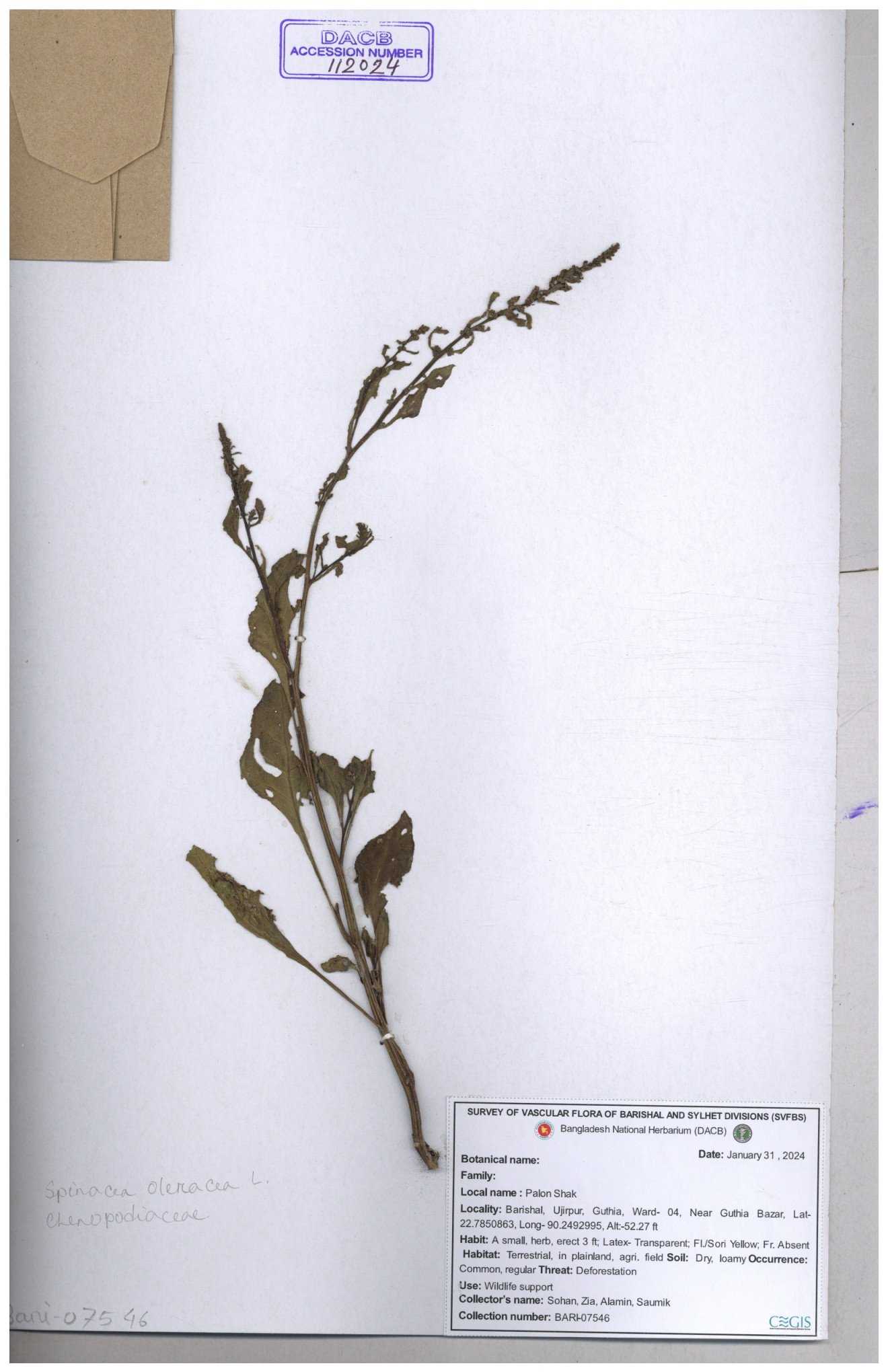 | 88156 | Chenopodiaceae | Chenopodium album (L.) | Dr. M. Sultana | DMS-3580 23-03-2021 |