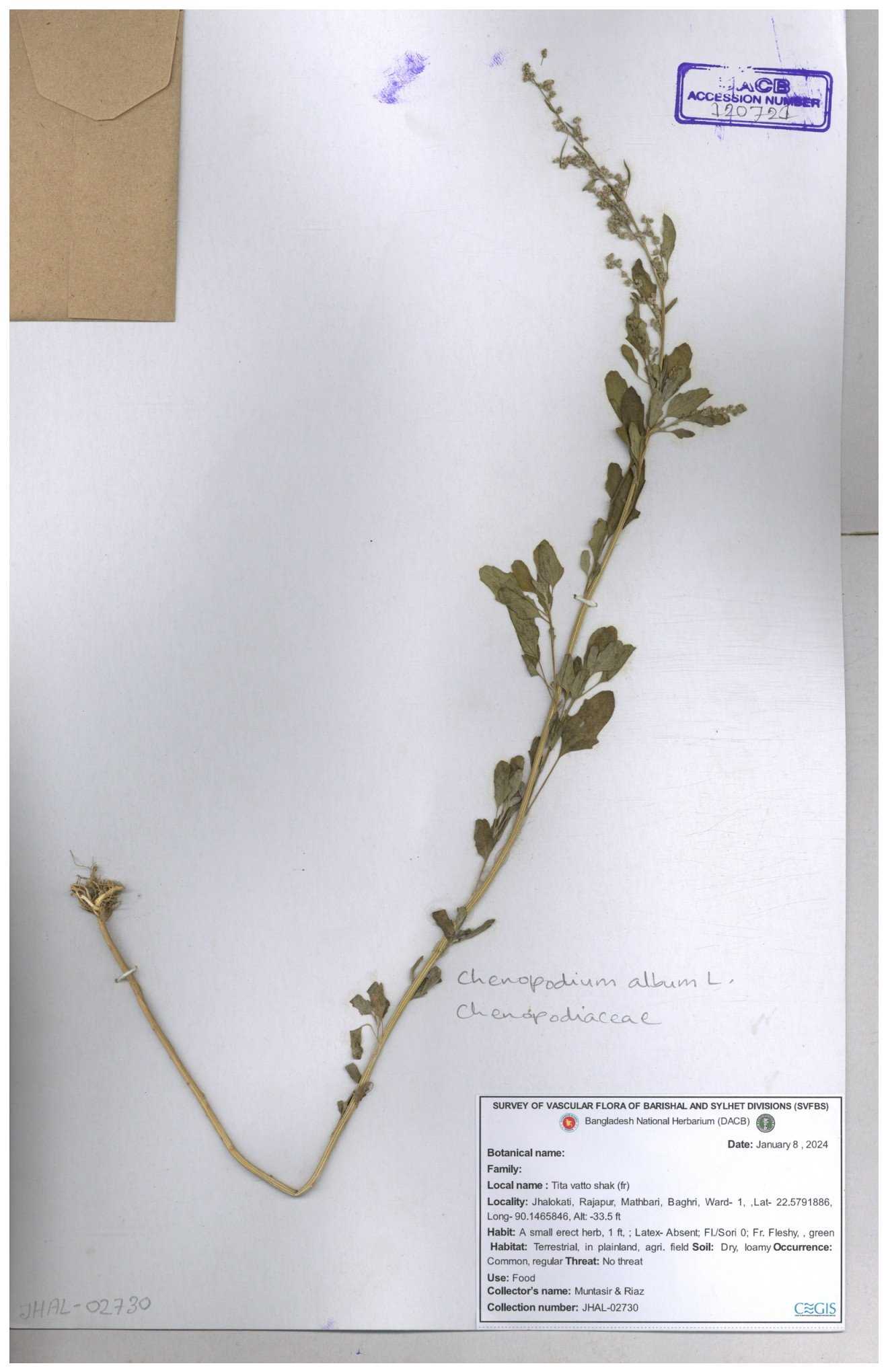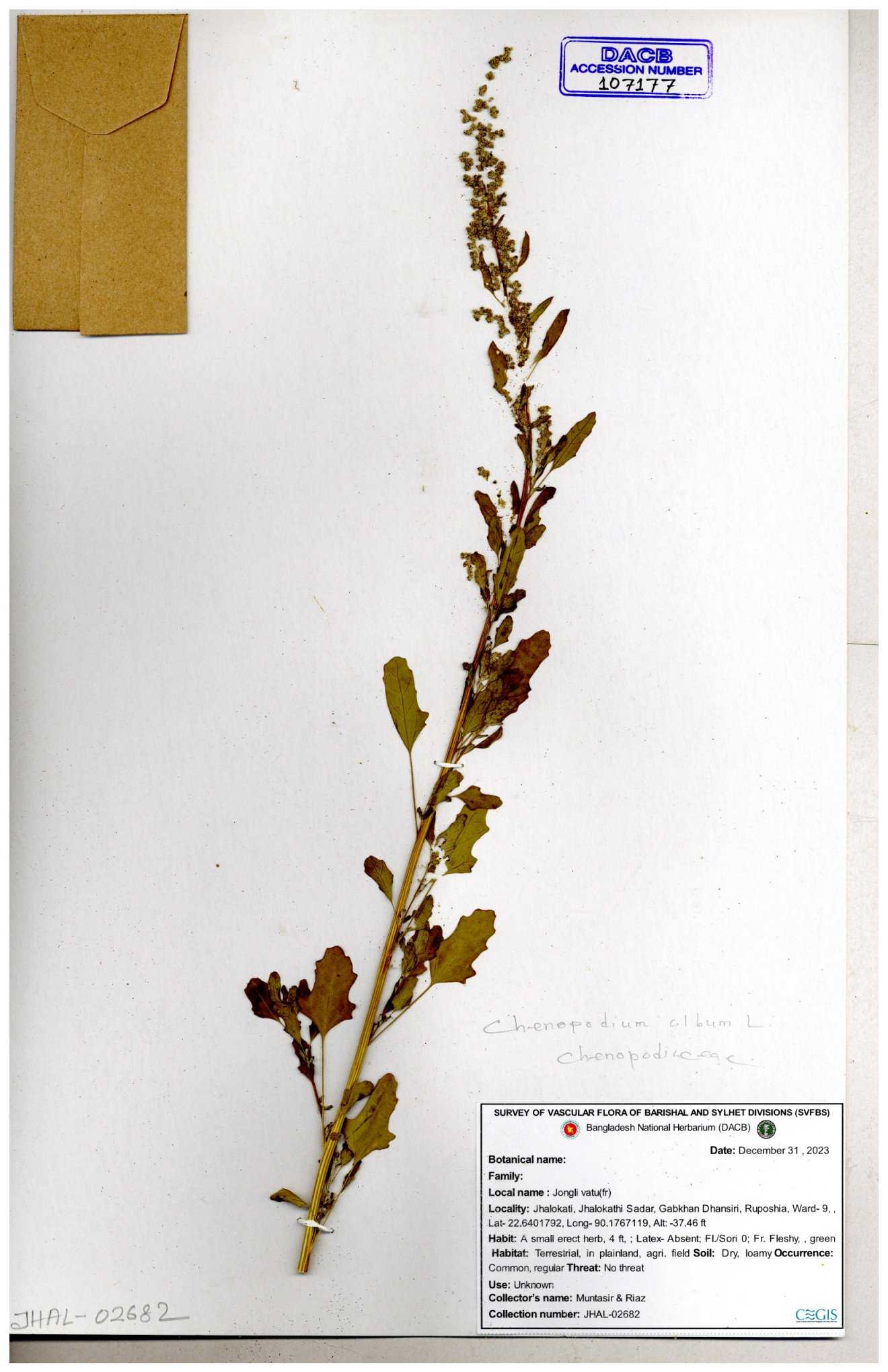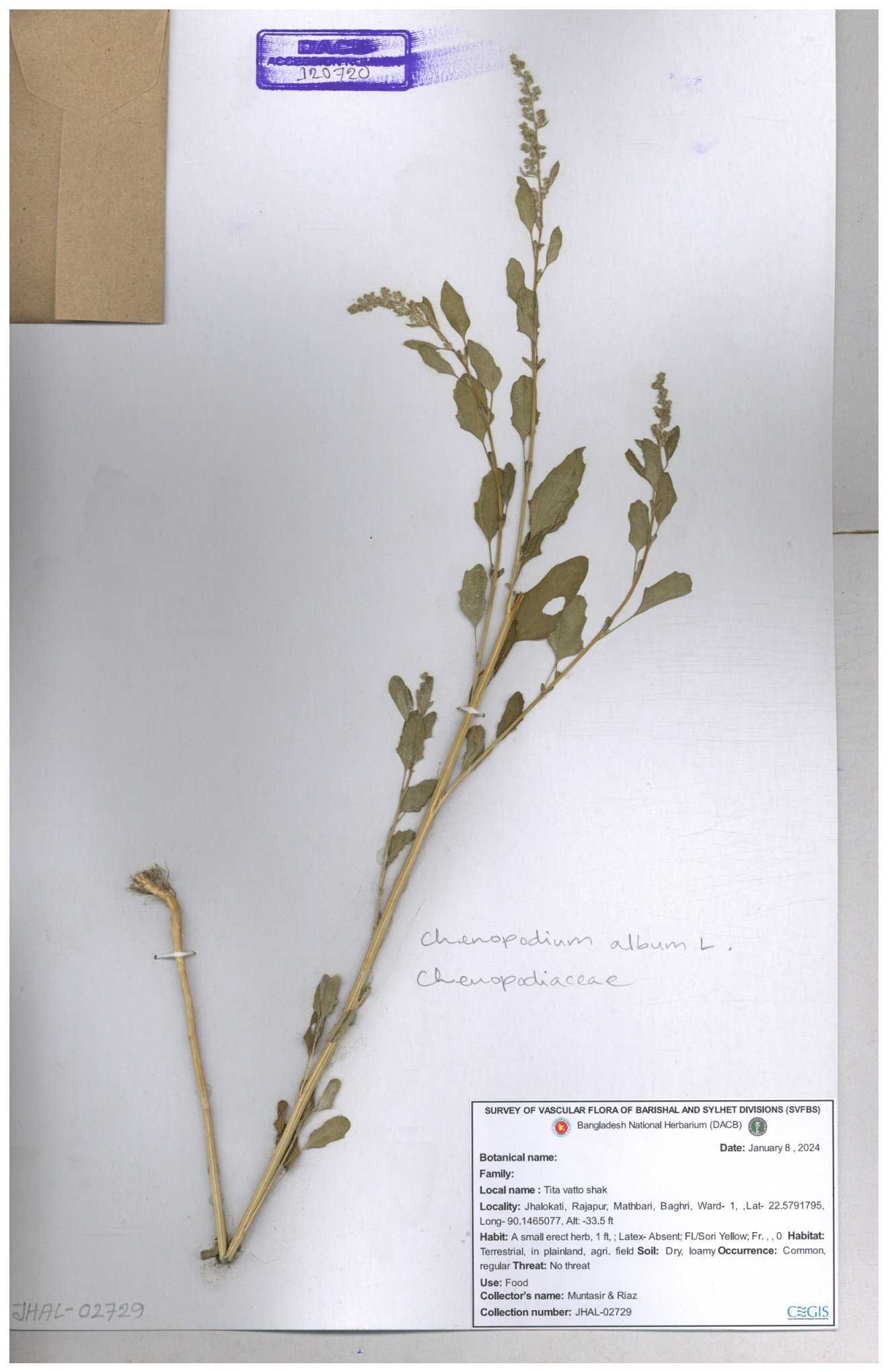 | 66941 | Chenopodiaceae | Chenopodium album | Joyanta, Mominur, Kamrul & Suborno | JCR-4994 17-04-2017 |