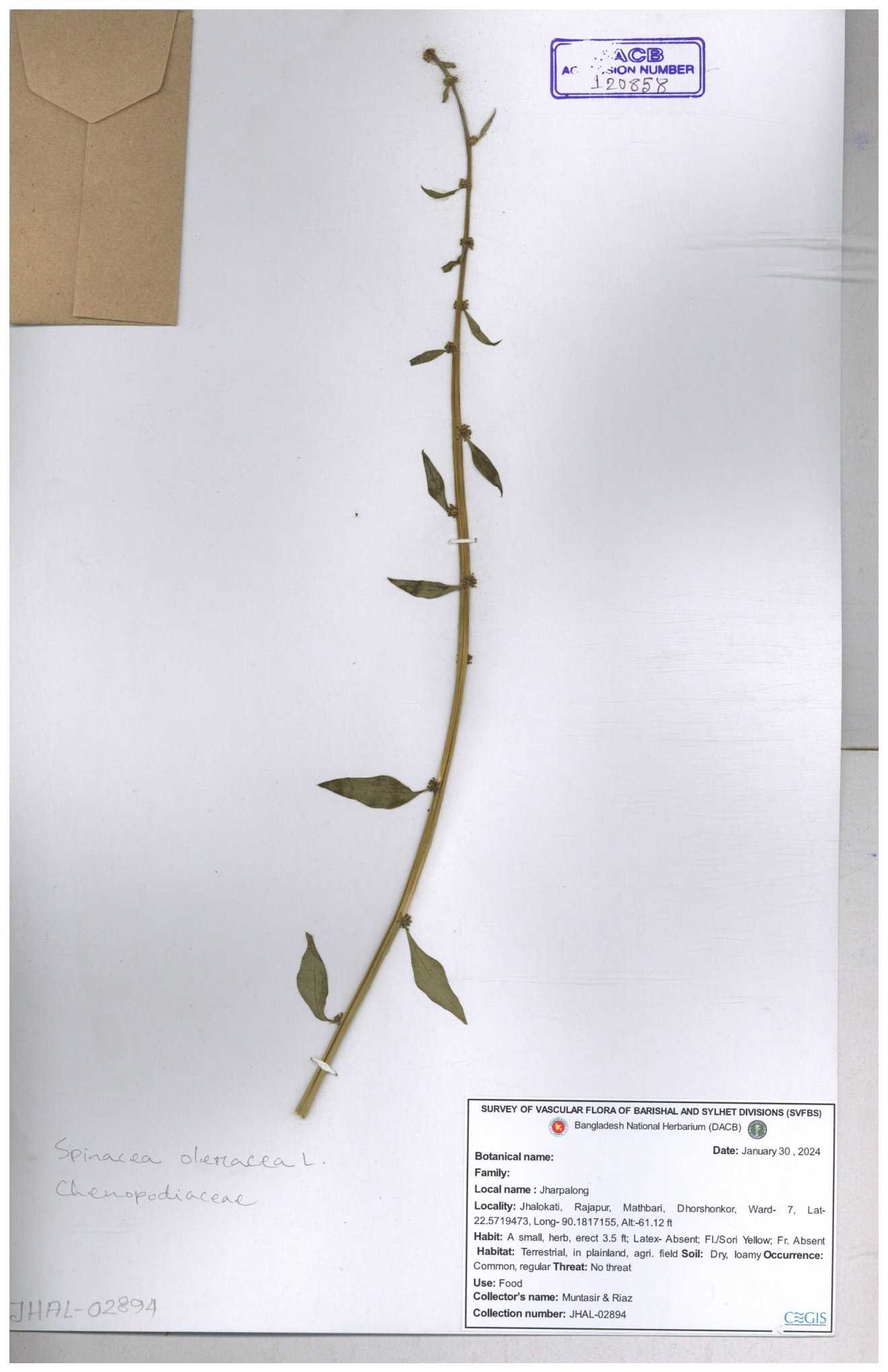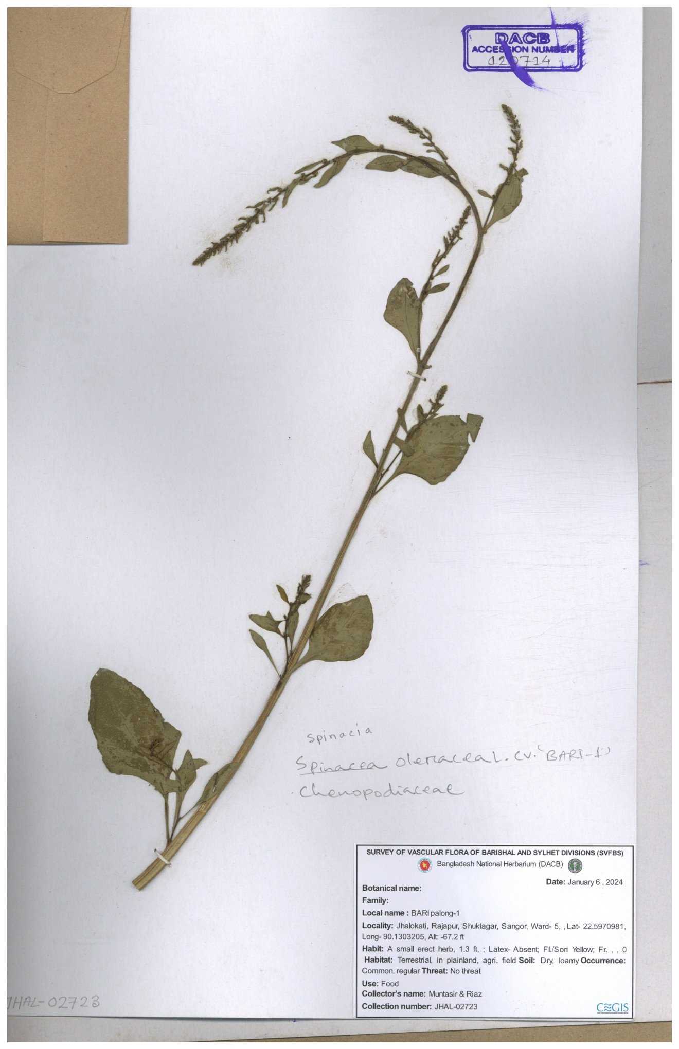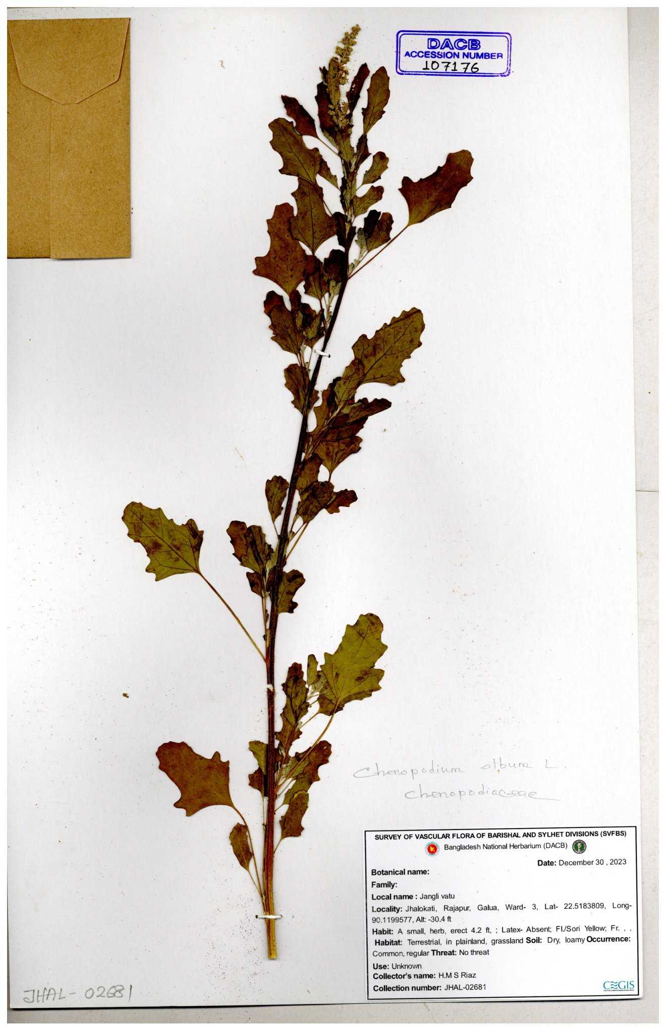 | 66941 | Chenopodiaceae | Chenopodium album | Joyanta, Mominur, Kamrul & Suborno | JCR-4994 17-04-2017 |