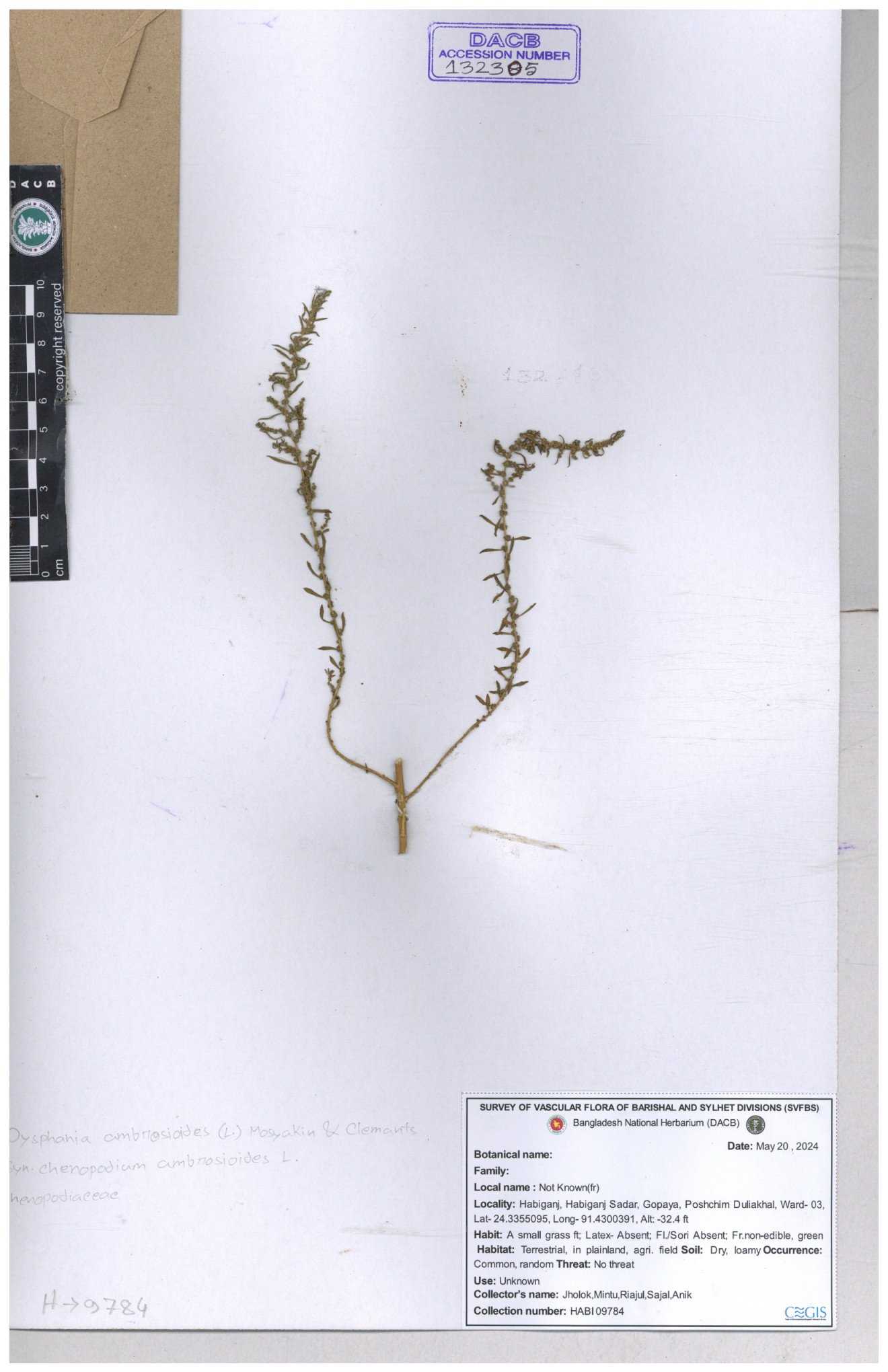 | 132305 | Chenopodiaceae | Dysphania cmbrosioides | 30-11--0001 |