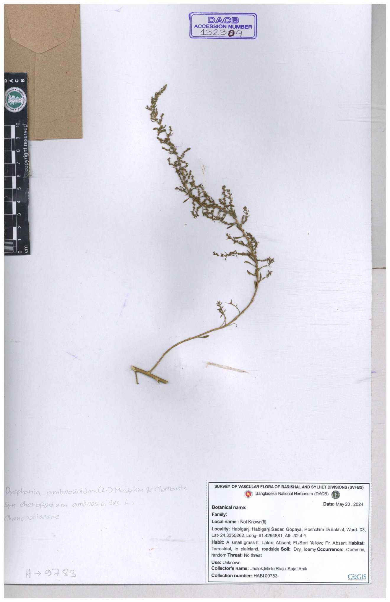 | 132304 | Chenopodiaceae | Dysphania ambrosioides | 30-11--0001 |