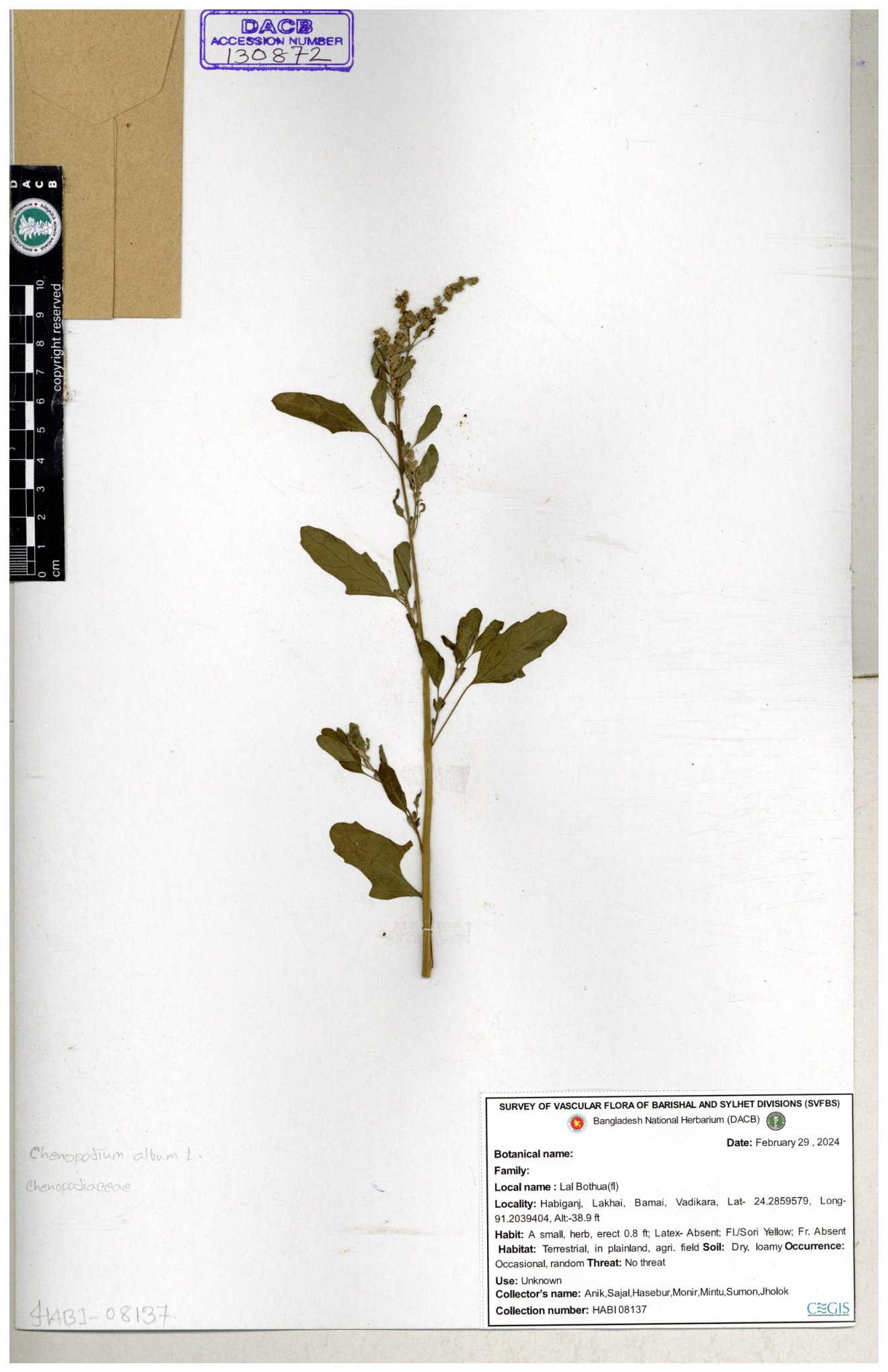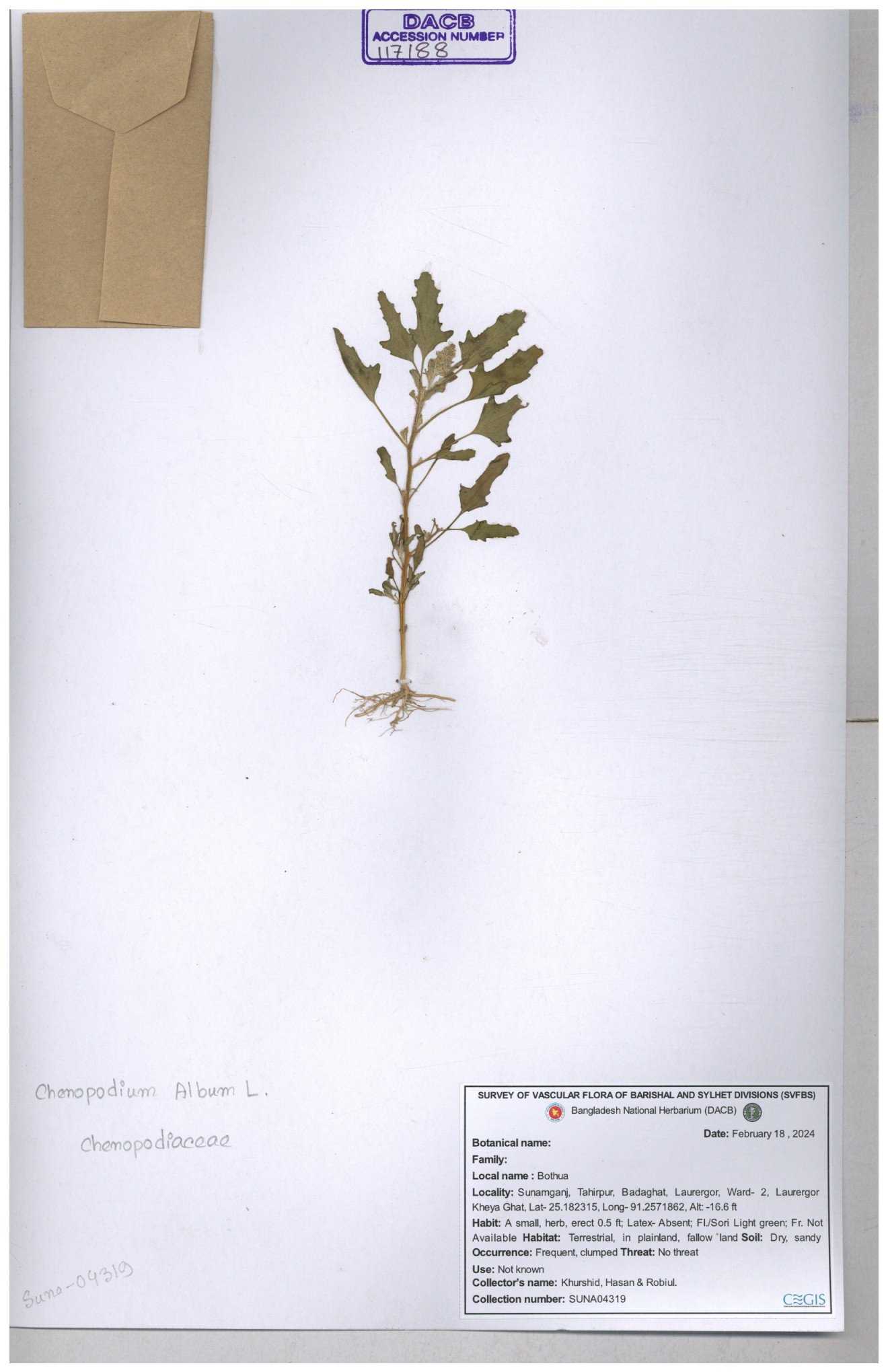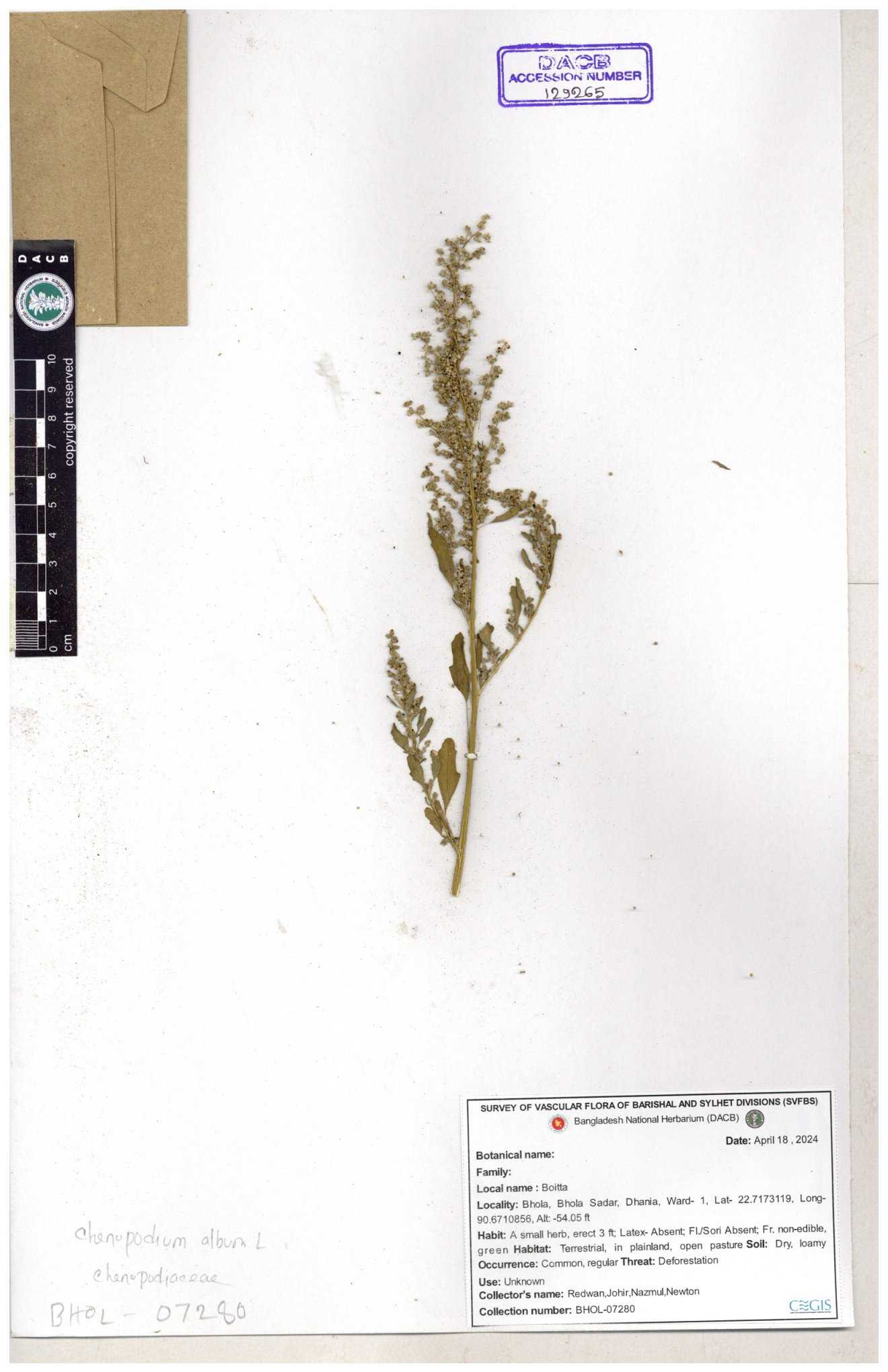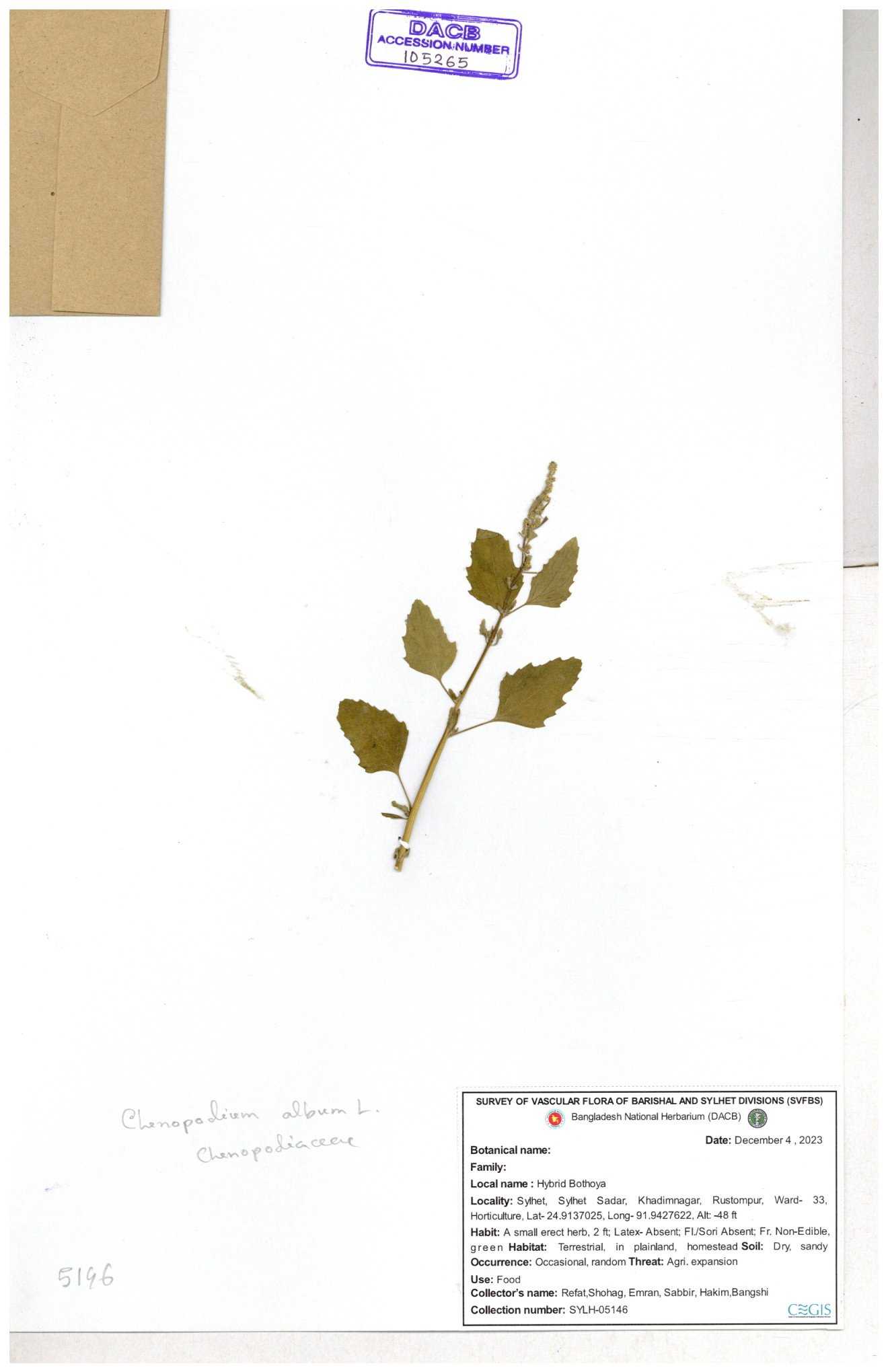 | 66974 | Chenopodiaceae | Chenopodium album | Sadhon Kumar Chakma | SKC-290 19-04-2017 |