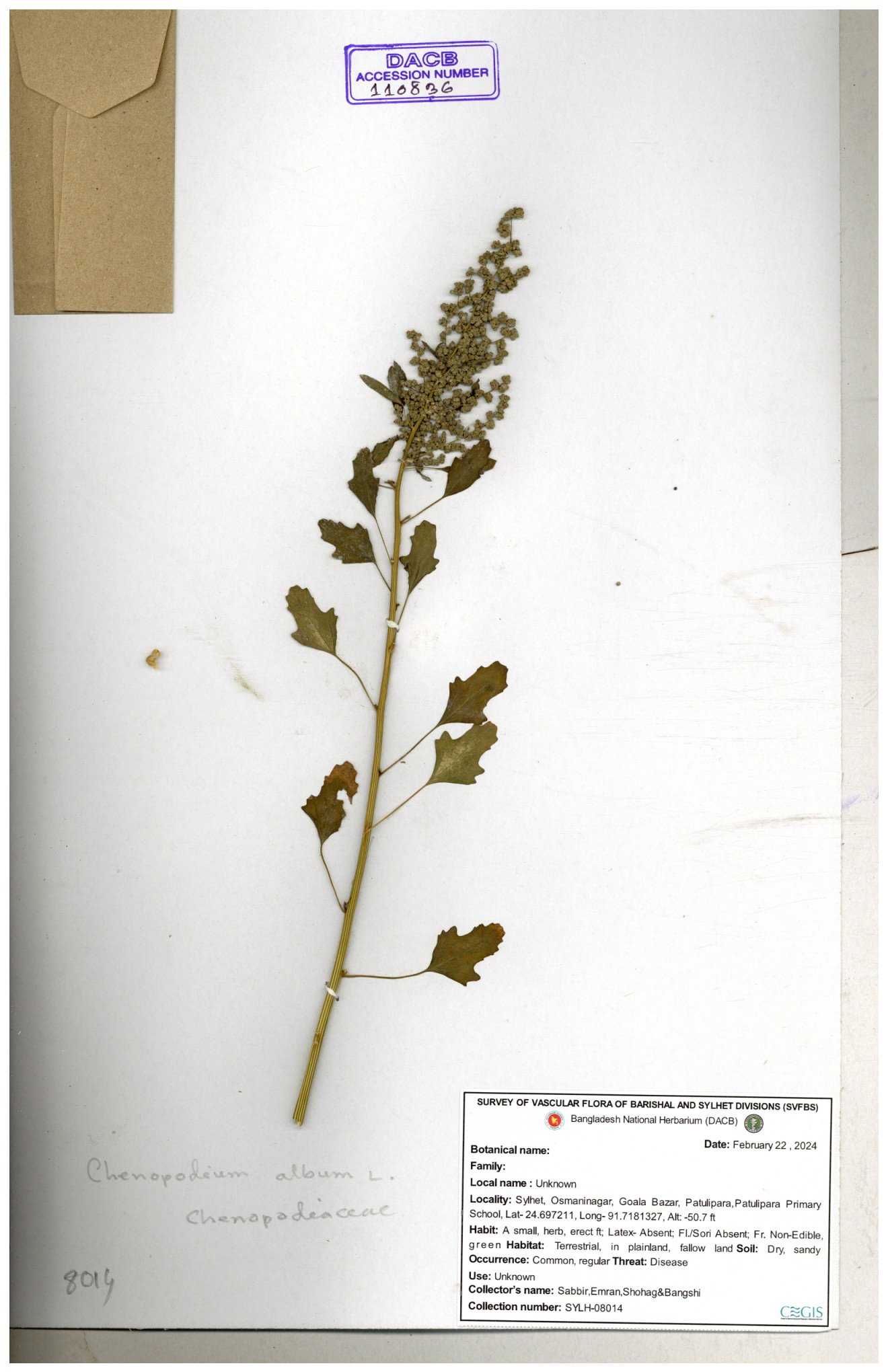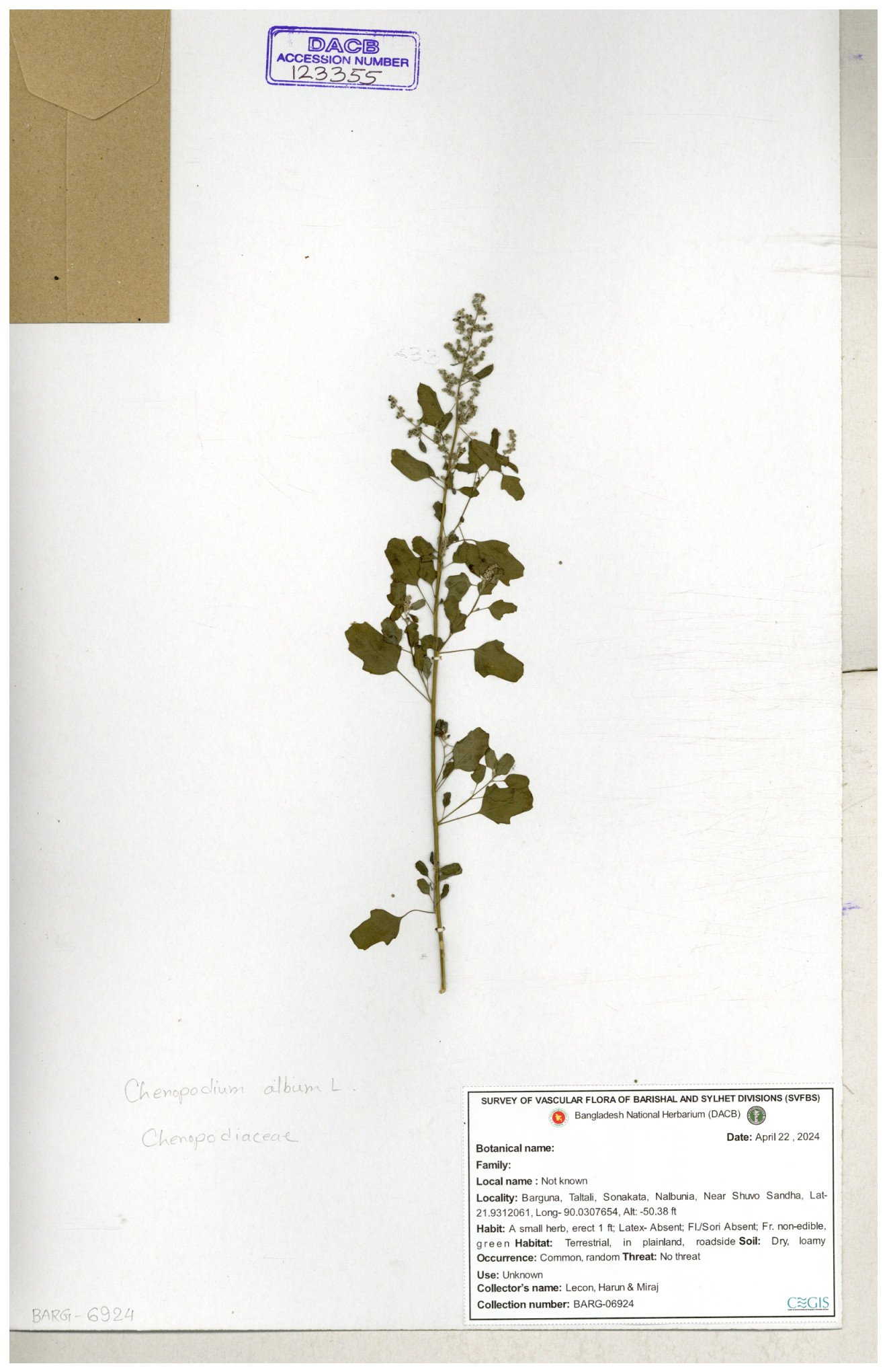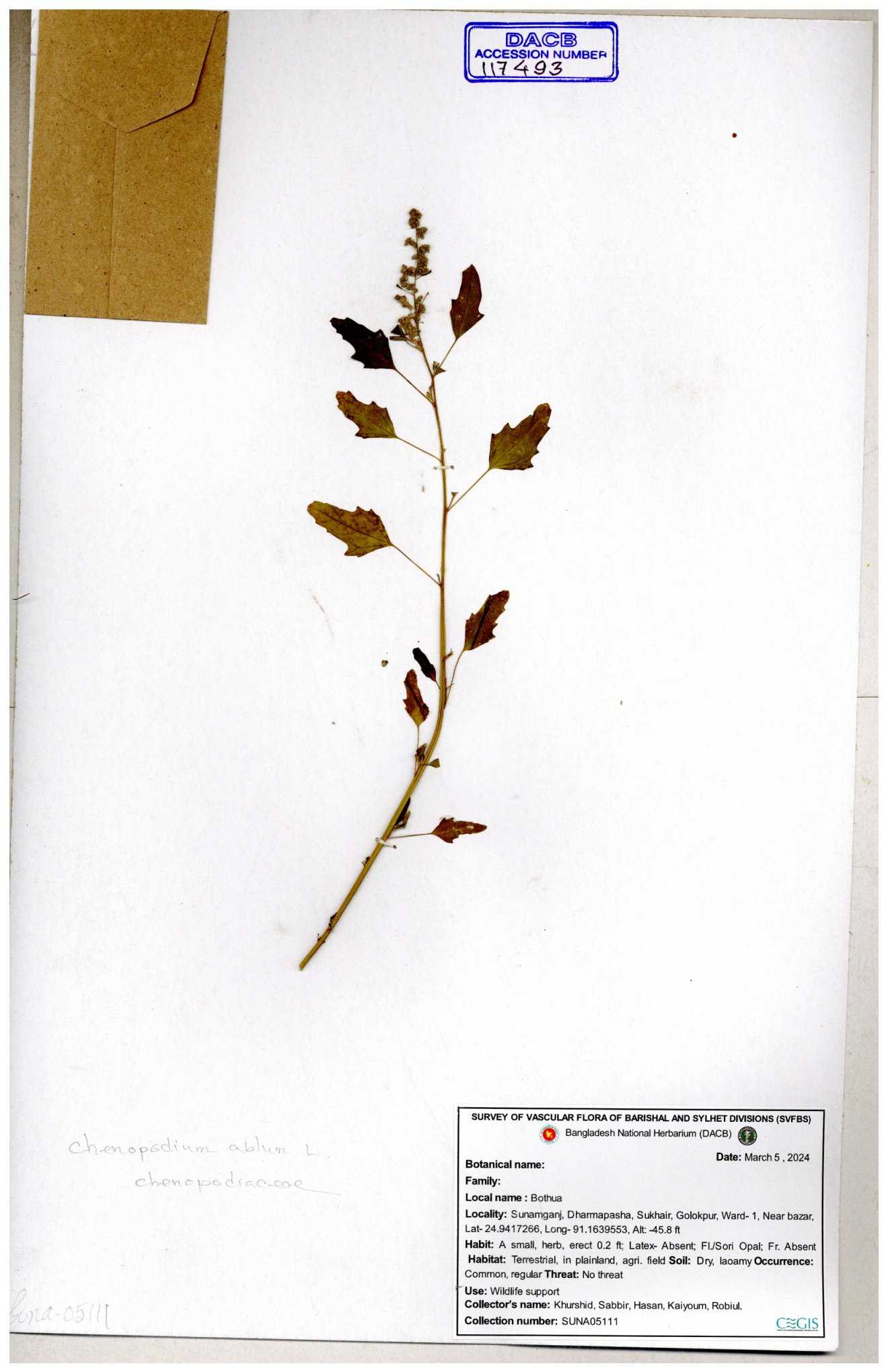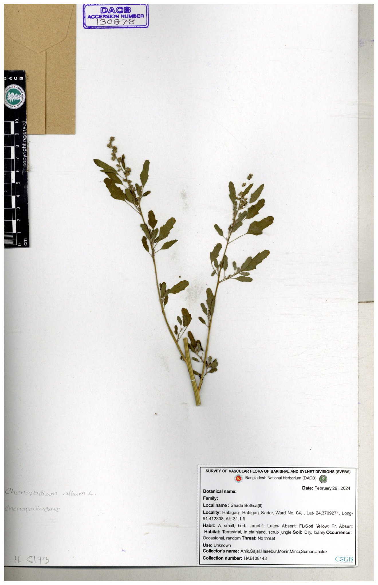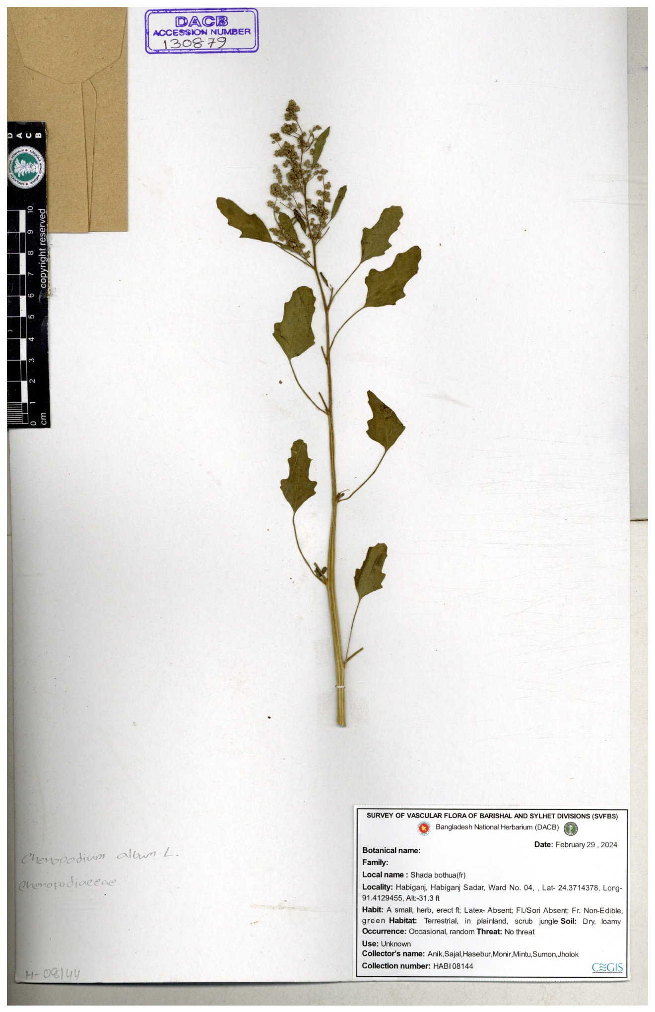 | 66974 | Chenopodiaceae | Chenopodium album | Sadhon Kumar Chakma | SKC-290 19-04-2017 |