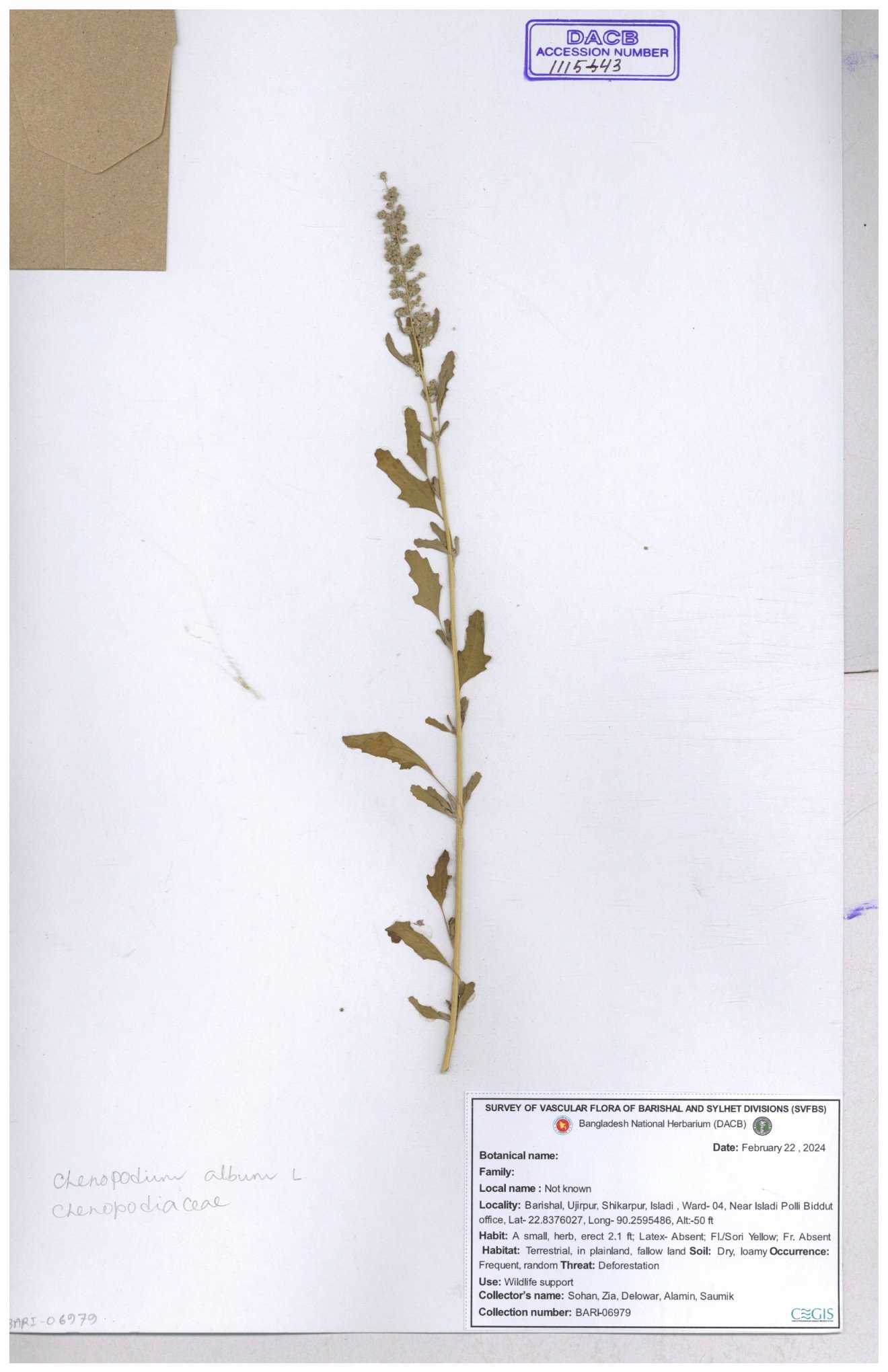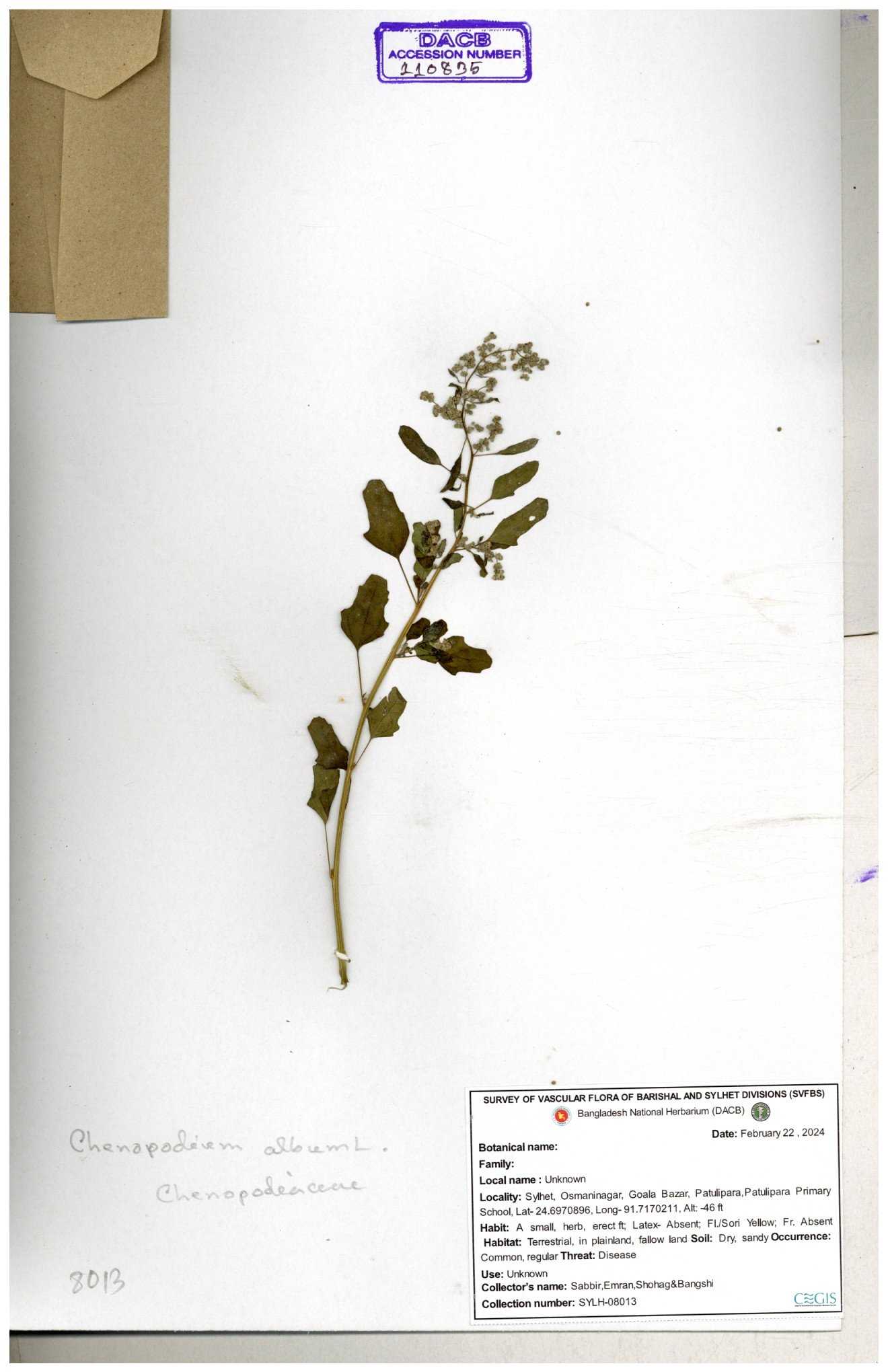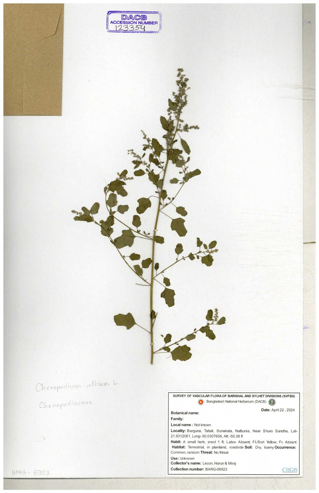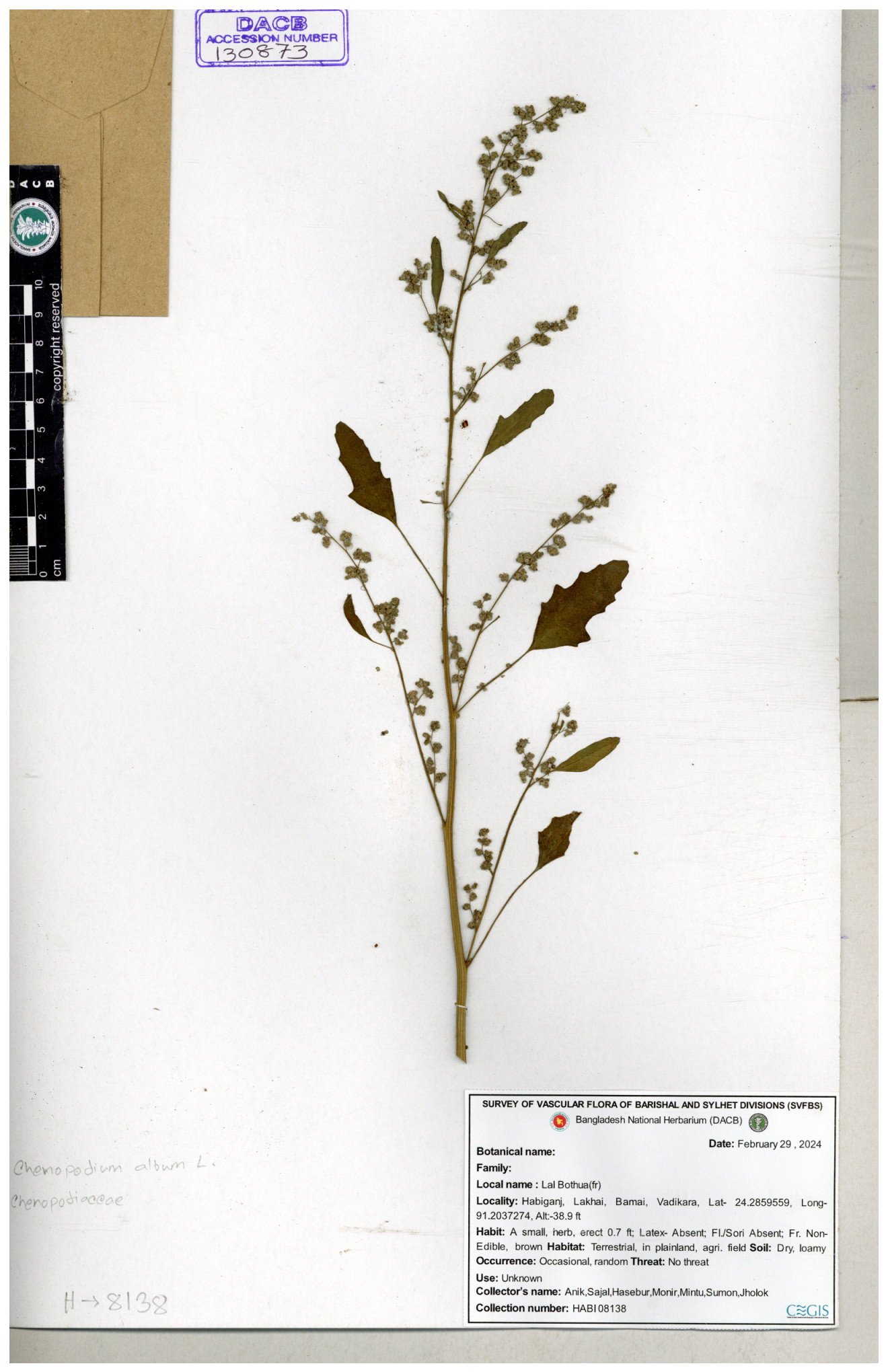 | 66974 | Chenopodiaceae | Chenopodium album | Sadhon Kumar Chakma | SKC-290 19-04-2017 |