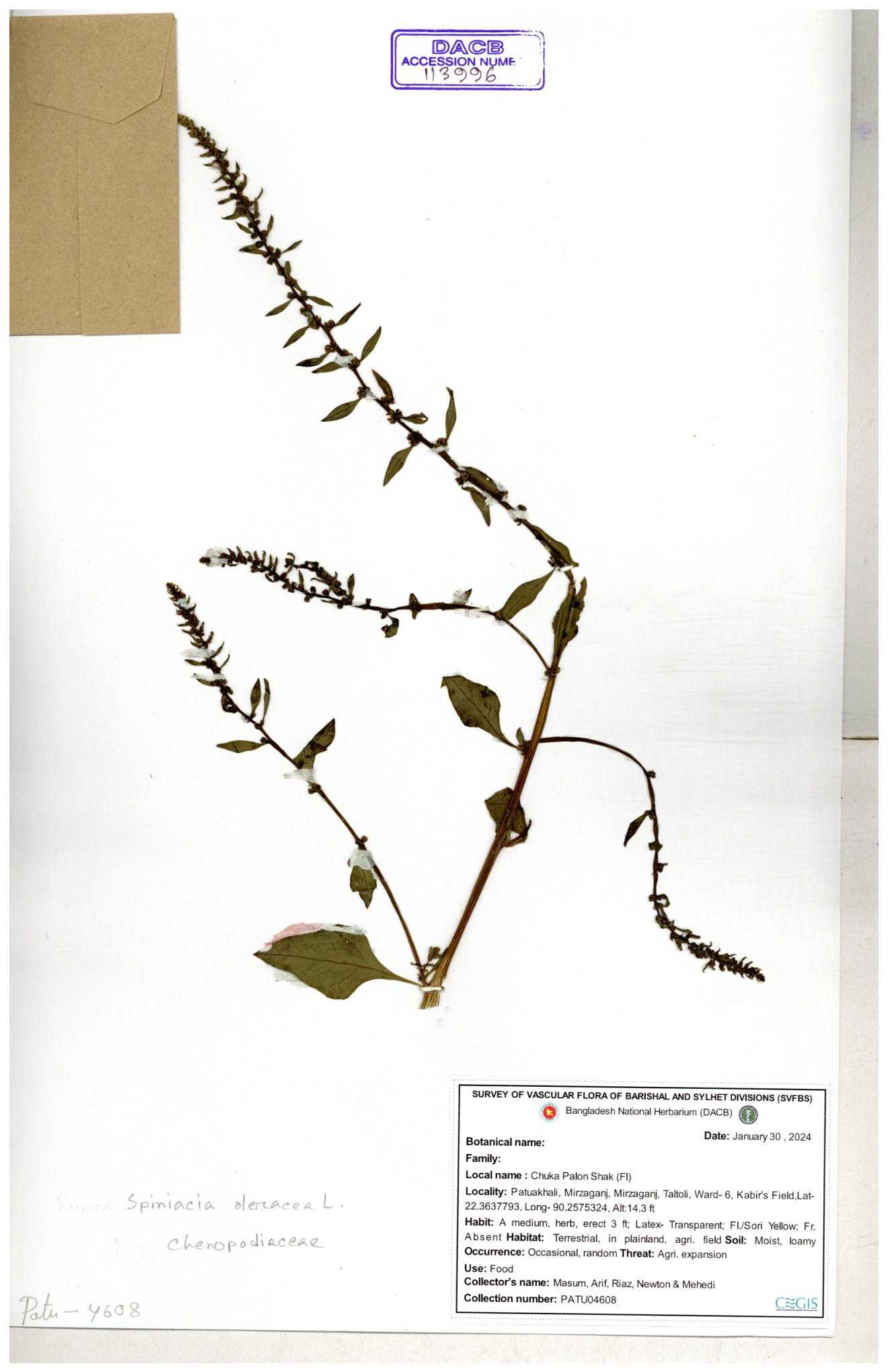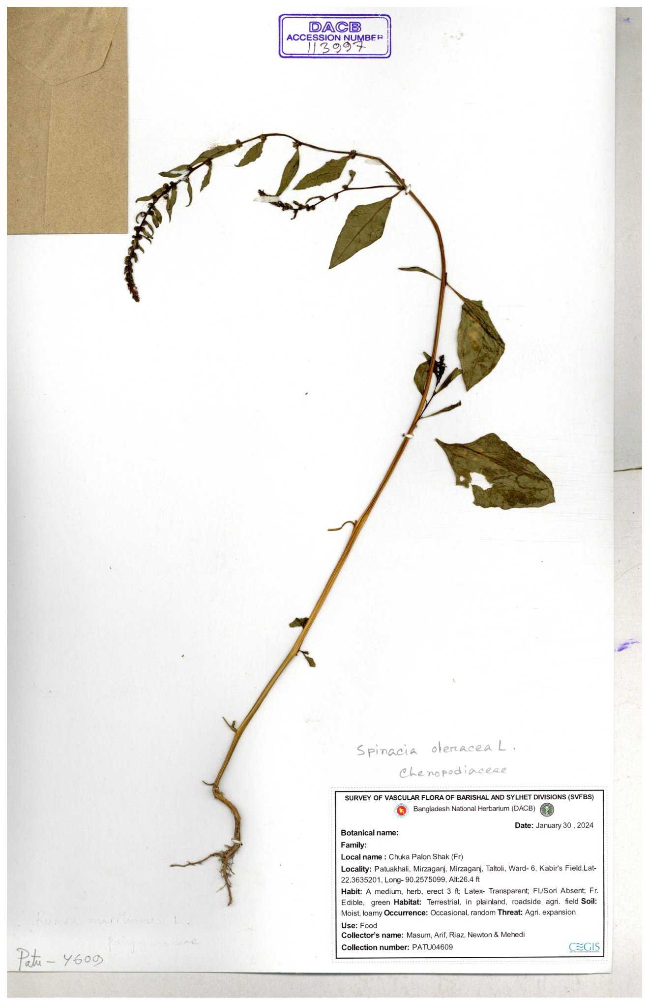 | 113996 | Chenopodiaceae | Spinacea oleracea | 30-11--0001 |