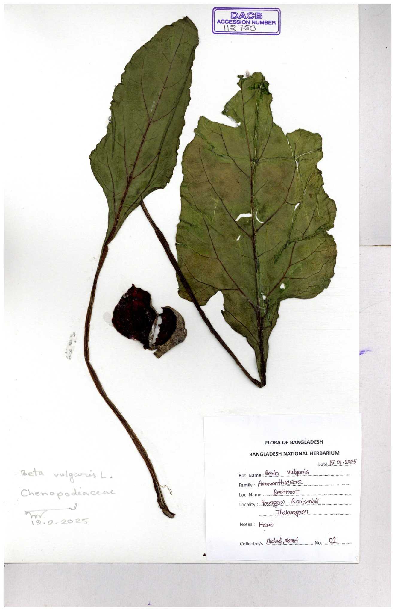 | 112753 | Chenopodiaceae | Beta vulgoris | 30-11--0001 |