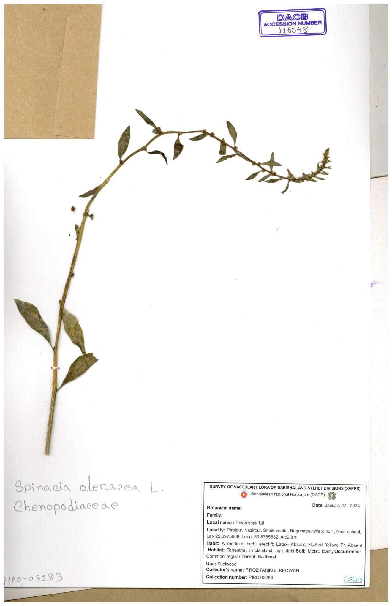 | 116048 | Chenopodiaceae | Spinacea oleracea | 30-11--0001 |