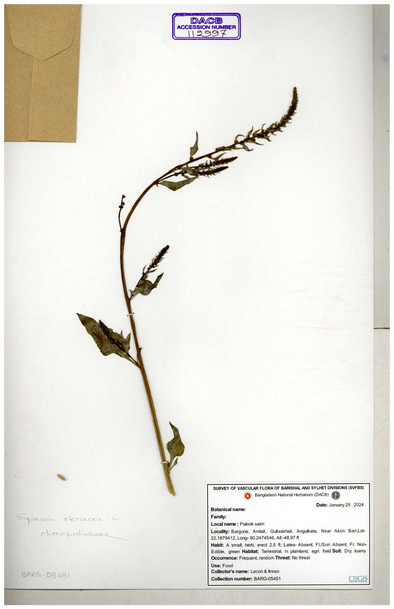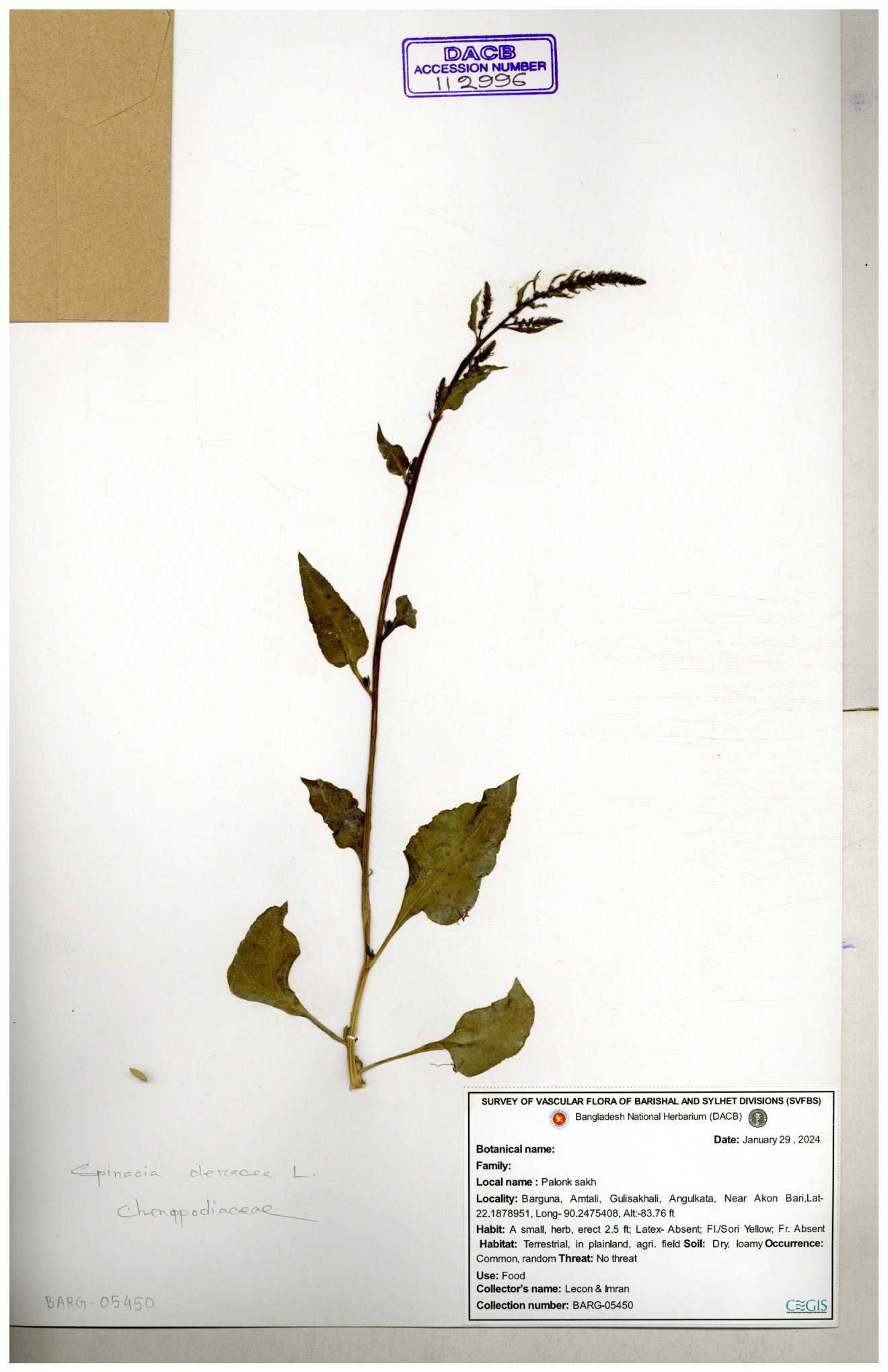 | 112996 | Chenopodiaceae | Spinacea oleracca | 30-11--0001 |