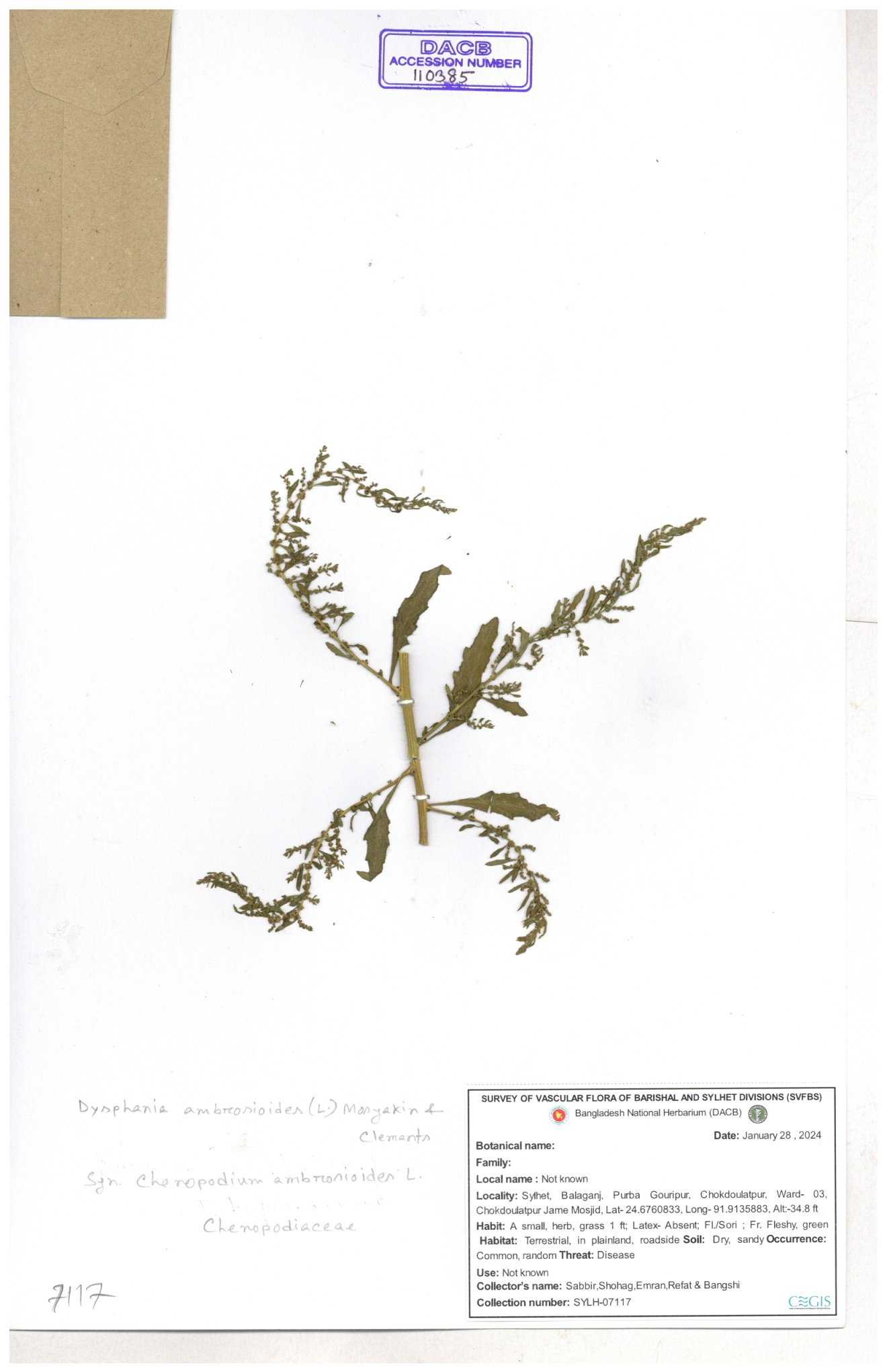 | 117509 | Chenopodiaceae | Chenopodium ambrosioises | 30-11--0001 |