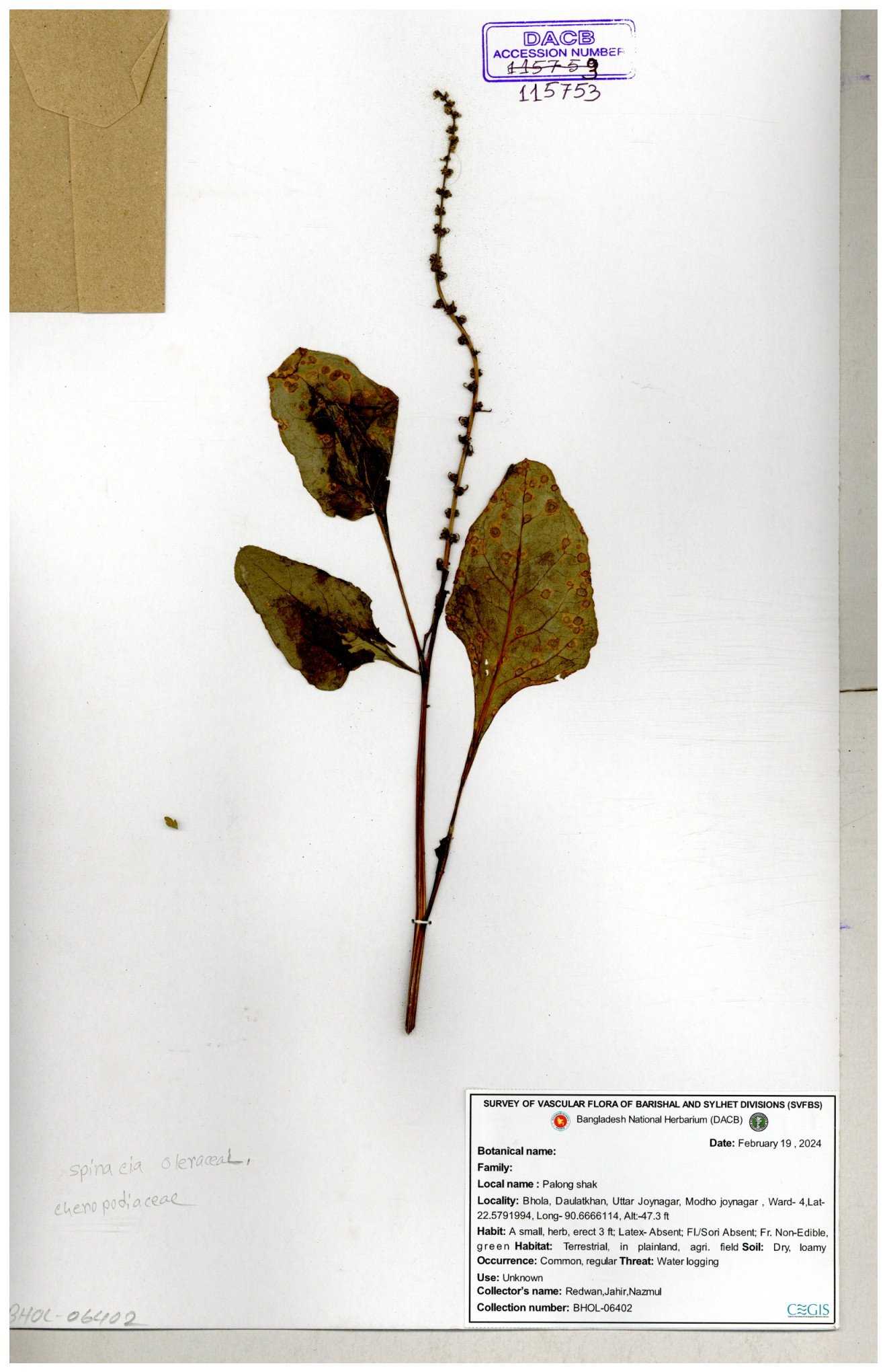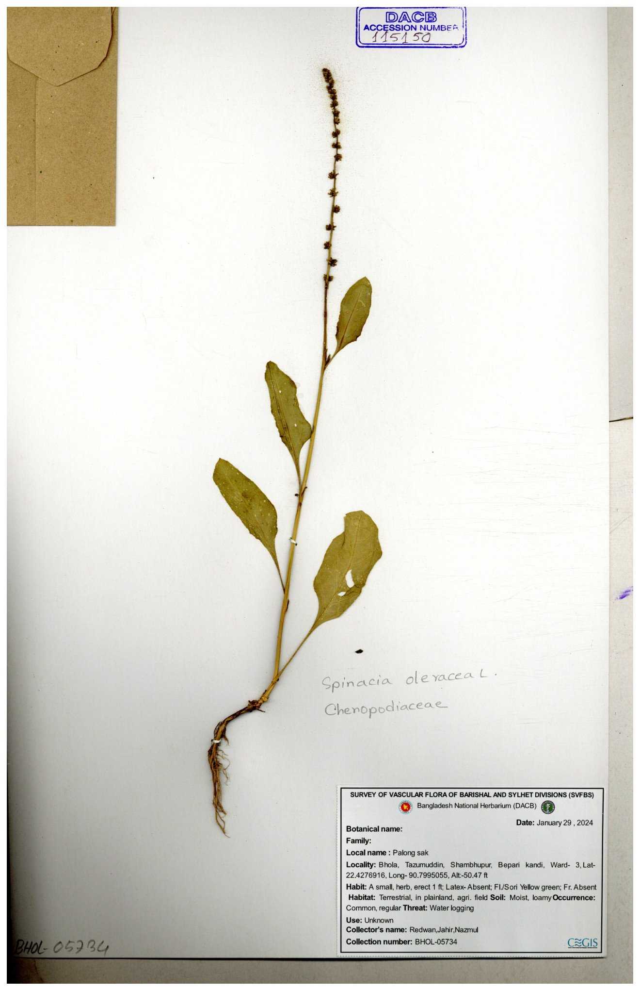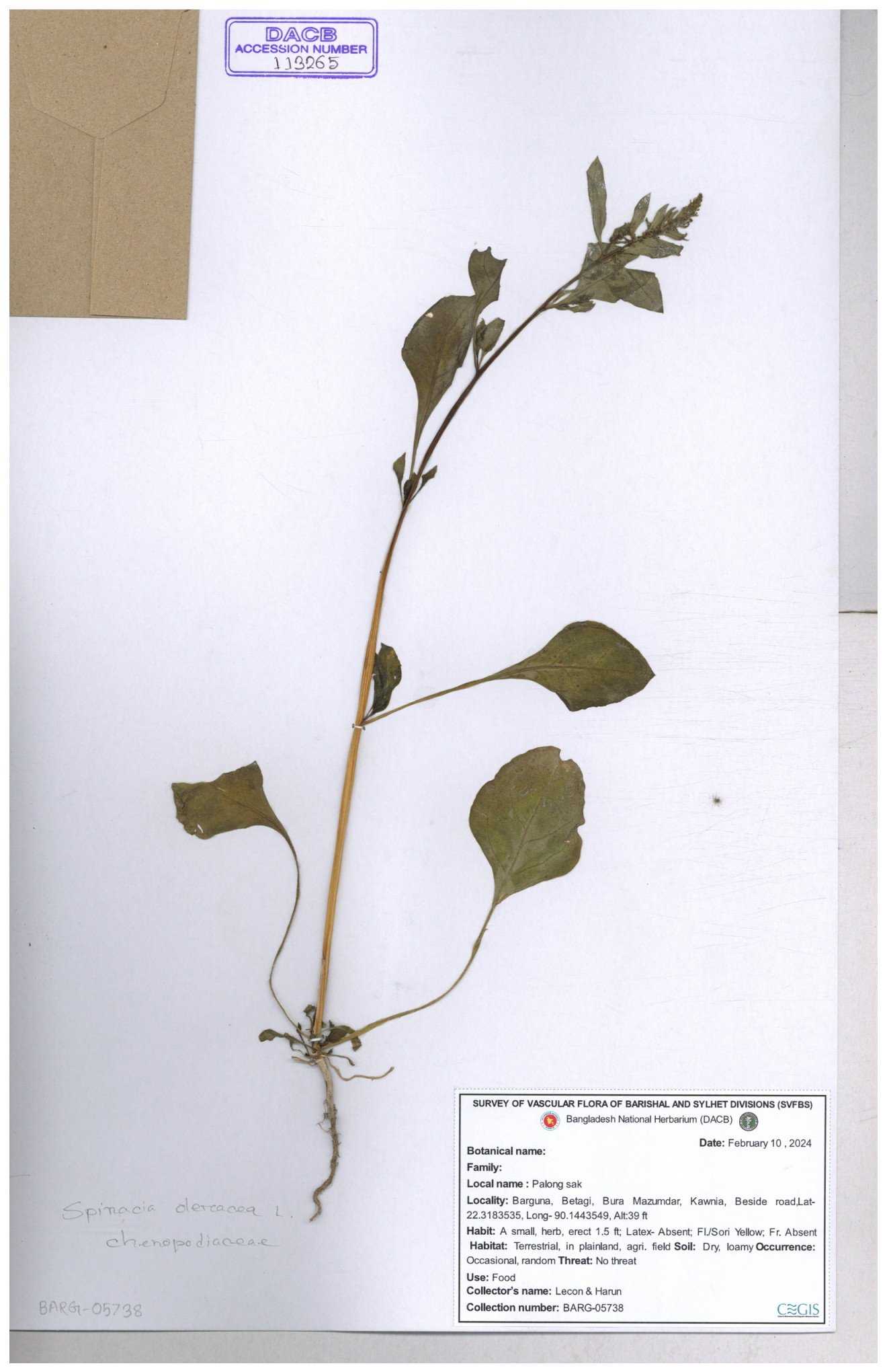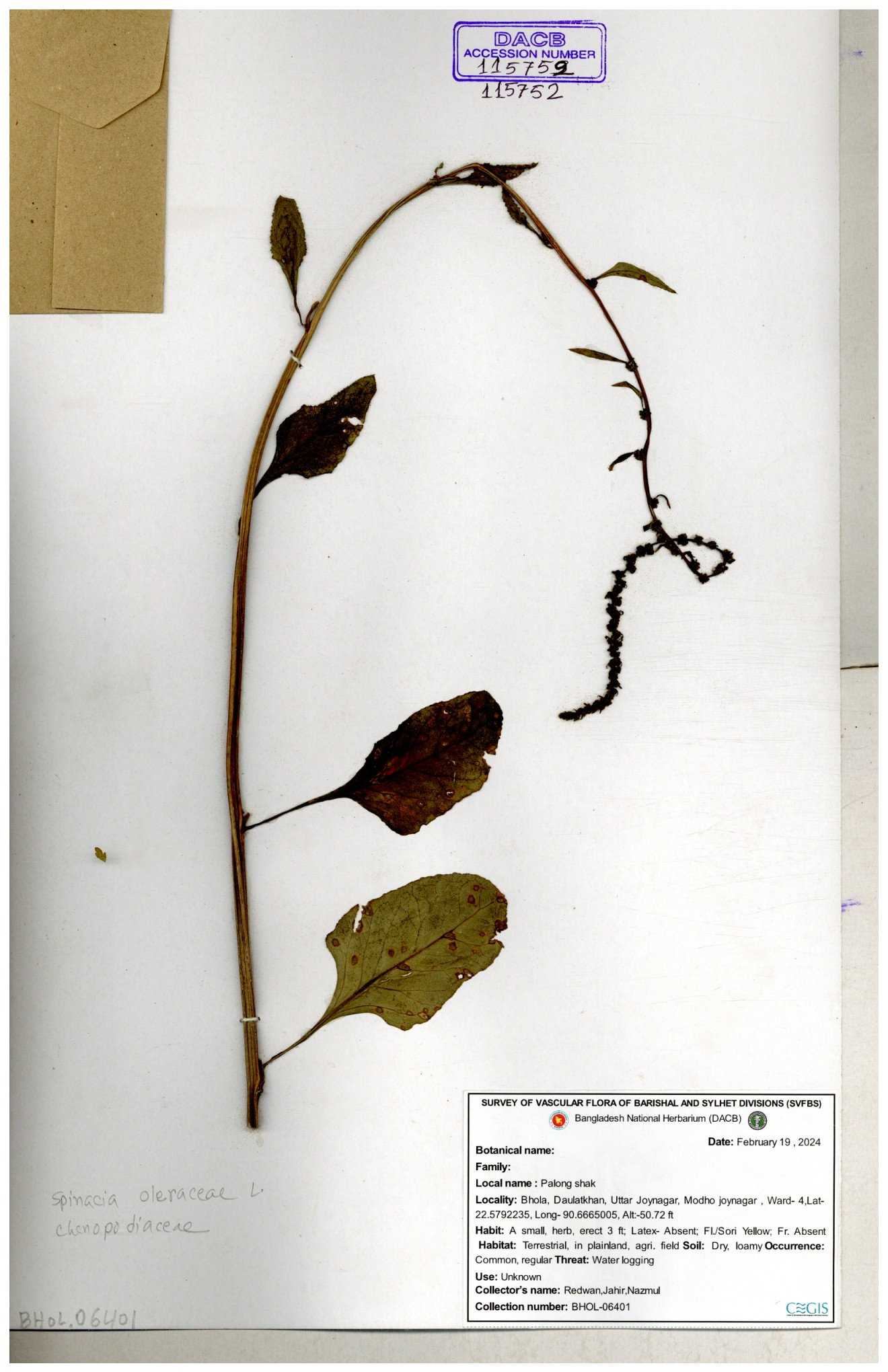 | 115752 | Chenopodiaceae | Spinacea oleracea | 30-11--0001 |