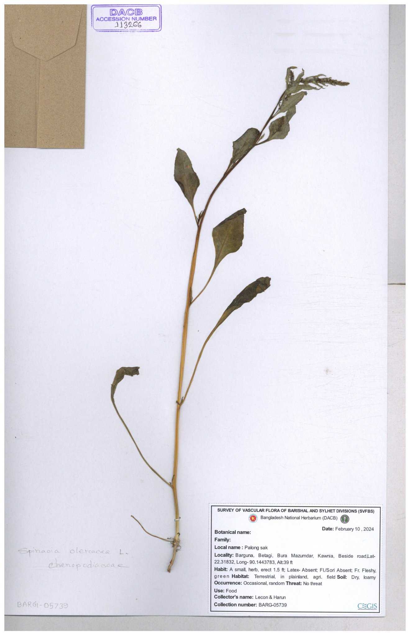 | 113266 | Chenopodiaceae | Spinacea oleracea | 30-11--0001 |