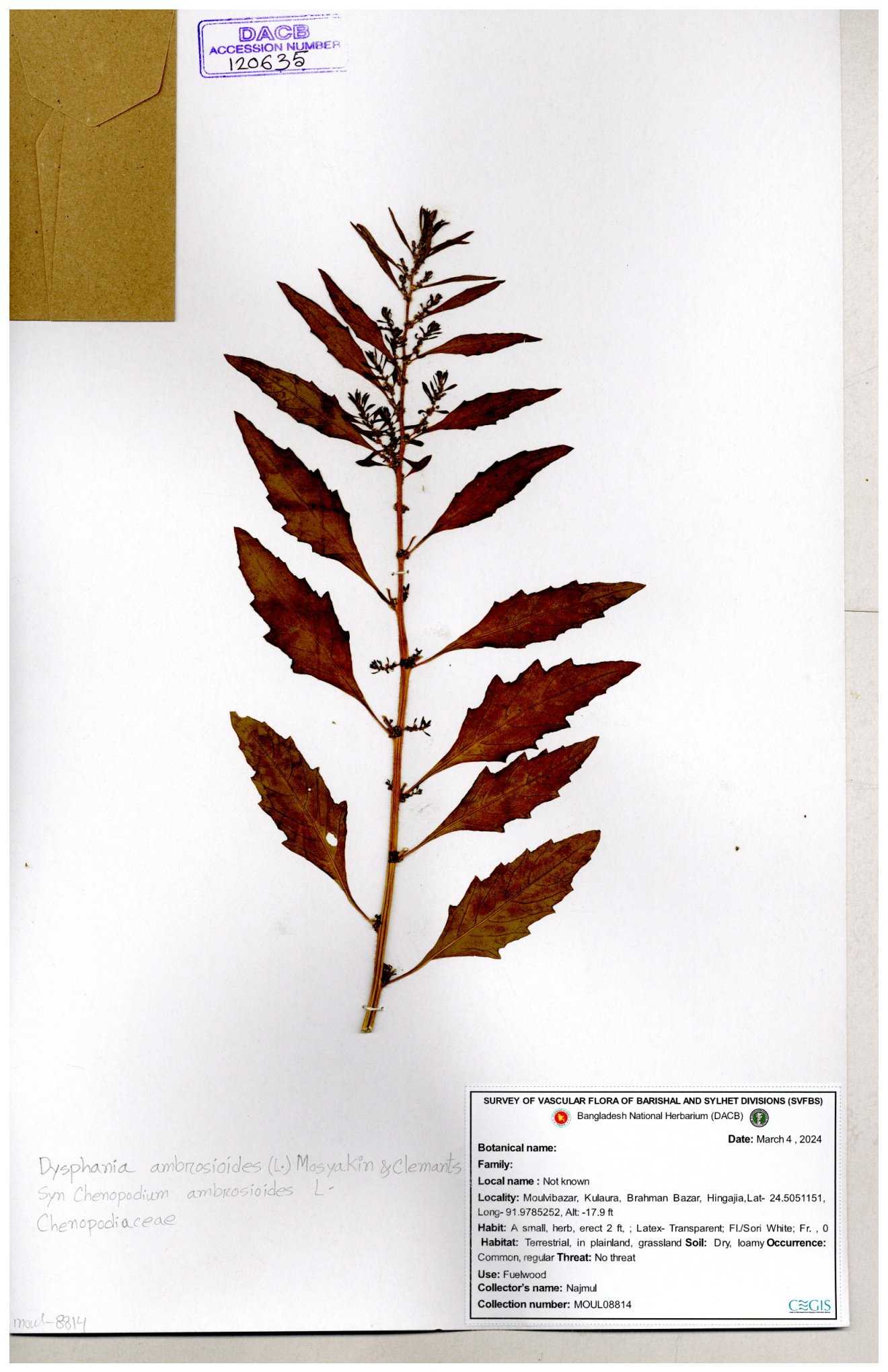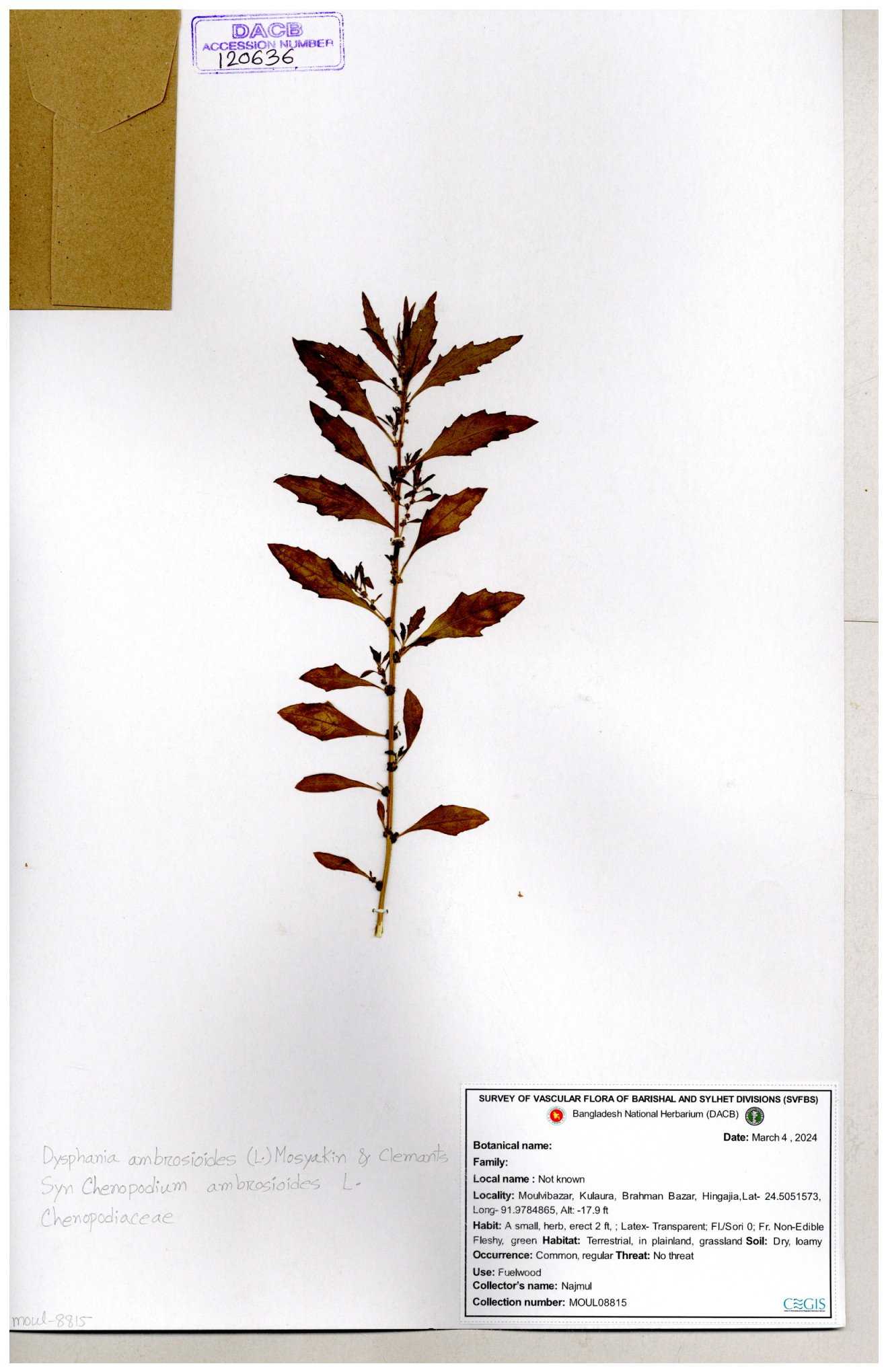 | 120635 | Chenopodiaceae | Dysphania ambrosioides | 30-11--0001 |