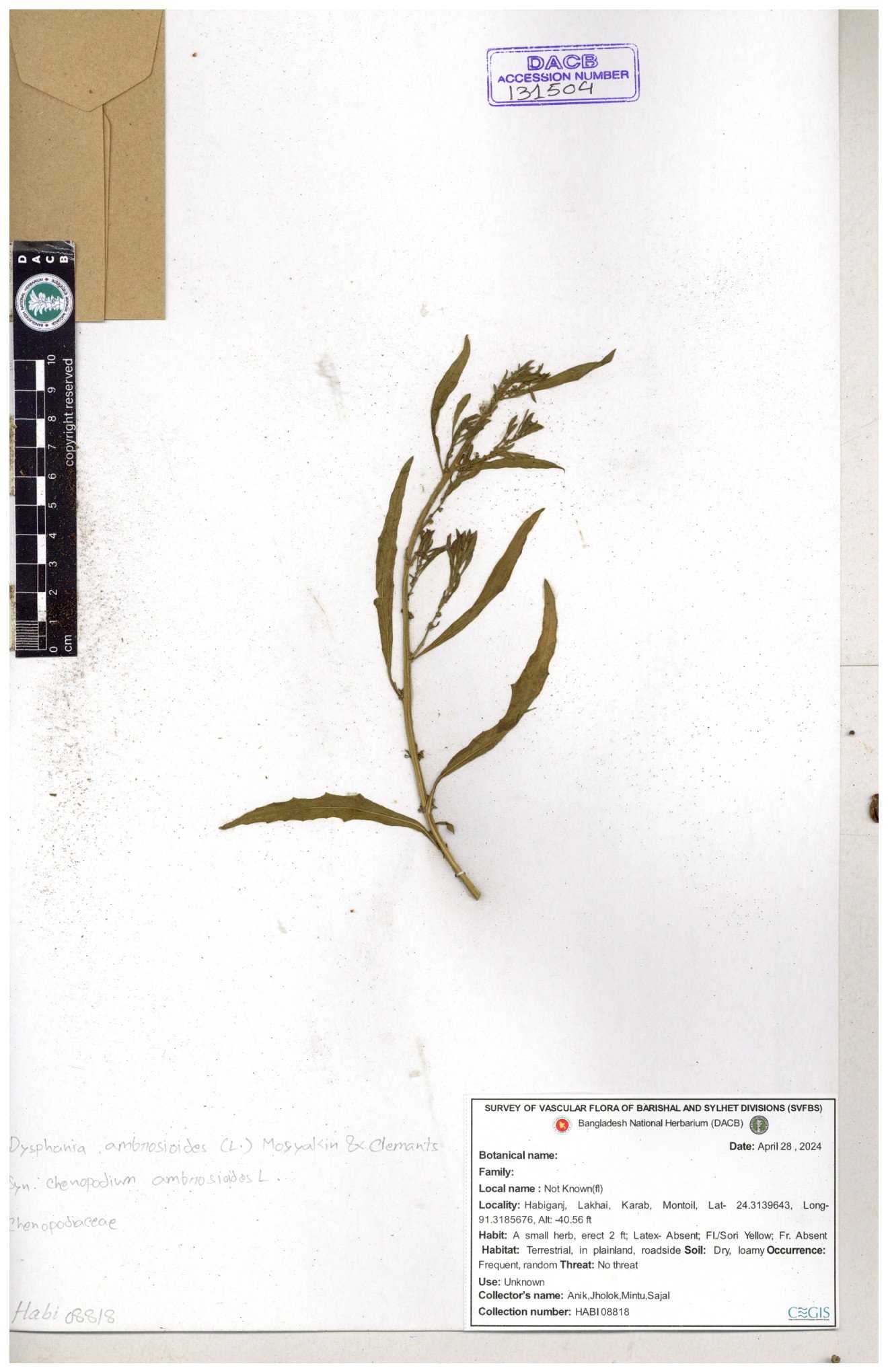 | 131504 | Chenopodiaceae | Dysphania ambrosiiides | 30-11--0001 |