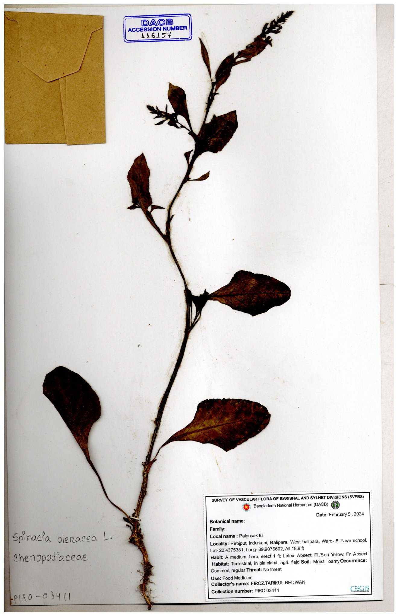 | 116157 | Chenopodiaceae | Spinacea oleracea | 30-11--0001 |