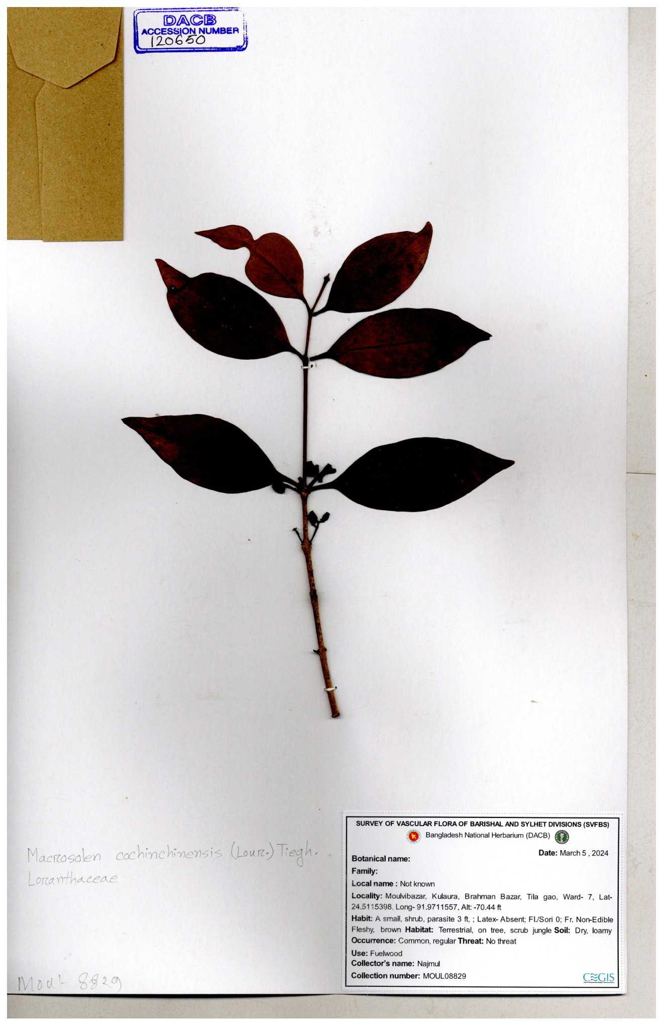 | 120650 | Chloranthaceae | Macrosolen cochinehinensis | 30-11--0001 |