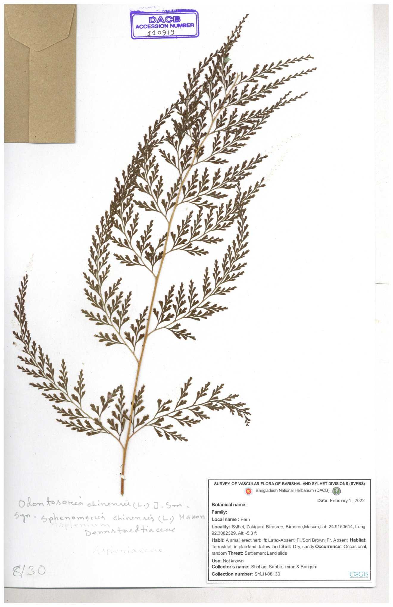 | 110919 | Dennstaedtiaceae | Spnenomeris chinensis | 30-11--0001 |