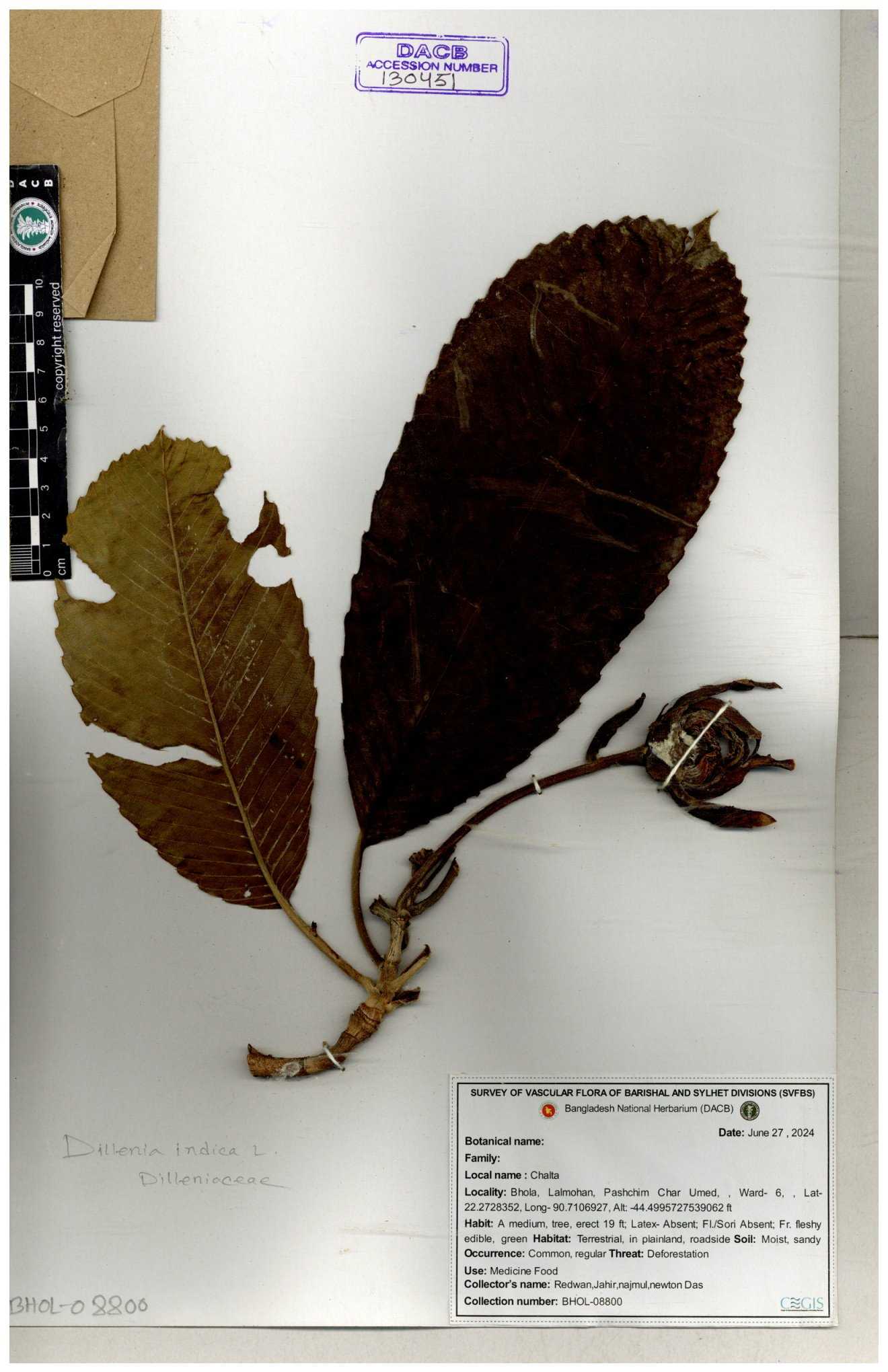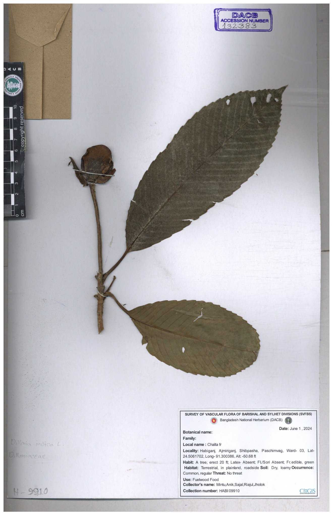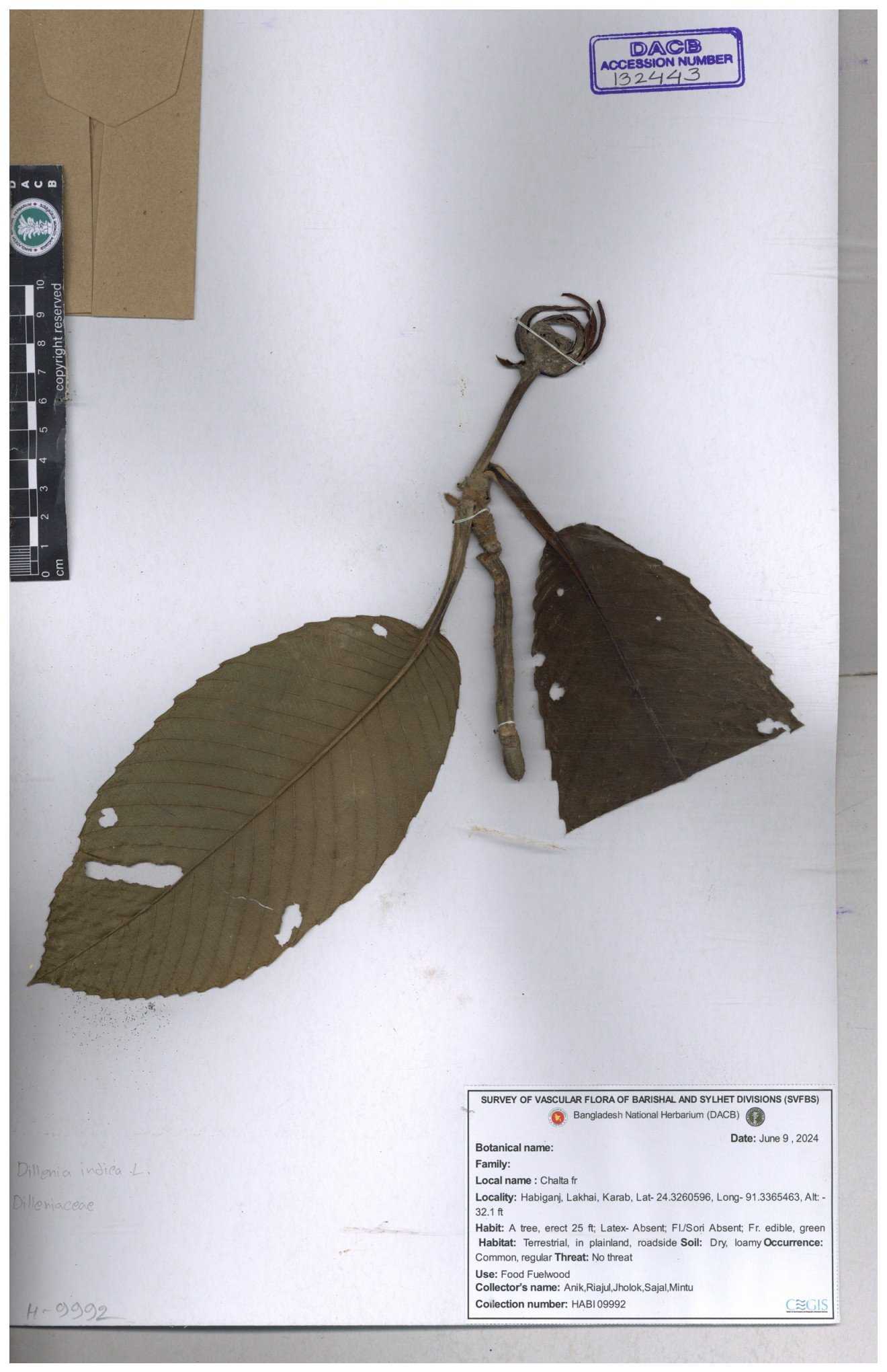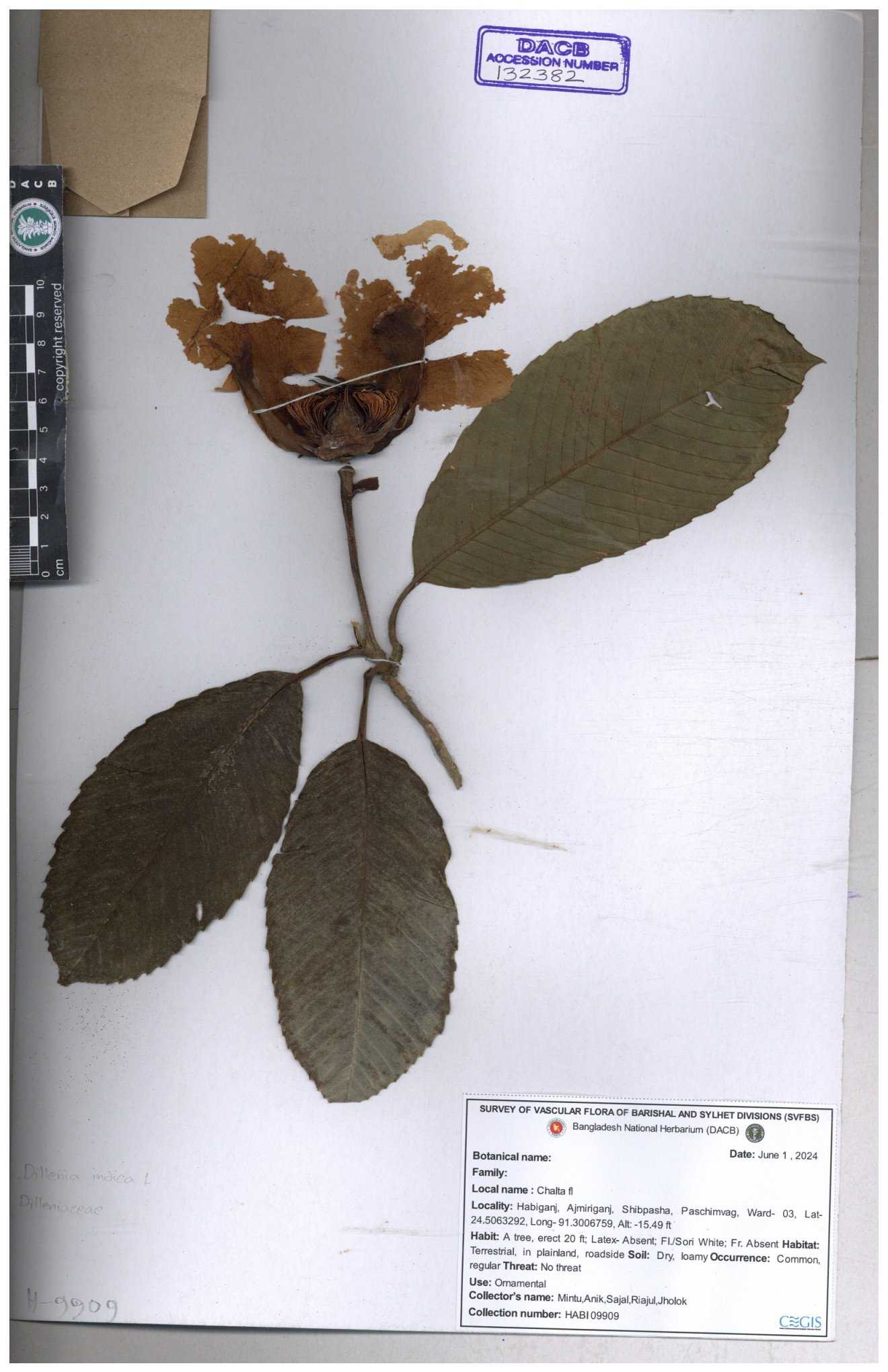 | 66263 | Dilleniaceae | Dillenis indica | চালতা | Farhana Ahmed | 29 01-12-2021 |