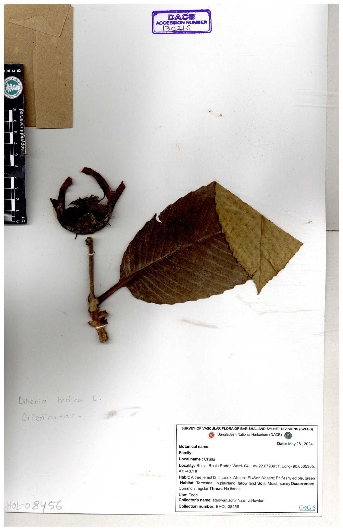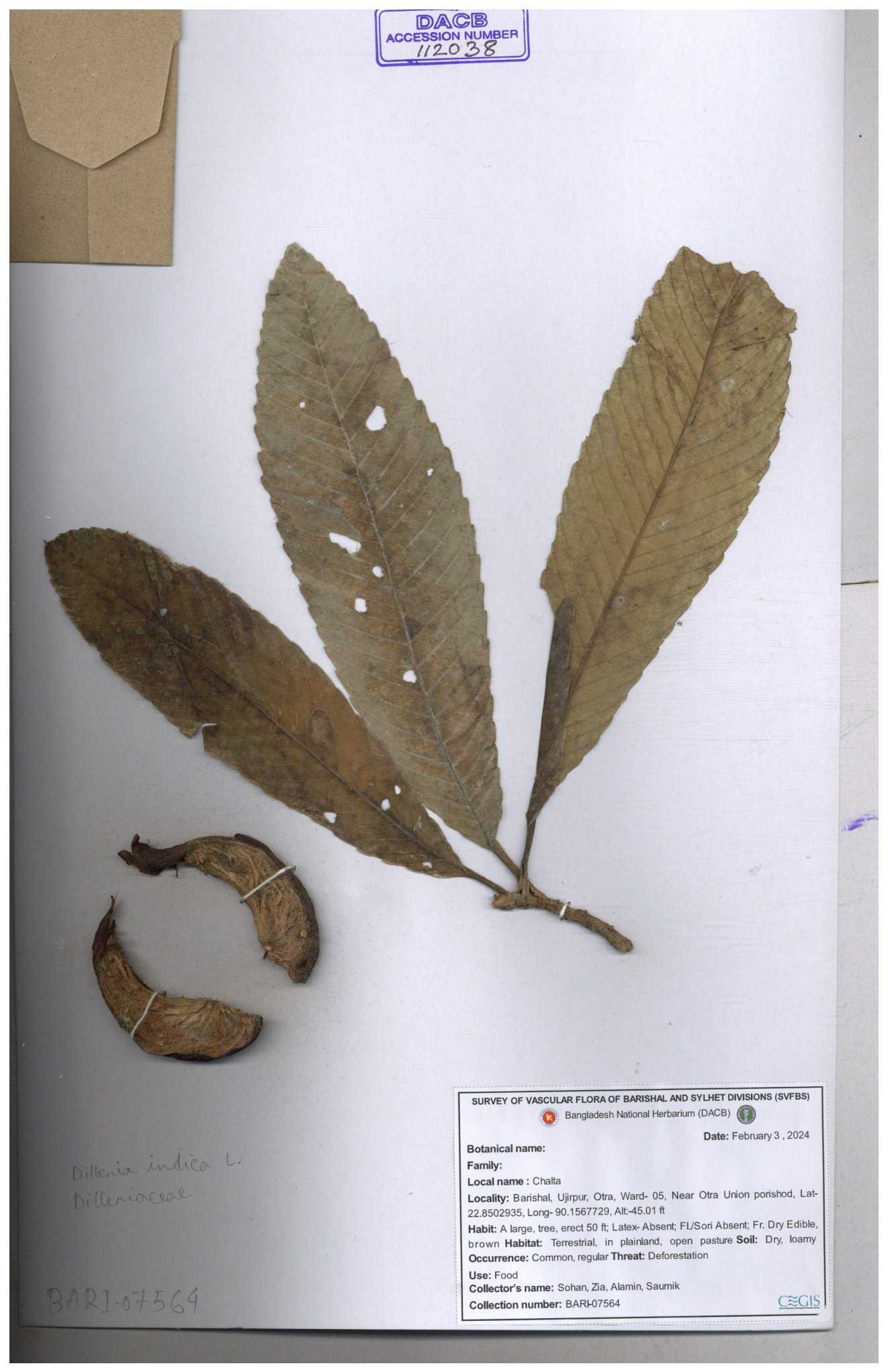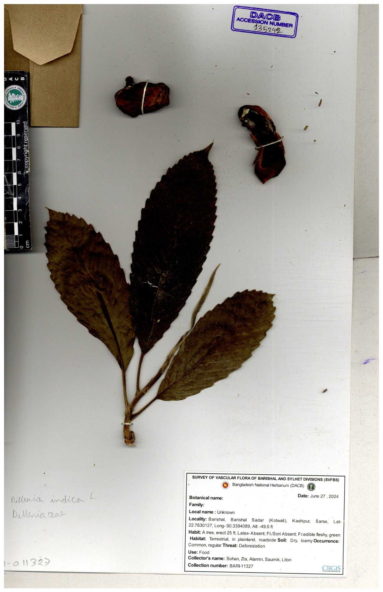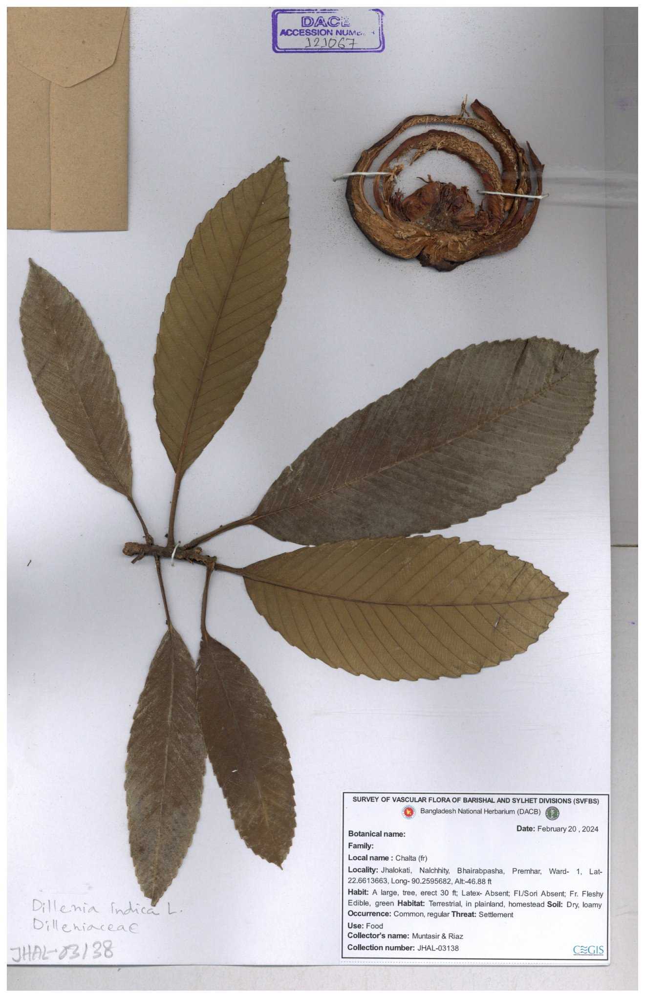 | 66263 | Dilleniaceae | Dillenis indica | চালতা | Farhana Ahmed | 29 01-12-2021 |