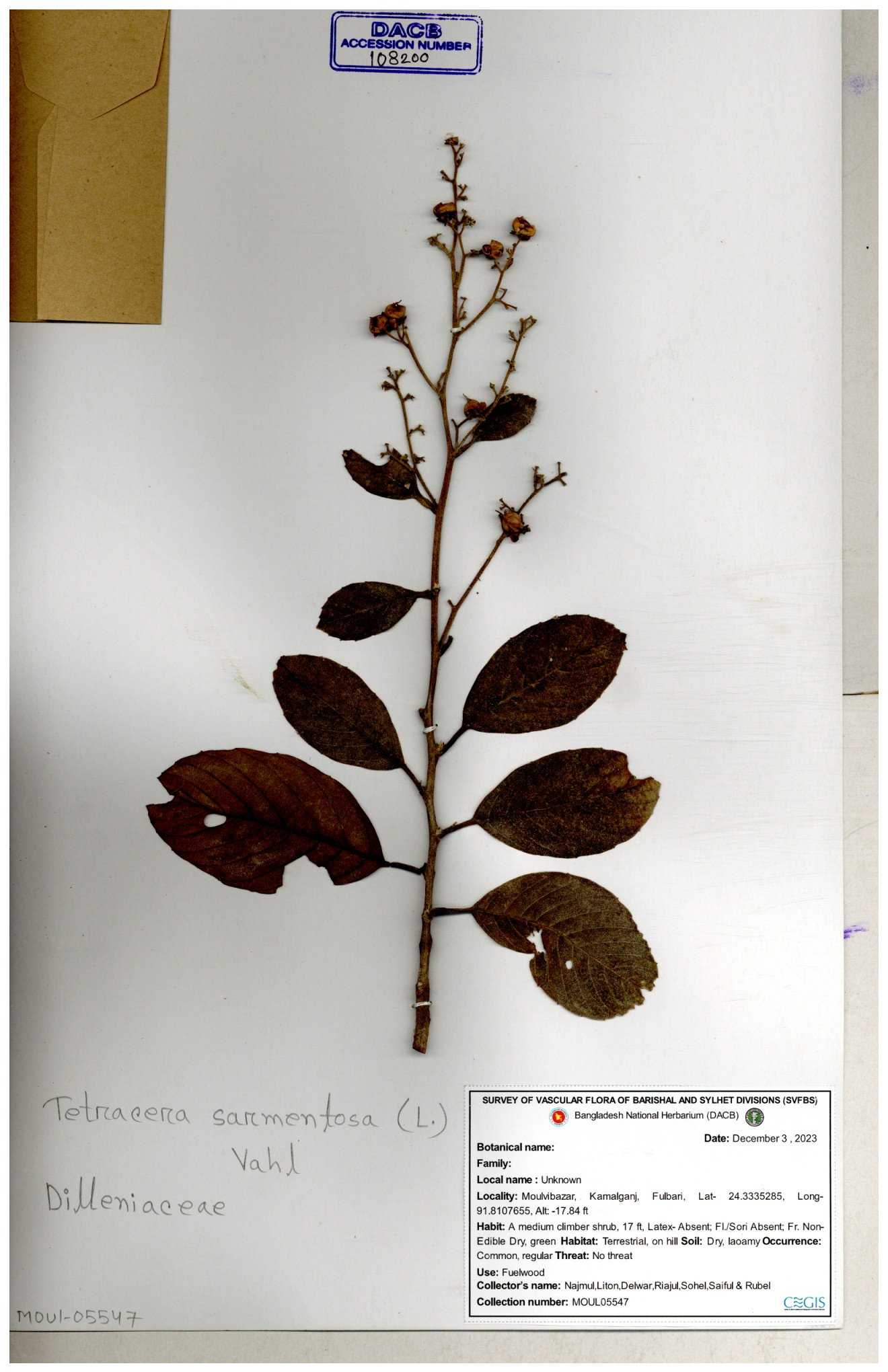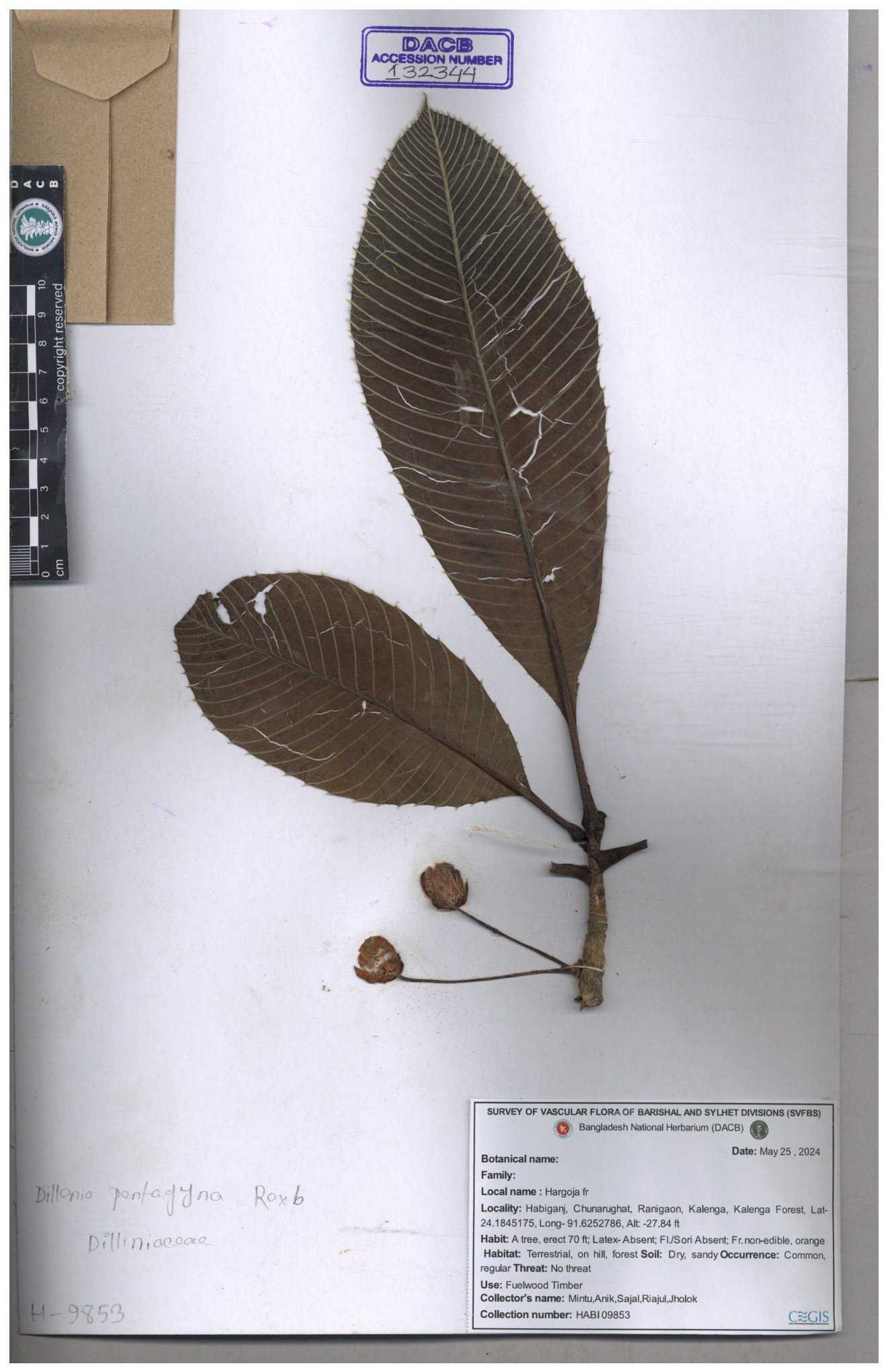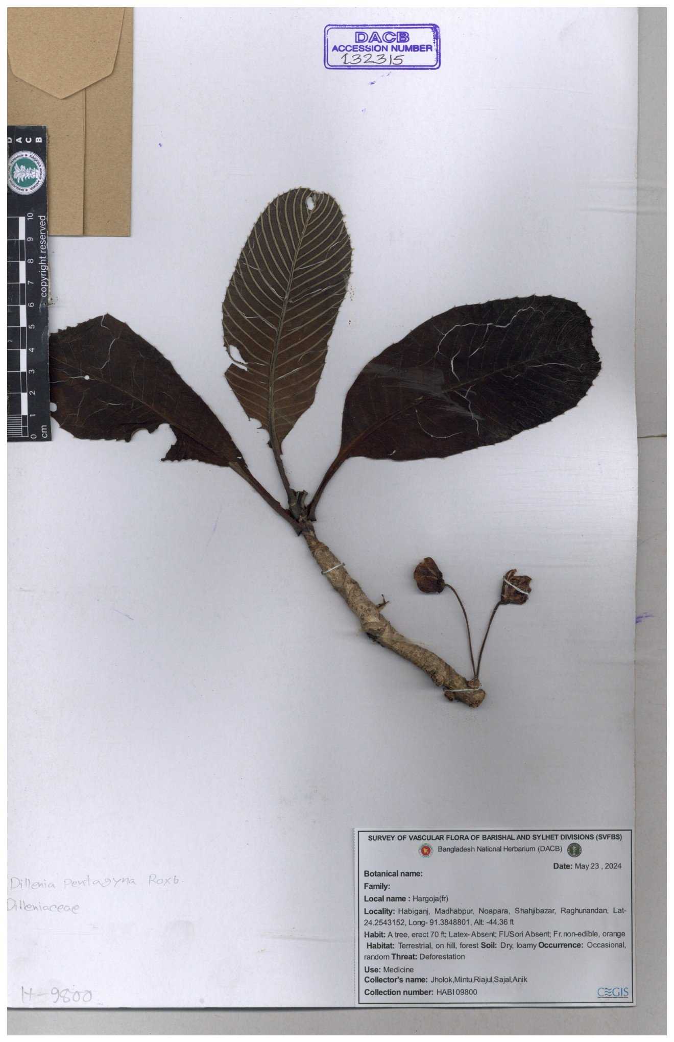 | 78788 | Dilleniaceae | Dillenis pentagyna Roxb. | Dr. M Sultana et al | DMS-3755 19-06-2021 |