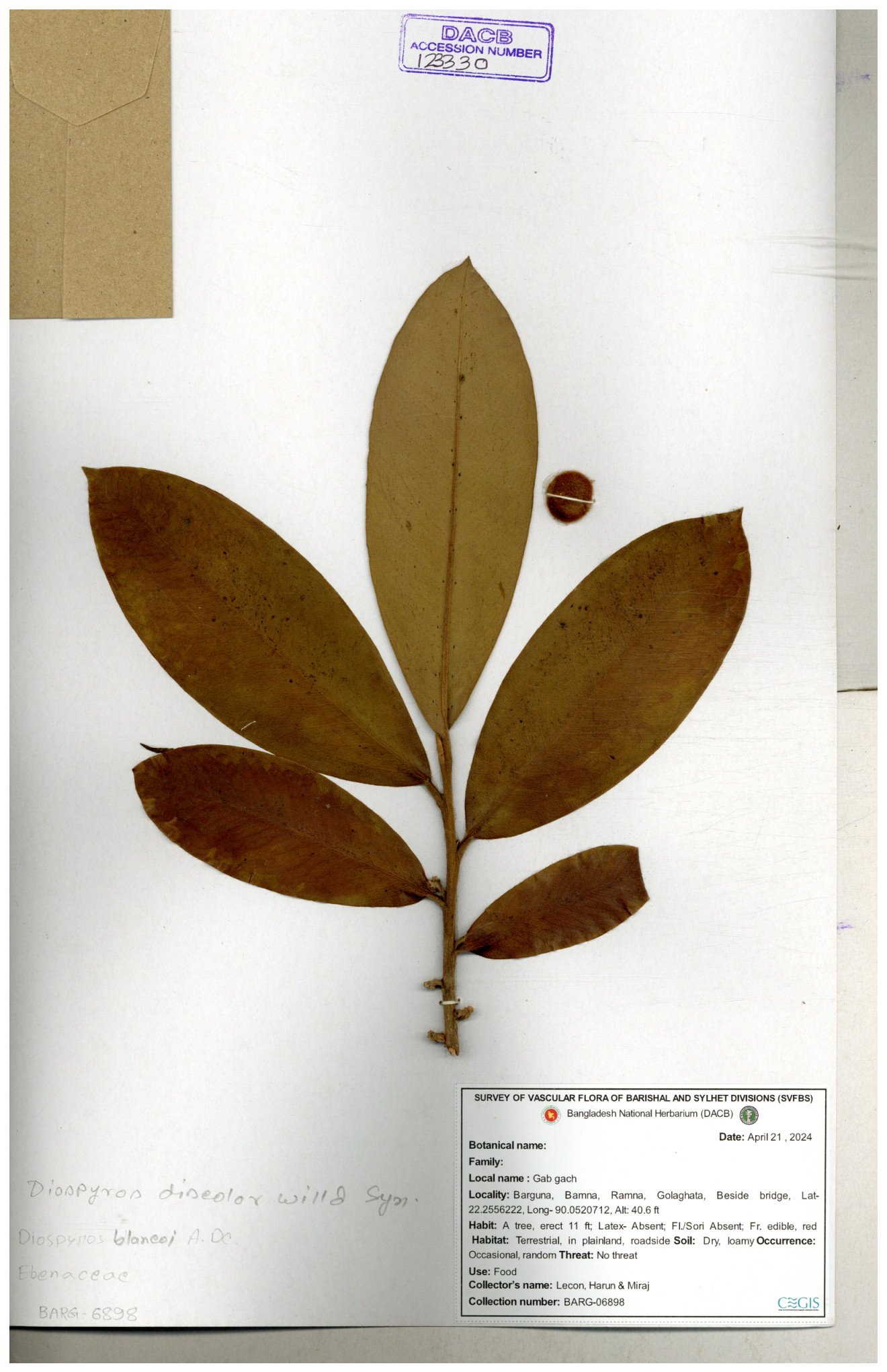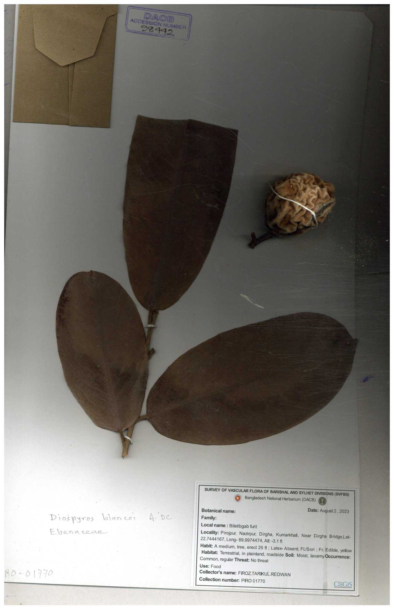| 66511 | Ebenaceae | Diospyros blancoi | বিলাতি গাব | Mohammad Amdadul Hoque | MAH-67 30-11--0001 |