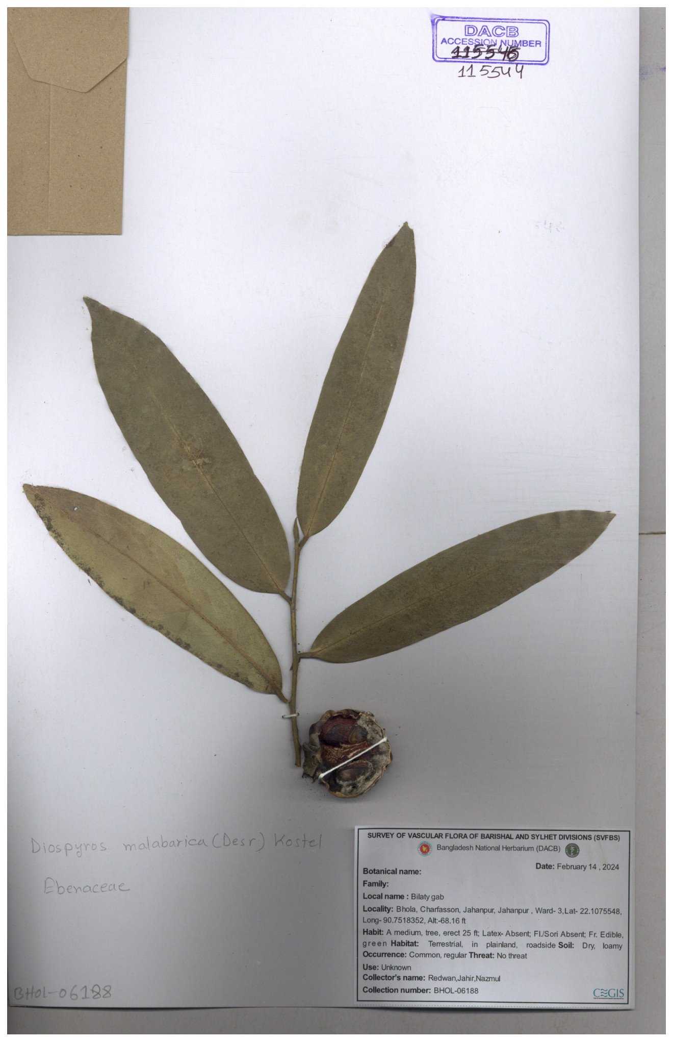 | 115544 | Ebenaceae | Diospyros malabarica | 30-11--0001 |