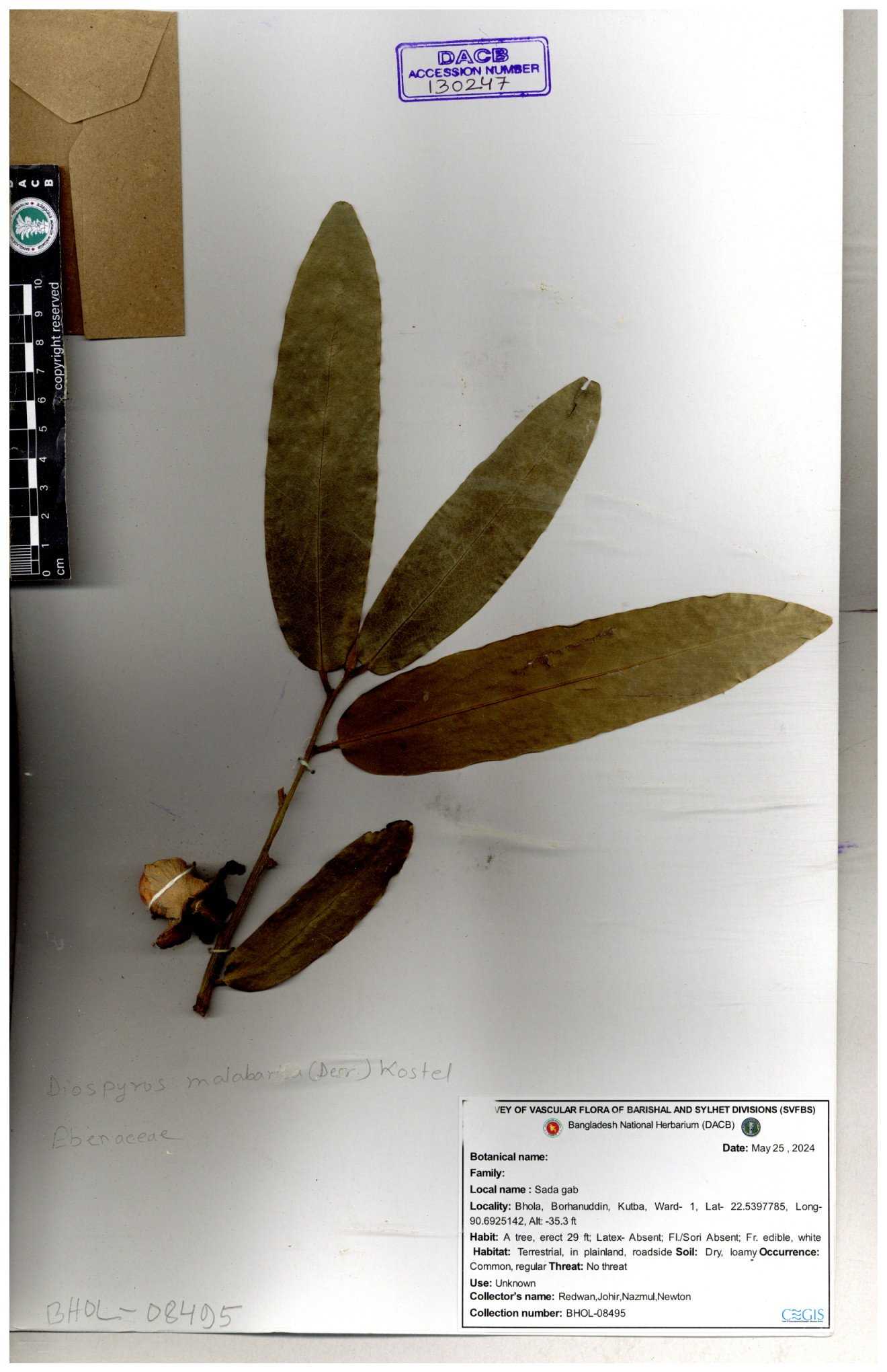 | 40529 | Ebenaceae | Diospyros ramiflora | Sarder Nasir Uddin | N. 2934 22-05-2008 |