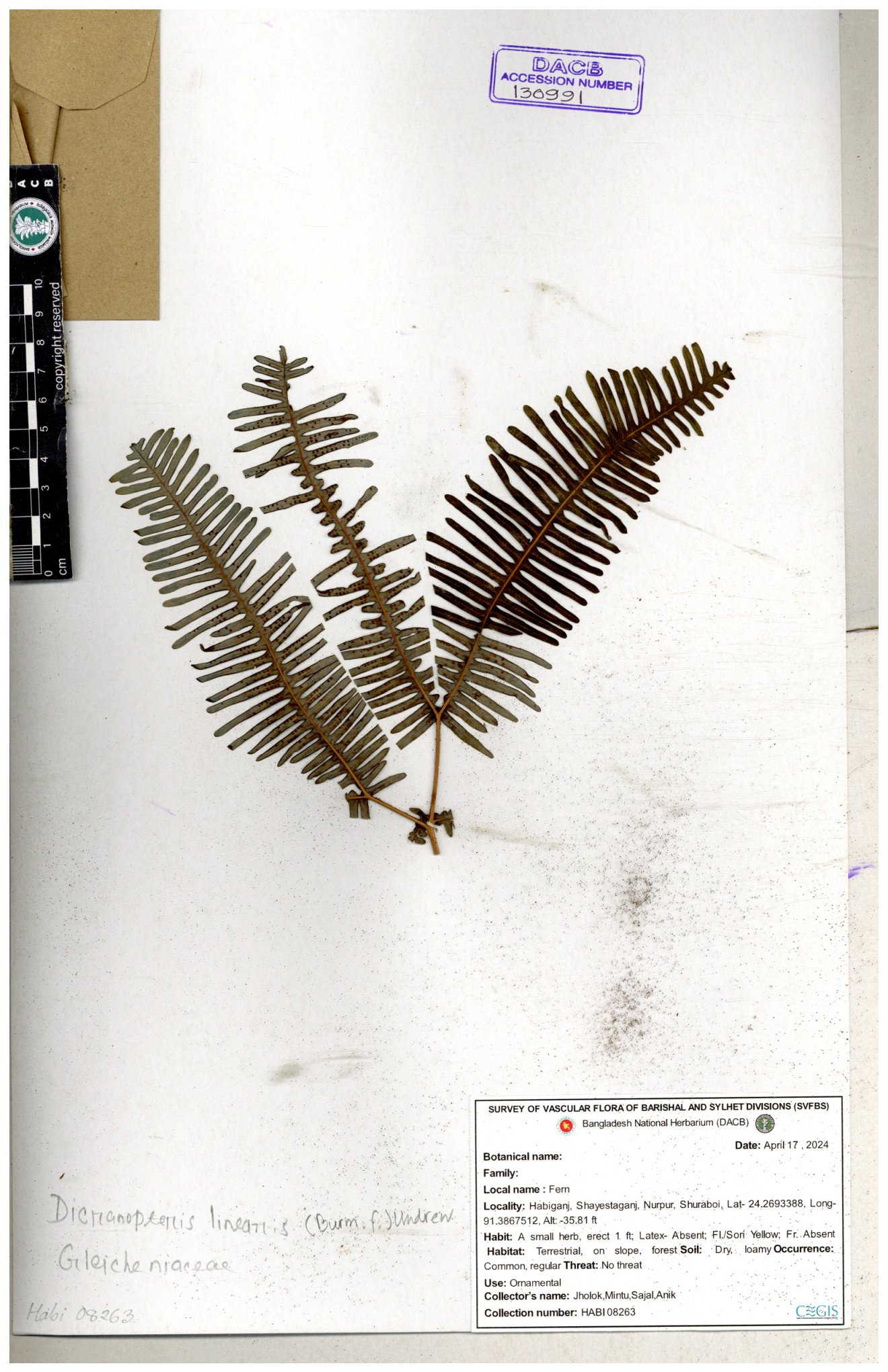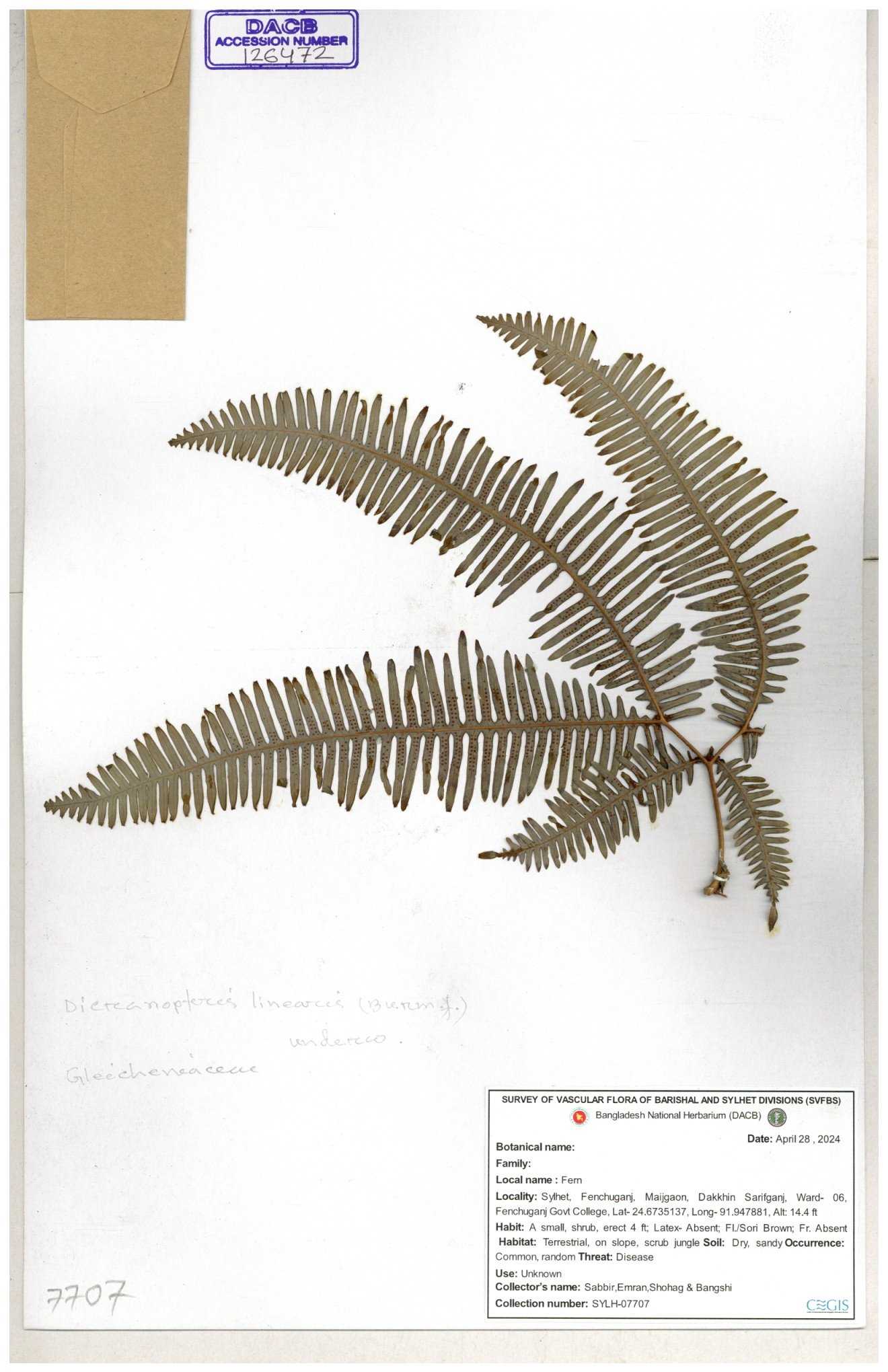 | 108073 | Gleicheniaceae | Dicranopteris lincaris | 30-11--0001 |