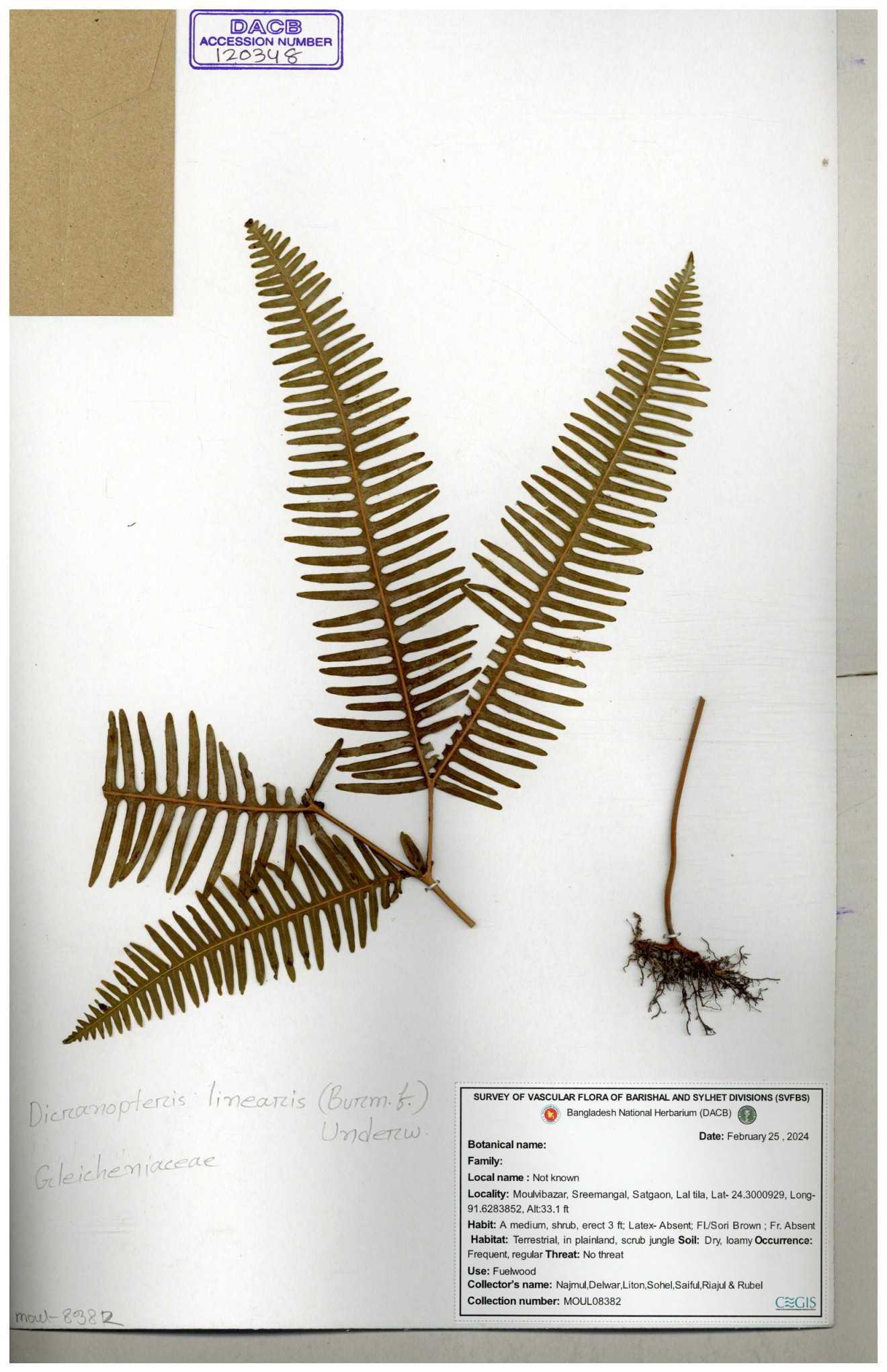 | 132424 | Gleicheniaceae | Dicranopteris lineoris | 30-11--0001 |