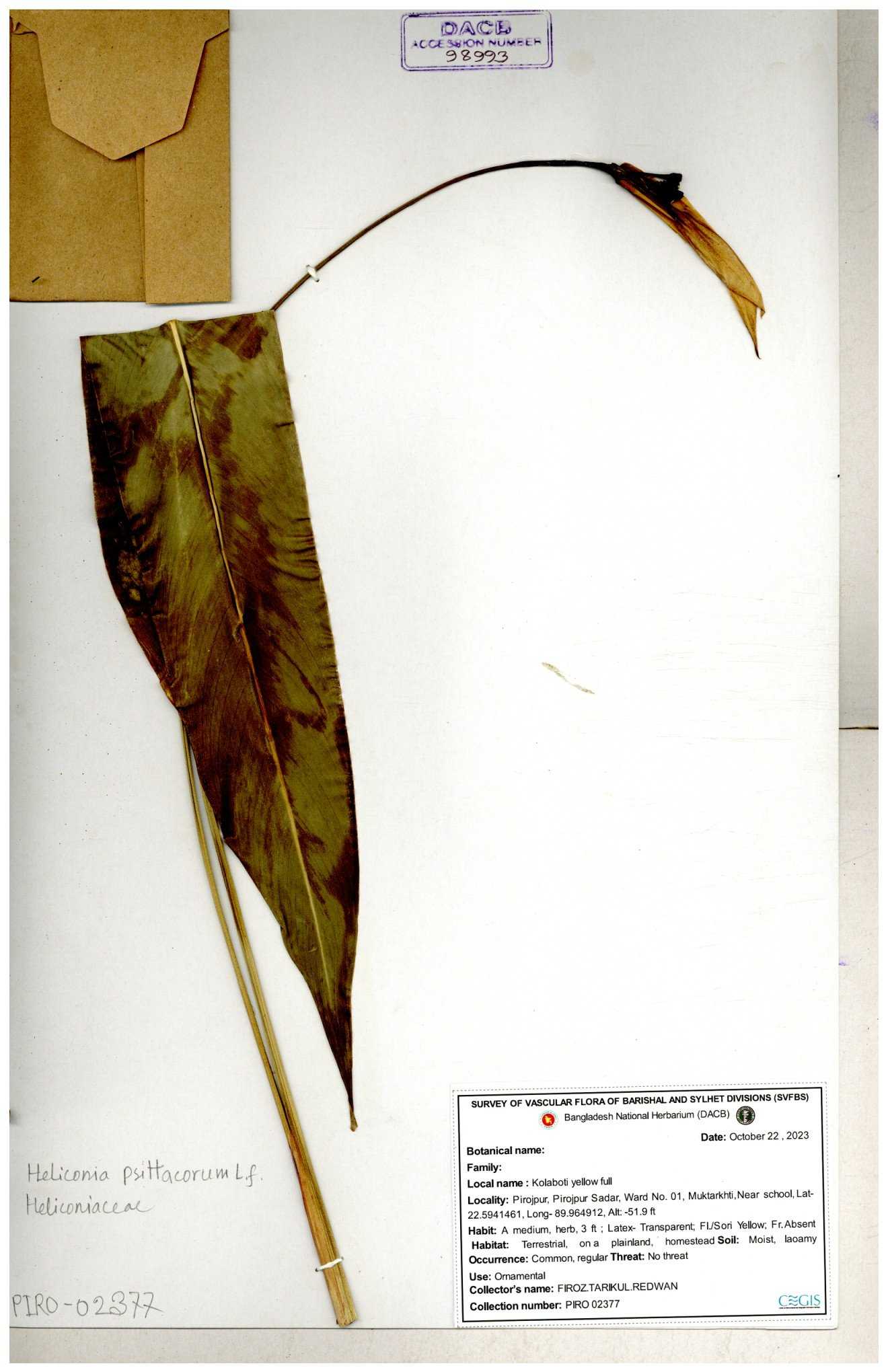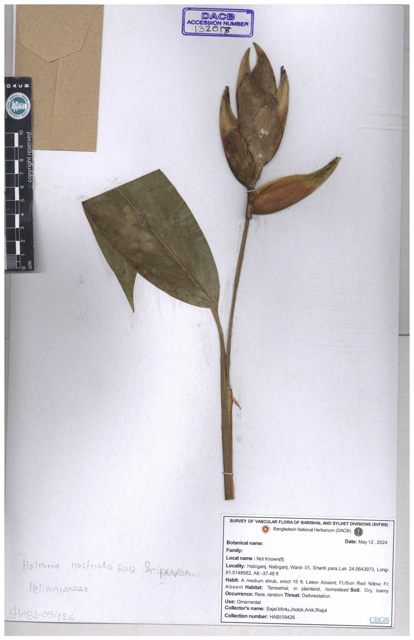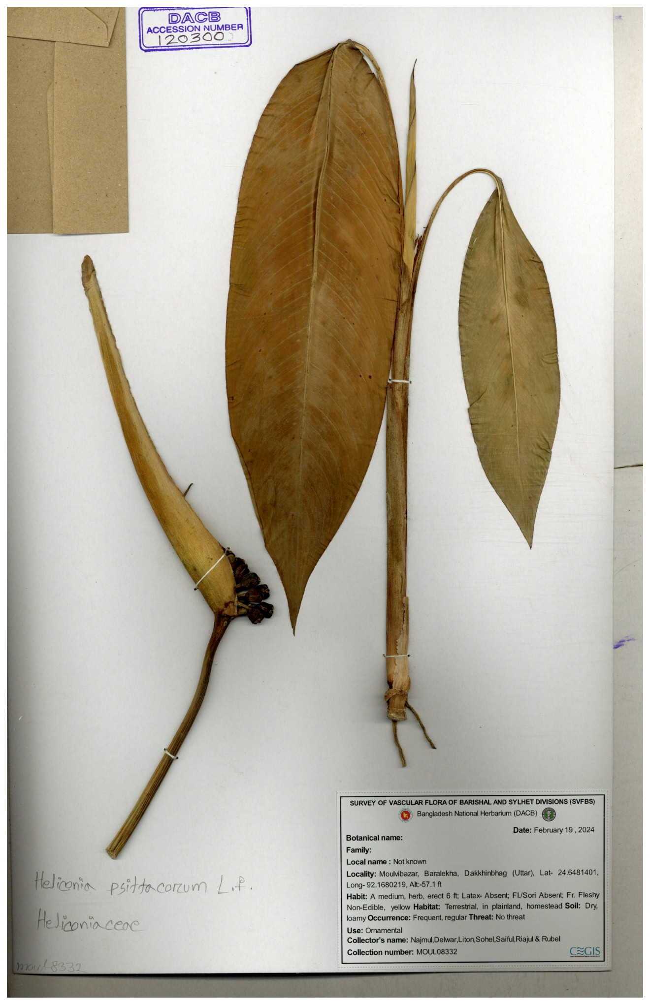| 88195 | Heliconiaceae | Heliconia rostrata Ruiz & Pav. | Dr. M. Sultana | DMS-3687 04-05-2021 |